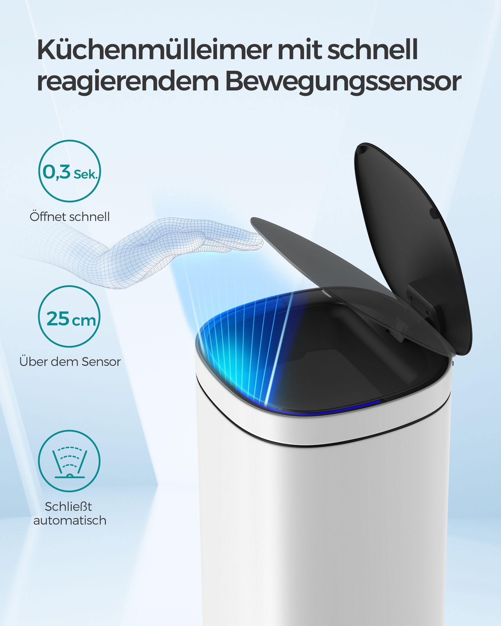 SONGMICS liiketunnistimella varustettu roskakori, automaattinen 50 litran keittiöroskakori, monivärinen merkkivalo, hajunpoisto otsonilla, kansi, jossa on auki-pitävä toiminto