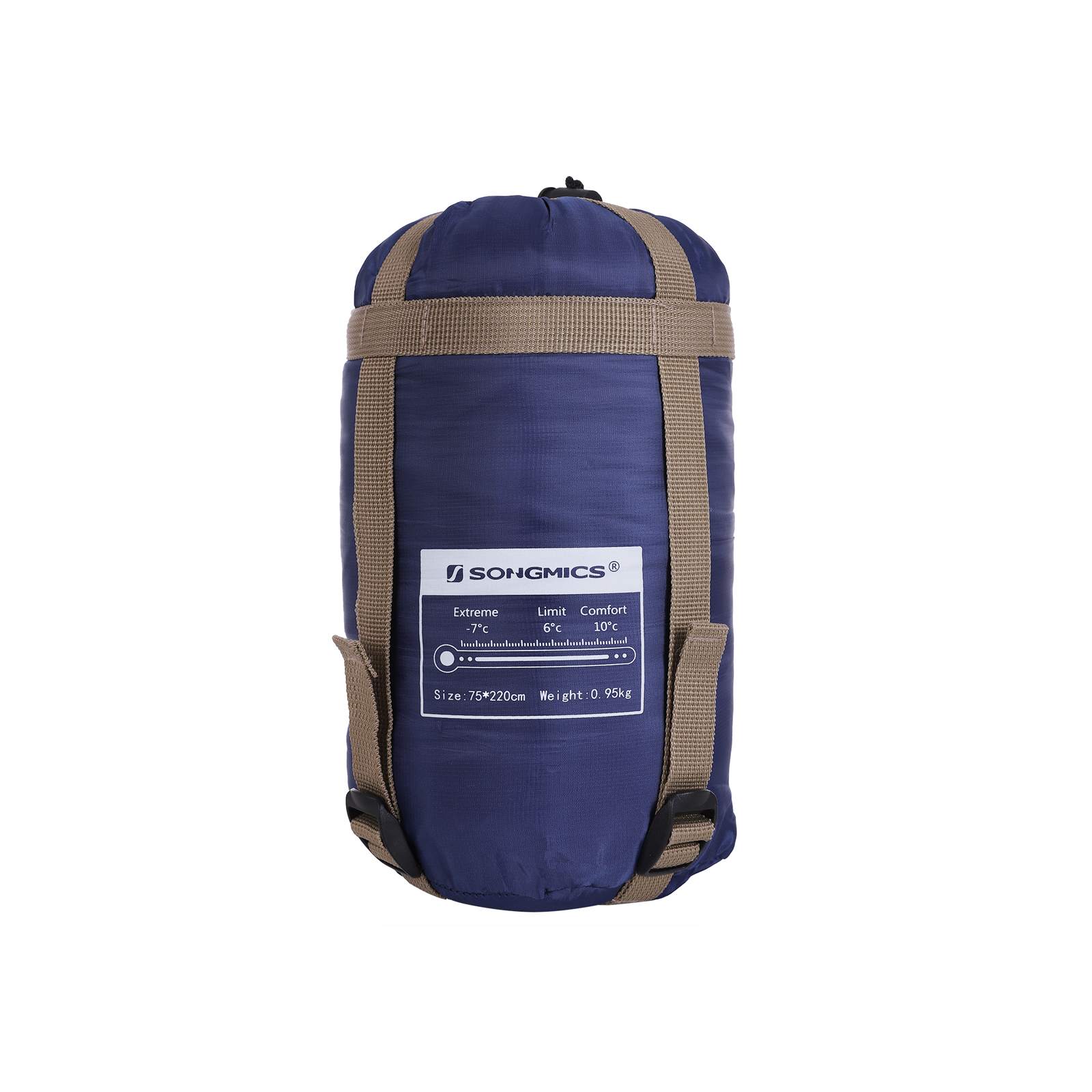 Hanki ulkoiluvälineesi SONGMICS:ltä! Pitkän ja raskaan päivän jälkeen ulkona kylmänä yönä tarvitset ennen kaikkea mukavan sängyn, jossa voit ladata akkujasi ja valmistautua seuraavaan haasteeseen. Onneksi olet tullut oikeaan paikkaan! Makuupussissamme on useita käyttäjäystävällisiä ominaisuuksia, jotka takaavat lämmön ja mukavuuden, kun olet liikkeellä kylmässä erämaassa. SONGMICSin pääasiallinen tavoite on asiakkaidemme tyytyväisyys. Asiakaspalvelumme on aina valmiina auttamaan sinua. Älä odota enää, vaan hanki uusi makuupussi. Aika seuraavalle luontoseikkailulle! Tuotetiedot: – Väri: sininen – Materiaali: nailon, täyte tekosilkistä, polyester-pongee – Koko avattuna: 220 x 75 cm – Koko pakattuna: 15 x 25 cm (Ø x H) – Paino: 0,95 kg – Mukavuuslämpötila: 6–15 °C – Kestävyys äärimmäisissä lämpötiloissa: -7 °C Toimitus sisältää: – 1 x makuupussi – 1 x säilytyspussi SONGMICS-ohjeet: – On suositeltavaa tilata makuupussi, jonka kestävyys äärimmäisissä lämpötiloissa on alhaisempi kuin matkakohteesi ennustettu lämpötila. Jos ennustettu lämpötila matkakohteessa on esimerkiksi 0 °C, sinun tulisi valita makuupussi, jota voidaan käyttää myös -3 °C tai -5 °C lämpötiloissa.- On suositeltavaa käyttää makuupussia yhdessä teltan ja retkipeiton kanssa eikä asettaa sitä suoraan kylmälle maalle. – Optimaalisen lämmönvarastoinnin varmistamiseksi makuupussia ei tule pestä liian usein.