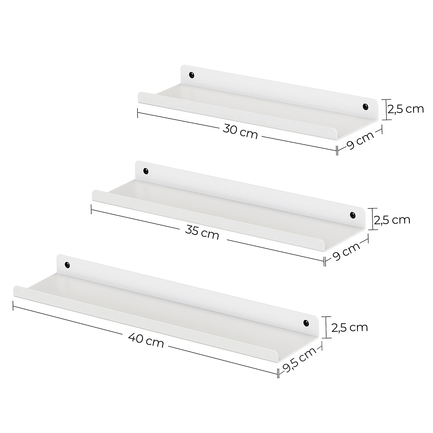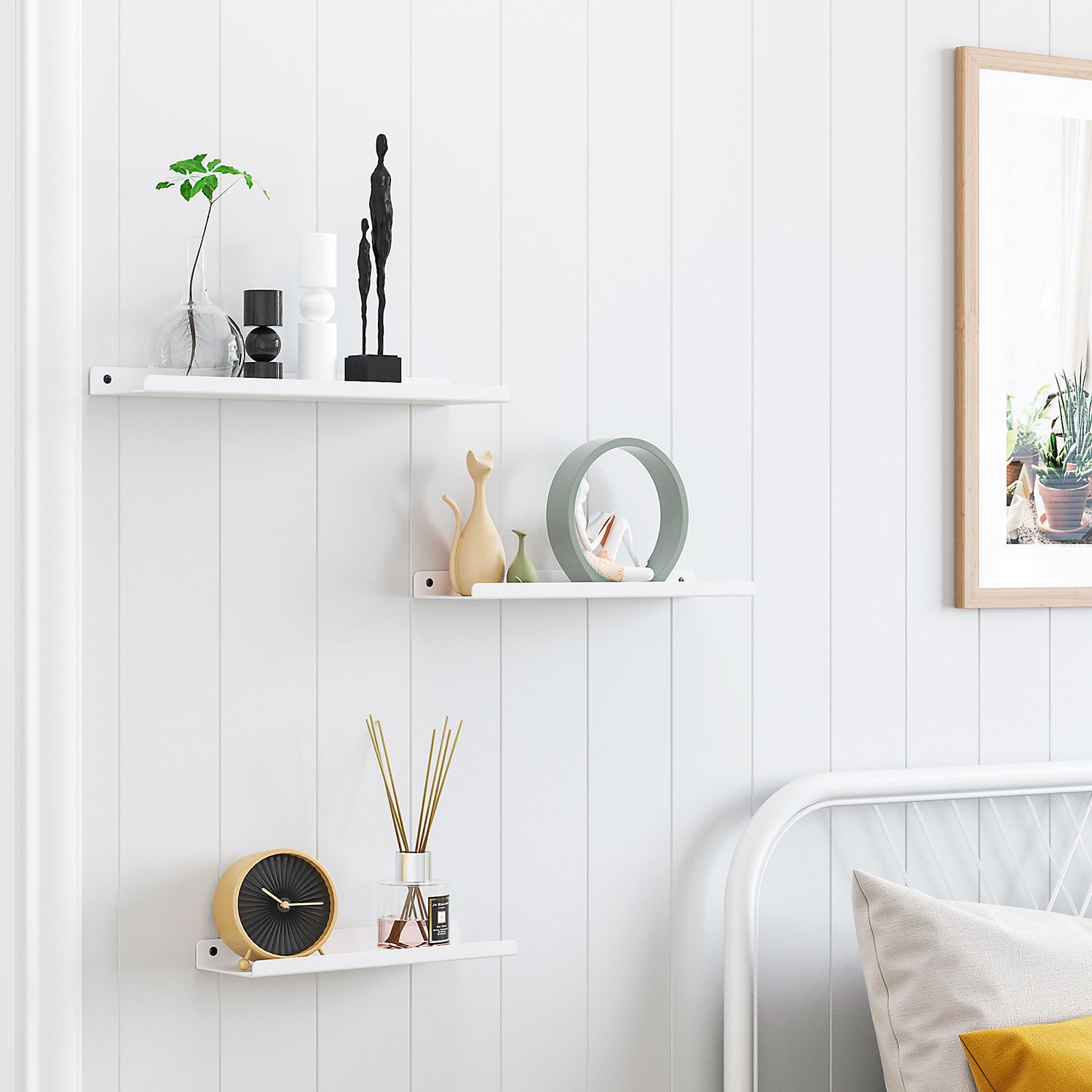 SONGMICS metalliset seinähyllyt, 3 kpl, kelluvat hyllyt, teollinen tyyli, koristeille, valokuvakehyksille, koruille, 6 ruuvia, useita asetteluvaihtoehtoja