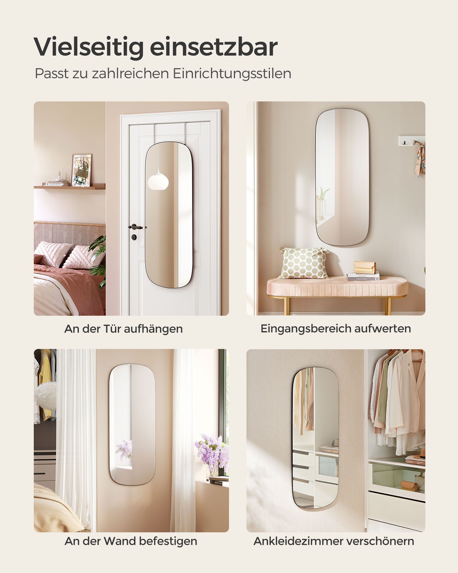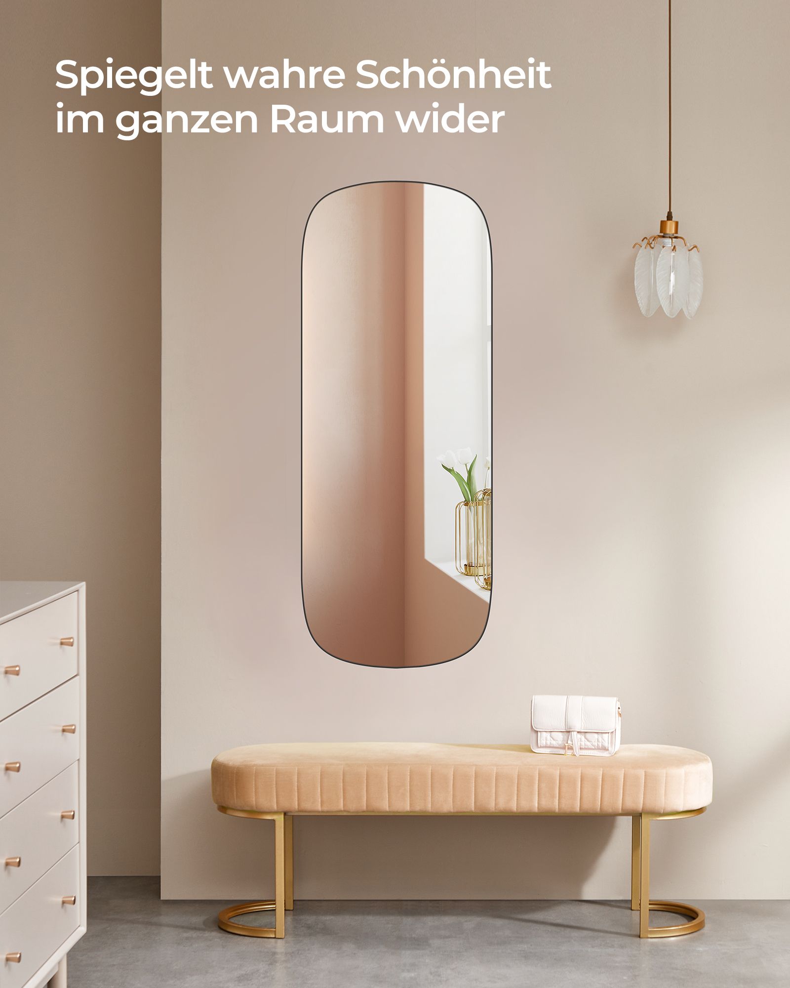 SONGMICS peili seinälle, seinäpeili kokovartalopeili, 120 x 47 cm, kaareva kulma, peili oveen, kehyksetön, makuuhuoneeseen, olohuoneeseen, pukeutumishuoneeseen, musta LFM010B01