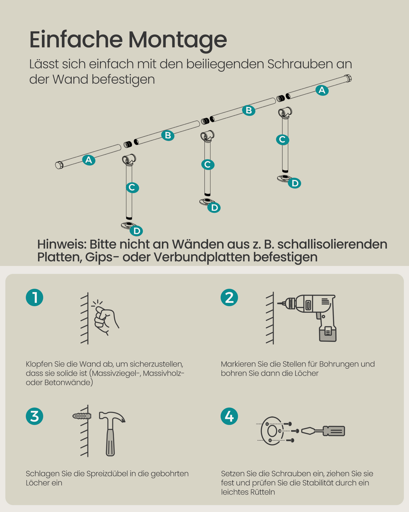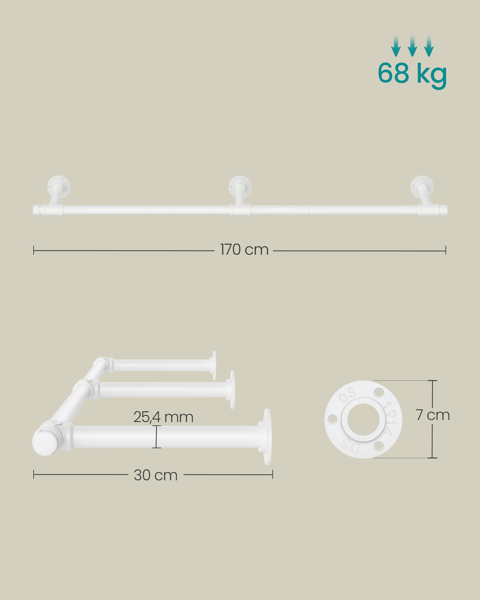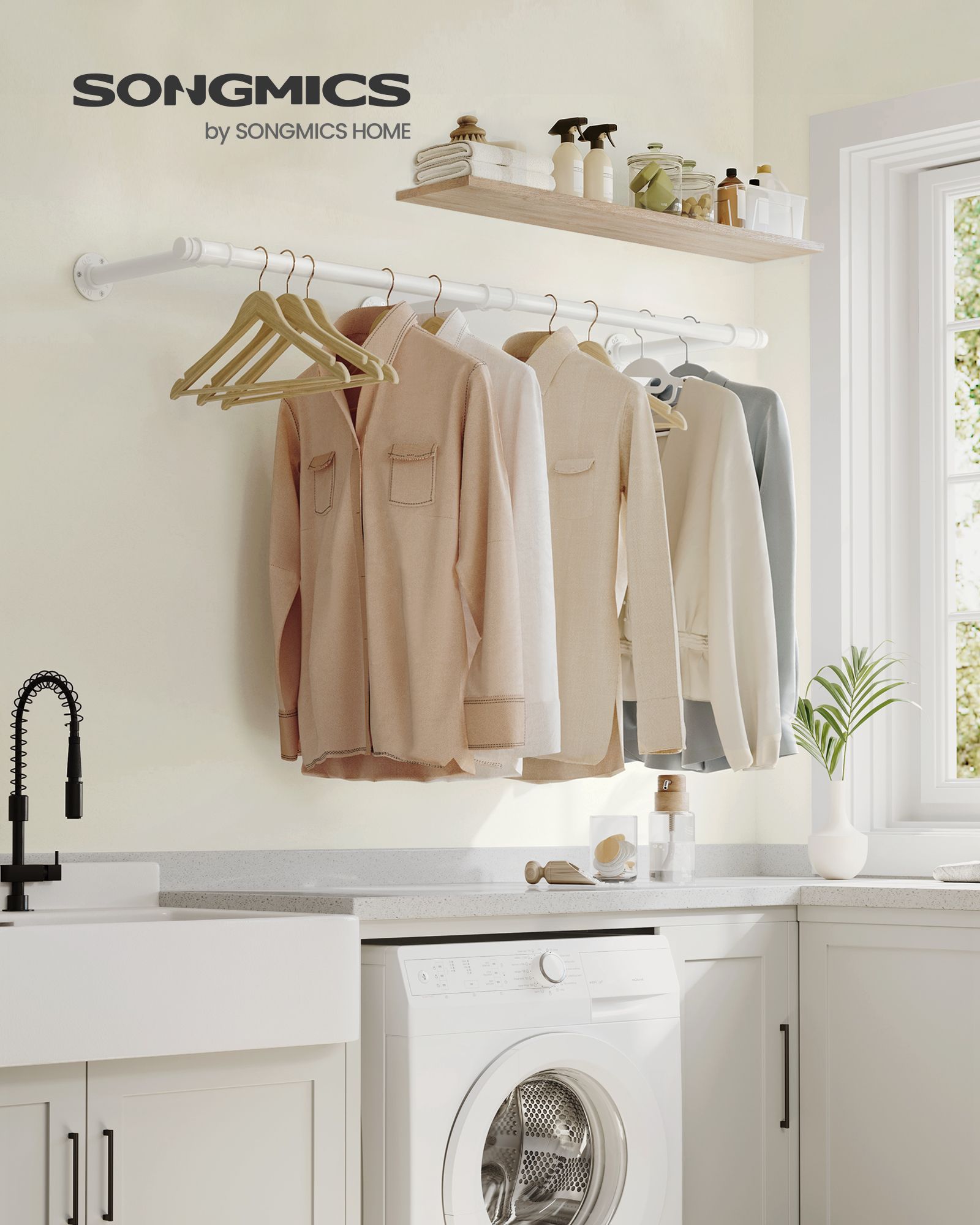 SONGMICS seinälle kiinnitettävä vaatetanko, seinälle kiinnitettävä vaateteline, teollinen, tilaa säästävä, 30,4 x 170 x 7 cm, 68 kg kantavuus, helppo asentaa, pieniin huoneisiin, musta HSR104B01
