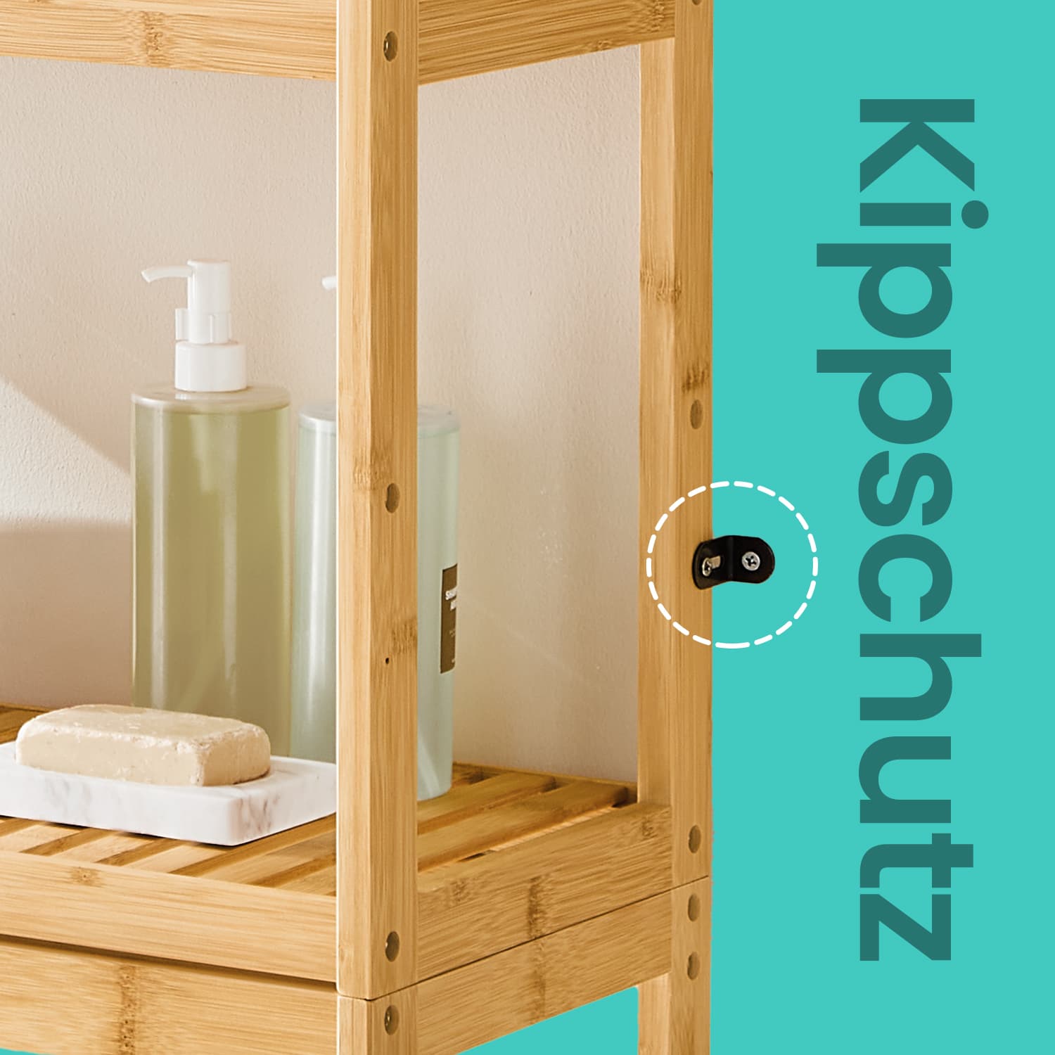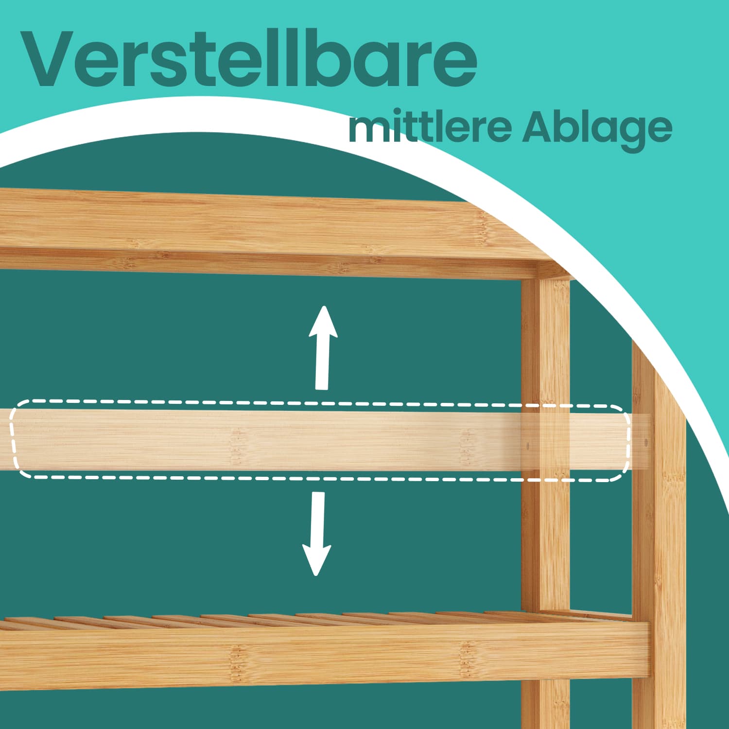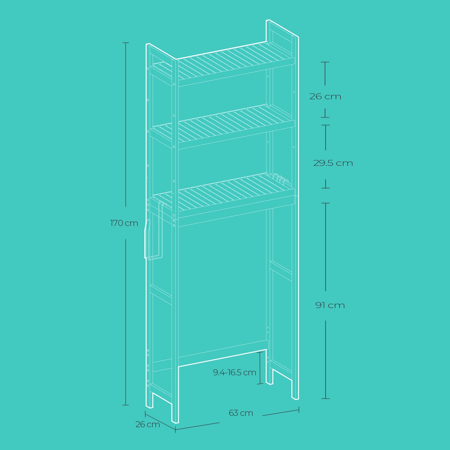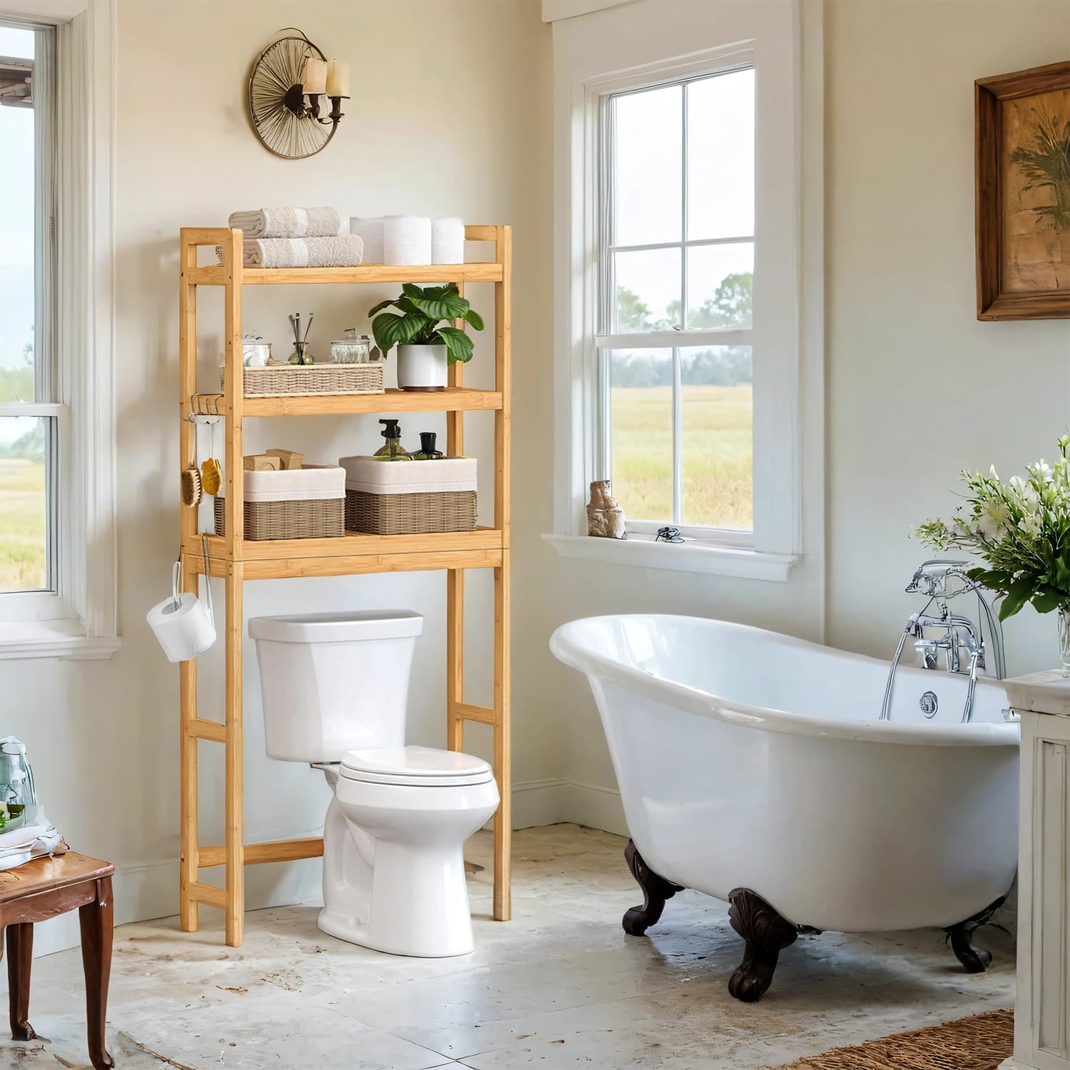 SONGMICS WC-hylly, kylpyhuonehylly, pesukonehylly, 3-tasoinen bambusta valmistettu kylpyhuonehylly, säädettävä, monikäyttöinen, staattinen kantavuus 15 kg per taso, helppo asentaa, valkoinen BTS01WT