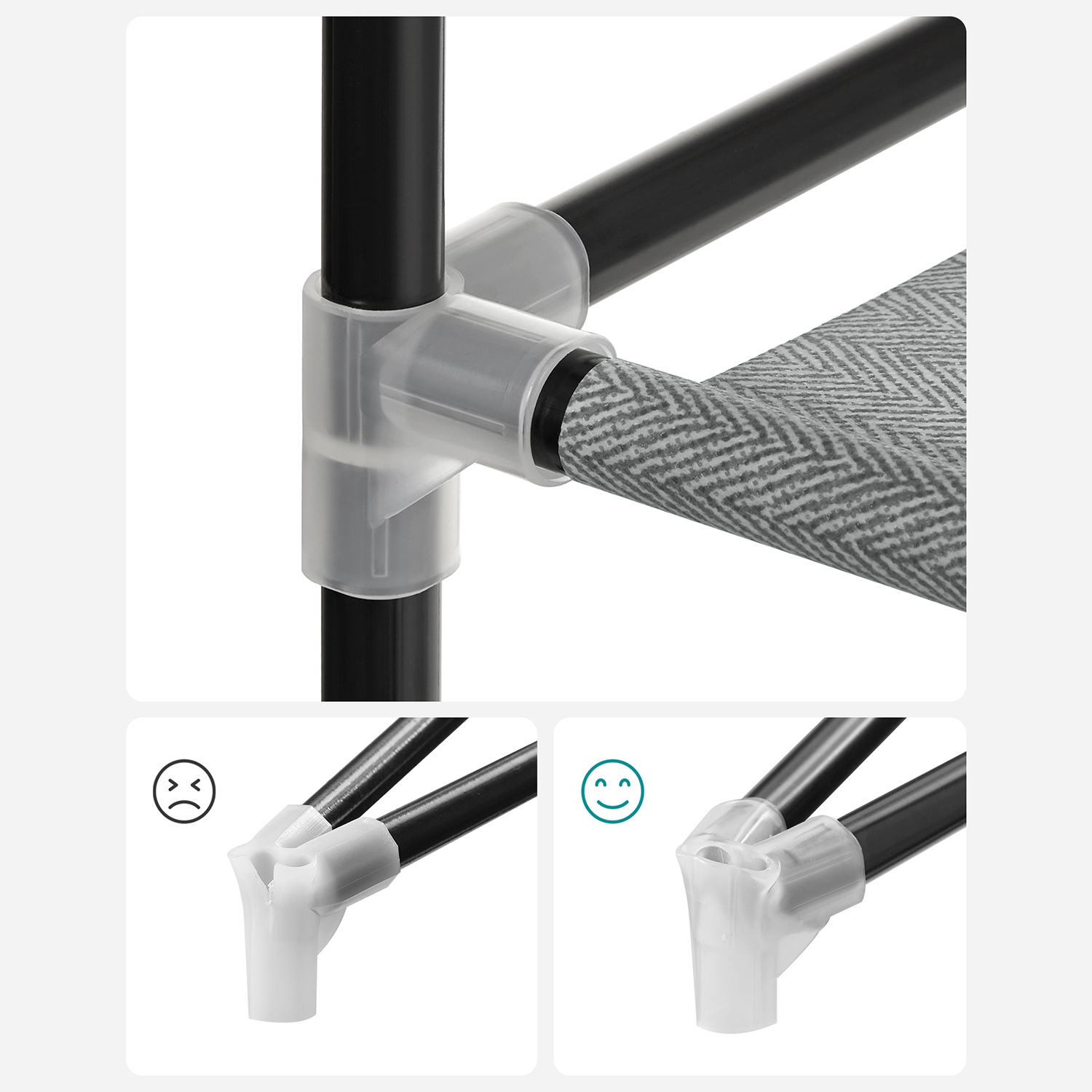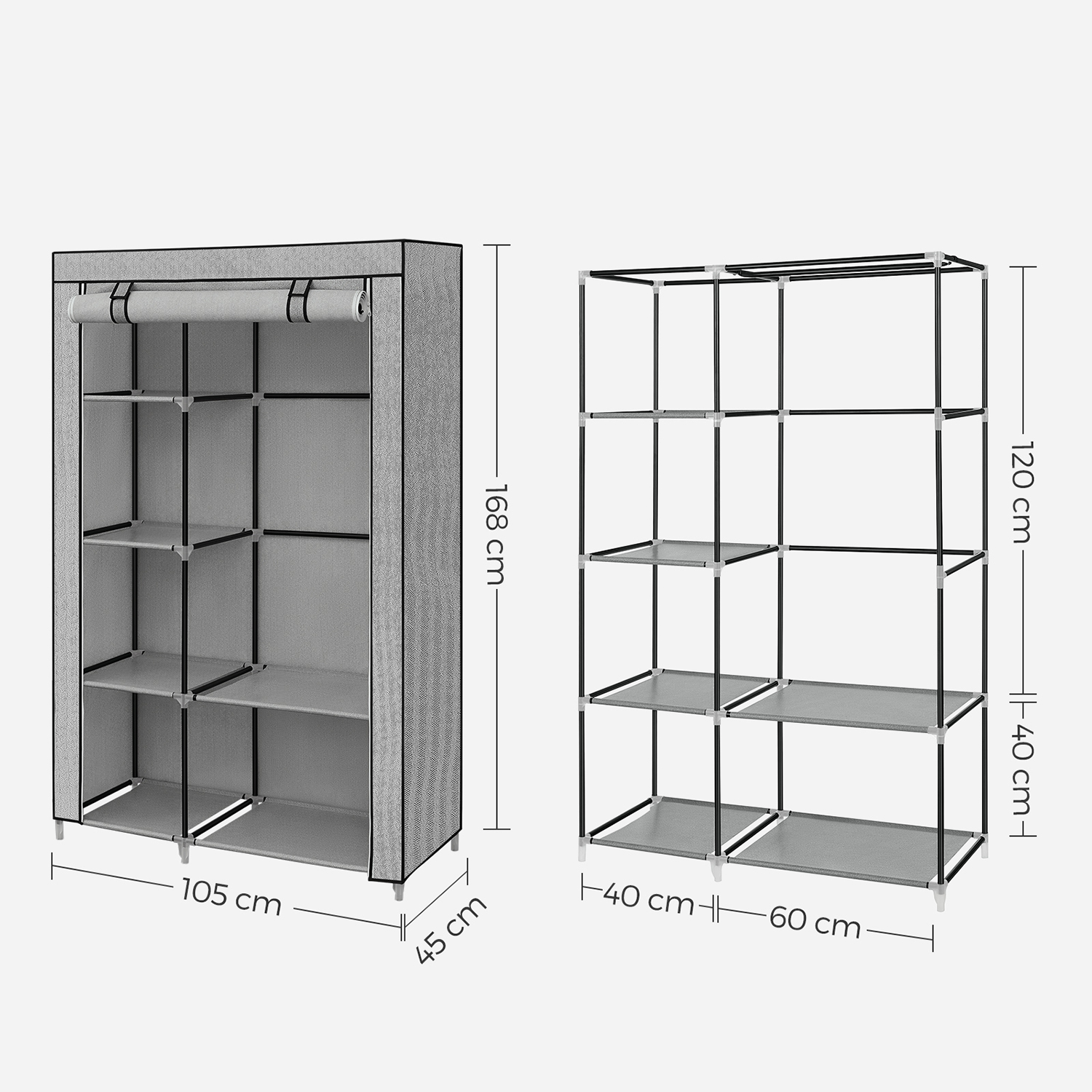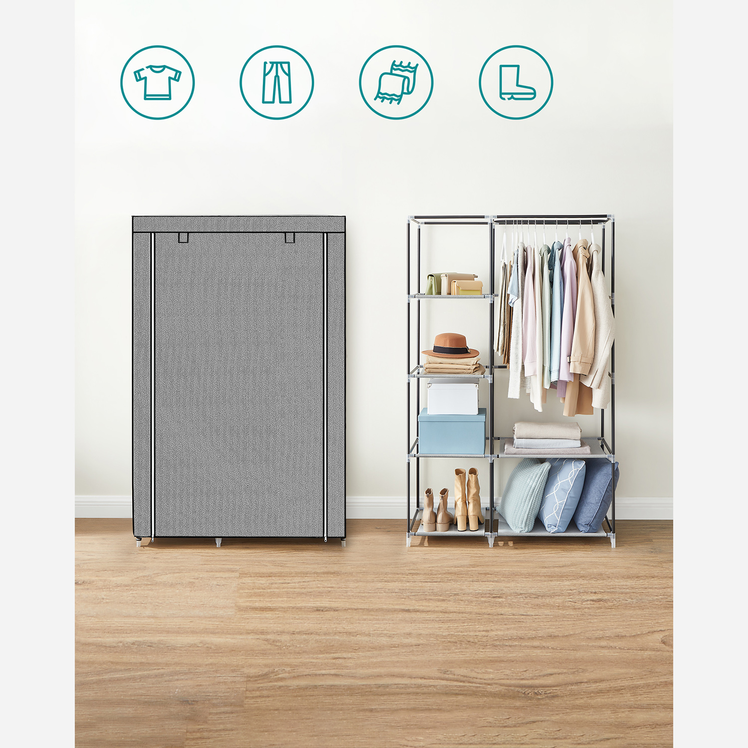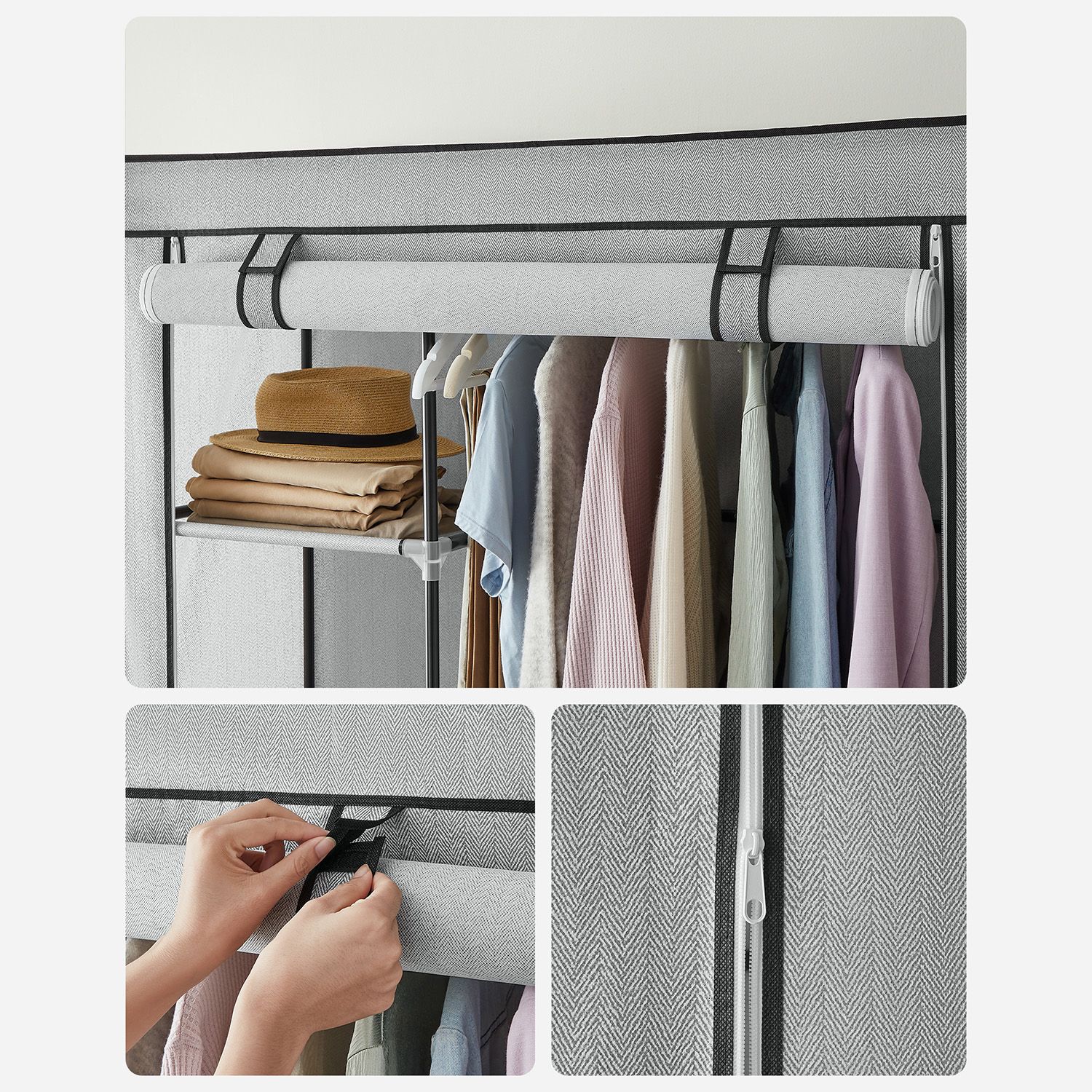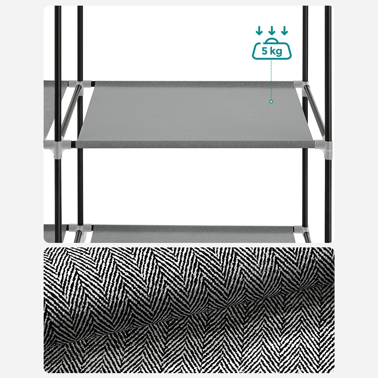 Ei enää rypistyneitä paitoja ja vaatteita Tämä täysin järjestetty vaatekaappi säästää sinut aamuruuhkassa vaatekasojen seasta oikean asun etsimiseltä. Käytä vaatetankoa ripustamaan vaatteesi seuraavaa työpäivää varten siististi, jotta voit tuntea olosi virkeäksi aamulla. Tuotetiedot: – Väri: harmaa, kalanruotokuvio – Materiaali: kuitukangas, metalliputki, muoviliittimet – Koko: 45 x 105 x 168 cm (S x L x K) – Paino: 3,7 kg – Tangon maks. staattinen kantavuus: 15 kg – Hyllyn maks. staattinen kantavuus: 5 kg – Maks. staattinen kokonaiskantavuus: 45 kgToimitus sisältää:- 1 x kangaskaappi – 1 x kaatumissuoja – 1 x ohjeet SONGMICS Huomautukset: – Älä käytä tuotetta ulkona. – Turvallisuussyistä lapset eivät saa kiivetä tuotteelle tai leikkiä sillä. – Kiinnitä tämä tuote seinään mukana toimitetulla kaatumissuojalla turvallisen käytön varmistamiseksi.
