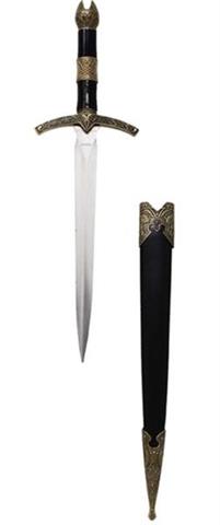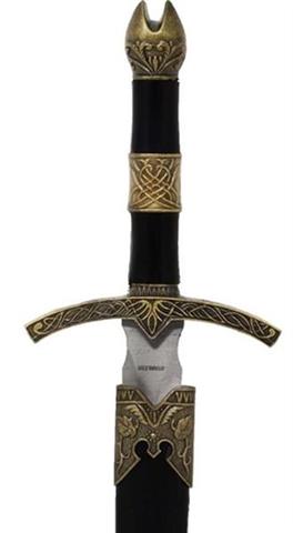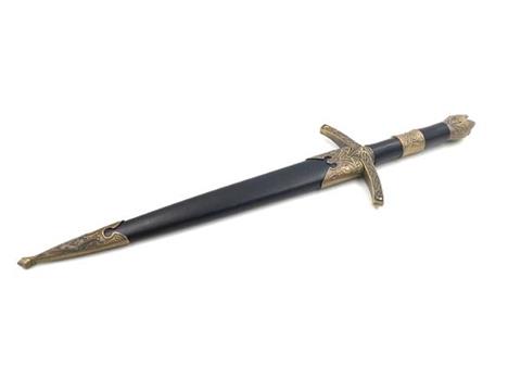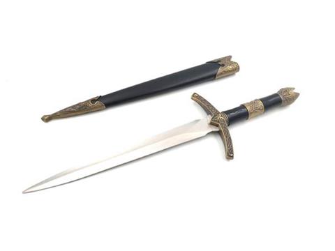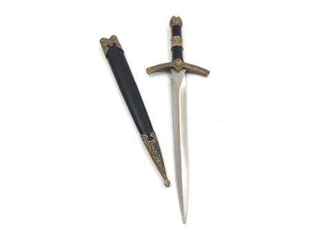 Teräksinen ritarin tikari – replica SW-178 Teräksinen tikari voi olla loistava lahja historian ystävälle, koska se antaa heille mahdollisuuden tuntea yhteyden menneisyyteen ja eri aikakausien kulttuureihin ja perinteisiin. Elegantin teräksisen tikarin käsityötaito ja yksityiskohtiin kiinnitetty huomio tekevät siitä myös visuaalisesti vaikuttavan ja hienostuneen koriste-esineen. Lisäksi tyylikäs teräksinen tikari voi olla merkityksellinen ja ainutlaatuinen lahja historian ystäville, koska se edustaa eri historiallisten yhteiskuntien arvoja ja ihanteita. Tuotetiedot: Kopio keskiaikaisesta ritarin tikarista tuppeen – koriste-esine Tämä ei ole ase – tikarin terä on tylsä Pituus – 34 cm Paino – 0,23 kg Valmistettu ruostumattomasta teräksestä Mukana koristeellinen tuppi Esteettinen lahjapakkaus Huomautus: Tikari ei ole lelu. Se on koriste-esine. Se on pidettävä poissa lasten ulottuvilta. Älä anna alle 18-vuotiaiden henkilöiden käyttöön!
