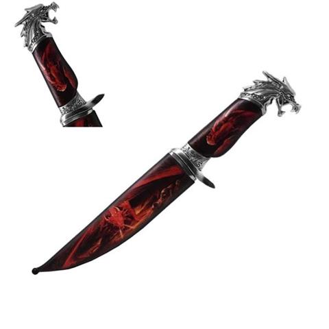 Teräksinen tikari – lohikäärmekahva – koristeellinen – SW-189 Tuotetiedot: Tikarin mitat: pituus 35 cm, leveys 6,50 cm, syvyys 1,50 cm.Tuppen mitat: pituus 20,50 cm, leveys 4,00 cm, syvyys 1,50 cm Terä: pituus 17,00 cm, leveys 3,00 cm Kahva: pituus 14,00 cm, leveys 3,50 cm Terästerä Tuppi mukana Huomautus: Tämä ei ole lelu – tuote on tarkoitettu yli 18-vuotiaille.