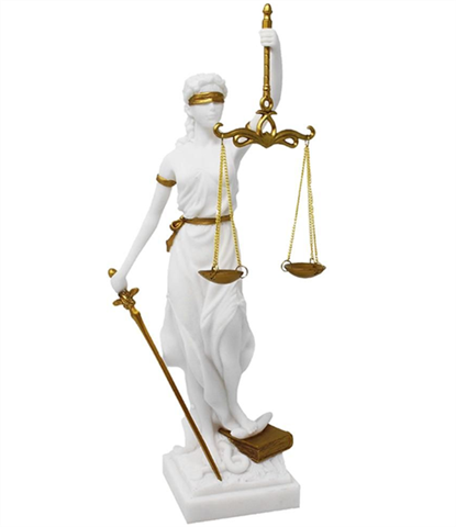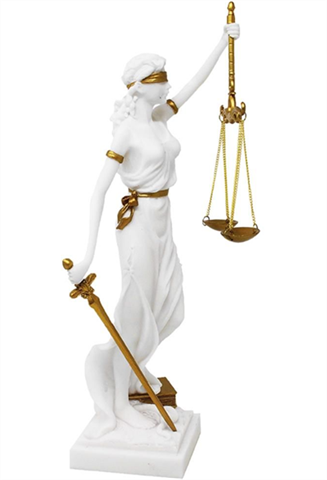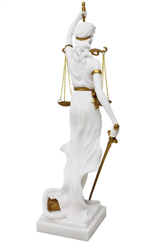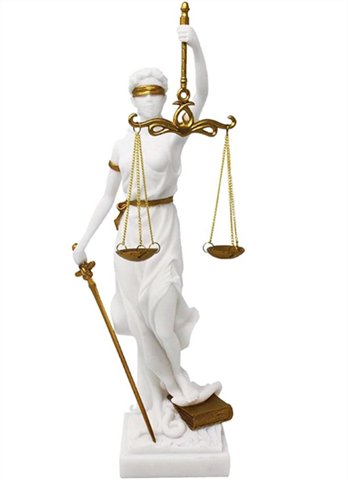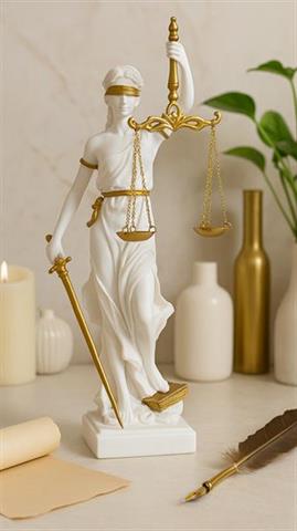 Themis – Lahja lakimiehelle – MC-90205 Themis on yksi suosituimmista symboleista lakimaailmassa. Jumalattaren pienoispatsas sopii erinomaisesti lahjaksi lakimiehelle tai tuomarille. Se on upea koriste lakitoimistossa tai tuomarin työhuoneessa. Patsas on valkoinen, ja siinä on kultaisia yksityiskohtia silmälapun, vaa’an ja miekan muodossa. Themis – lain ja oikeuden symboli. Kreikkalaisen mytologian mukaan Temida oli jumalatar ja oikeuden, lain ja ikuisen järjestyksen henkilöitymä. Themisin silmillä oleva erottuva silmälappu on puolueettomuuden symboli. Themis on kuvattu myös kolmen muun attribuutin kanssa: vaa’alla, jolla hän punnitsee tuomittavien hyvät ja pahat teot, miekalla, joka symboloi halua lopettaa riidat ja suojella jumalattarta itseään, sekä jalkojensa alla olevalla käärmeellä, joka kuvastaa voittoa pahuudesta. Tuotetiedot: Mitat: 35 x 14 x 12 cm Materiaali: polyresiin (hartsikonglomeraatti)KäsinmaalattuVäri: valkoinen, kultainen Themis-patsas sopii erinomaisesti: Lahjaksi lakimiehelleLahjaksi oikeustieteen opiskelijalleLahjaksi tuomarilleSisustukseksi lakitoimistoonSisustukseksi tuomarin toimistoon