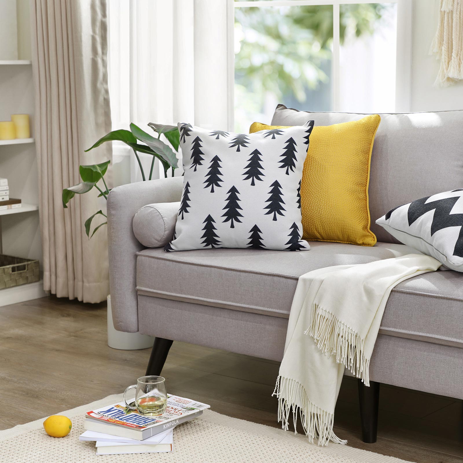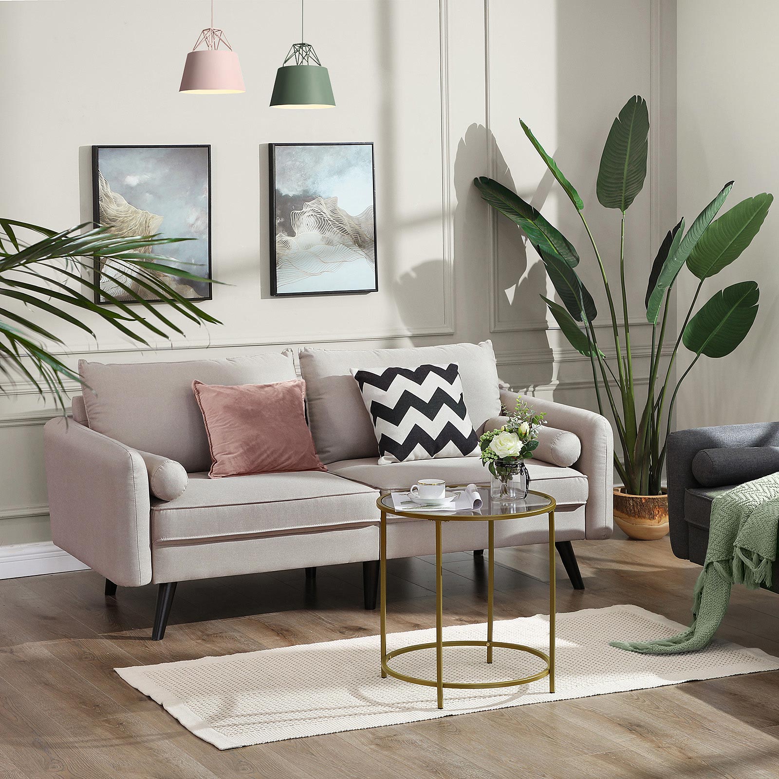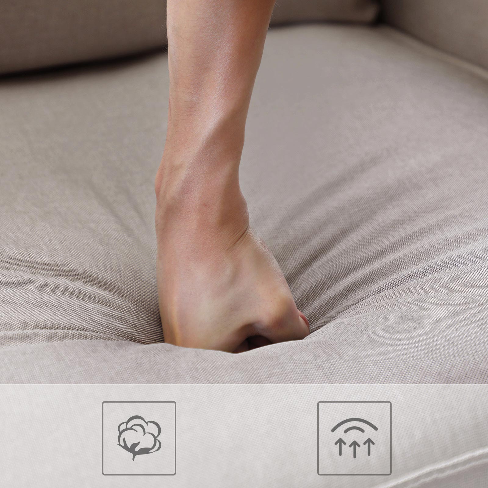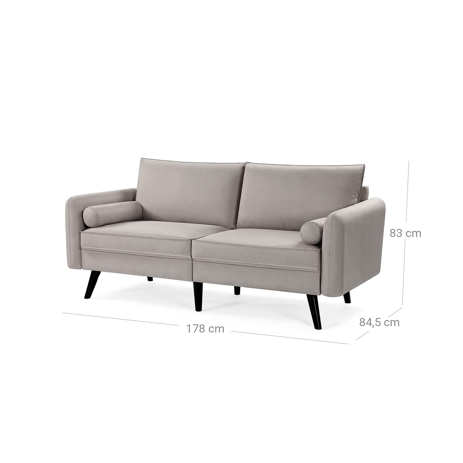 Mustat massiivipuujalat ja beige keinokangas – lyömätön yhdistelmä, joka paitsi korostaa tilojesi tyyliä, on myös erityisen kestävä ja kulutusta kestävä. Tämän mukavan istuimen kohokohdat yhdellä silmäyksellä: – Sohvan jalat on valmistettu kumipuusta, minkä ansiosta ja tukevan puisen alustan ansiosta sohva kestää 200 kg:n painon istuinta kohti. – Lisätila sohvan alla, johon voit esimerkiksi säilyttää tyynyjä. – Suuret tyynyt kiinnitetään sohvaan tarranauhalla, joten ne pysyvät aina paikoillaan. – Tyynyjen ja niskatyynyjen päälliset ovat irrotettavia ja siten helppoja puhdistaa. Tuotetiedot: – Väri: beige – Materiaali: keinokangas, vaahtomuovi, kumipuu, eukalyptuspuu – Koko: 180 x 82 x 83 cm (P x L x K) – Paino: 38,5 kg – Maks. staattinen kantavuus istuinta kohti: 200 kg/8 tuntia. Toimitussisältö: – 1 x sohva – 1 x tarvikepussi – 1 x ohjeet (DE, EN, FR, ES, IT) VASAGLE Huomautukset: – Lapset saavat käyttää tuotetta vain aikuisen valvonnassa. – Asenna tuote tarkasti ohjeiden mukaisesti. Muutokset tai muunnokset voivat vaarantaa tuotteen turvallisuuden.