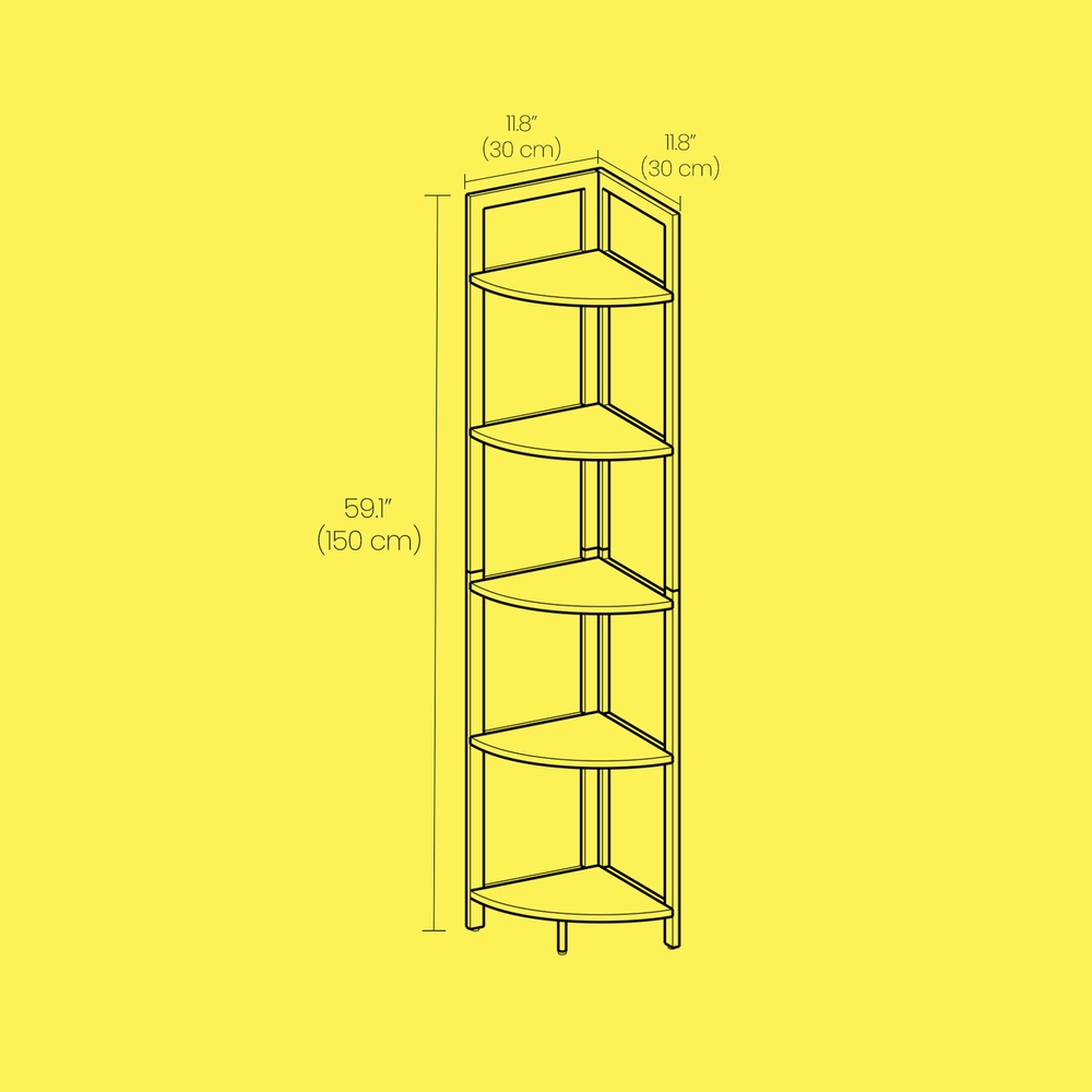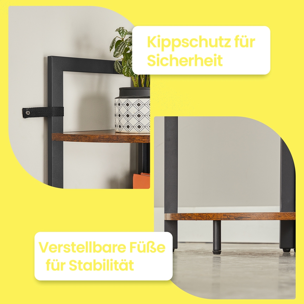Tuotetiedot: – Väri: vintage-ruskea-musta – Materiaali: lastulevy, teräs – Koko: 30 x 30 x 150 cm (P x L x K) – Paino: 6,8 kg – Maks. staattinen kantavuus hyllytasoa kohti: 5 kg Toimitus sisältää:- 1 x kulmahylly – 1 x lisävarustepaketti – 2 x kaatumissuoja – 1 x ohjeet VASAGLE Huomautukset: – Kiinnitä tämä tuote seinään mukana toimitetulla kaatumissuojalla. – Turvallisuussyistä lapset eivät saa kiivetä tuotteelle tai leikkiä sillä.