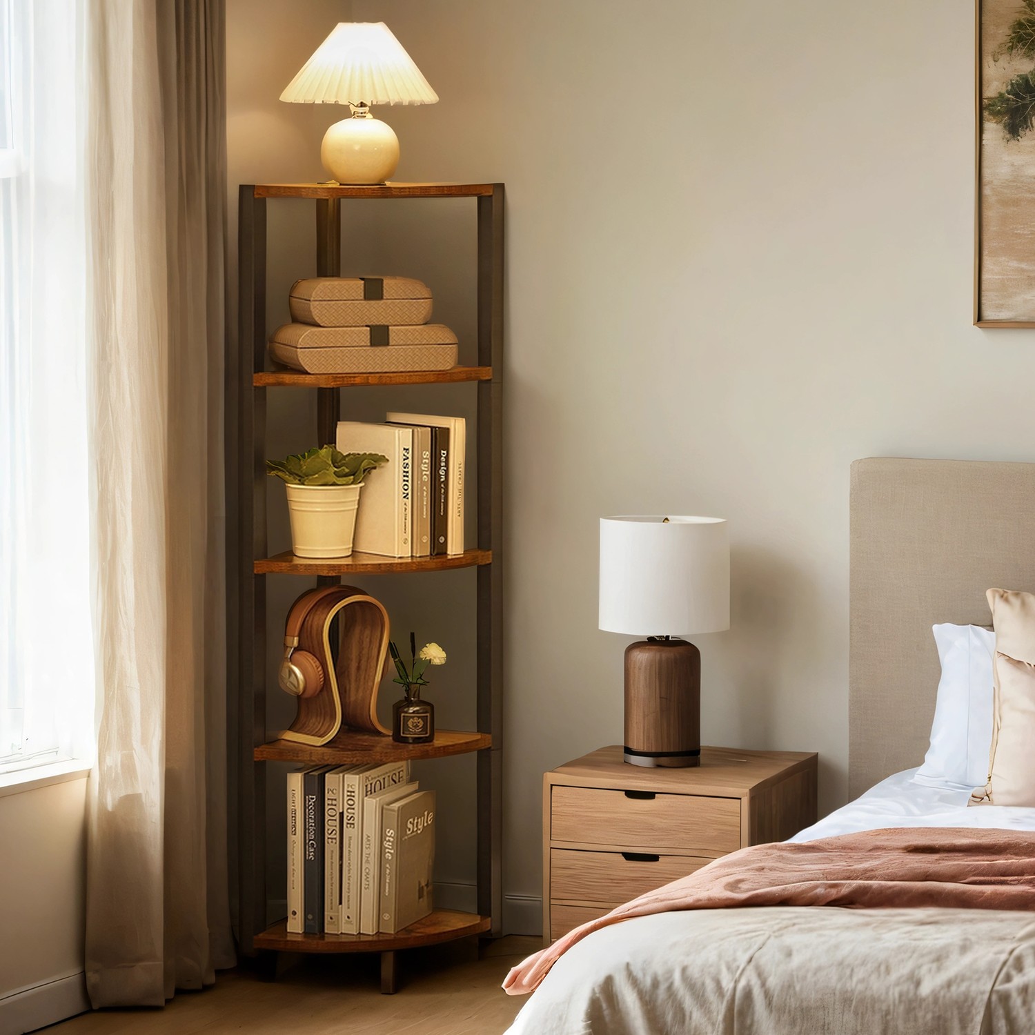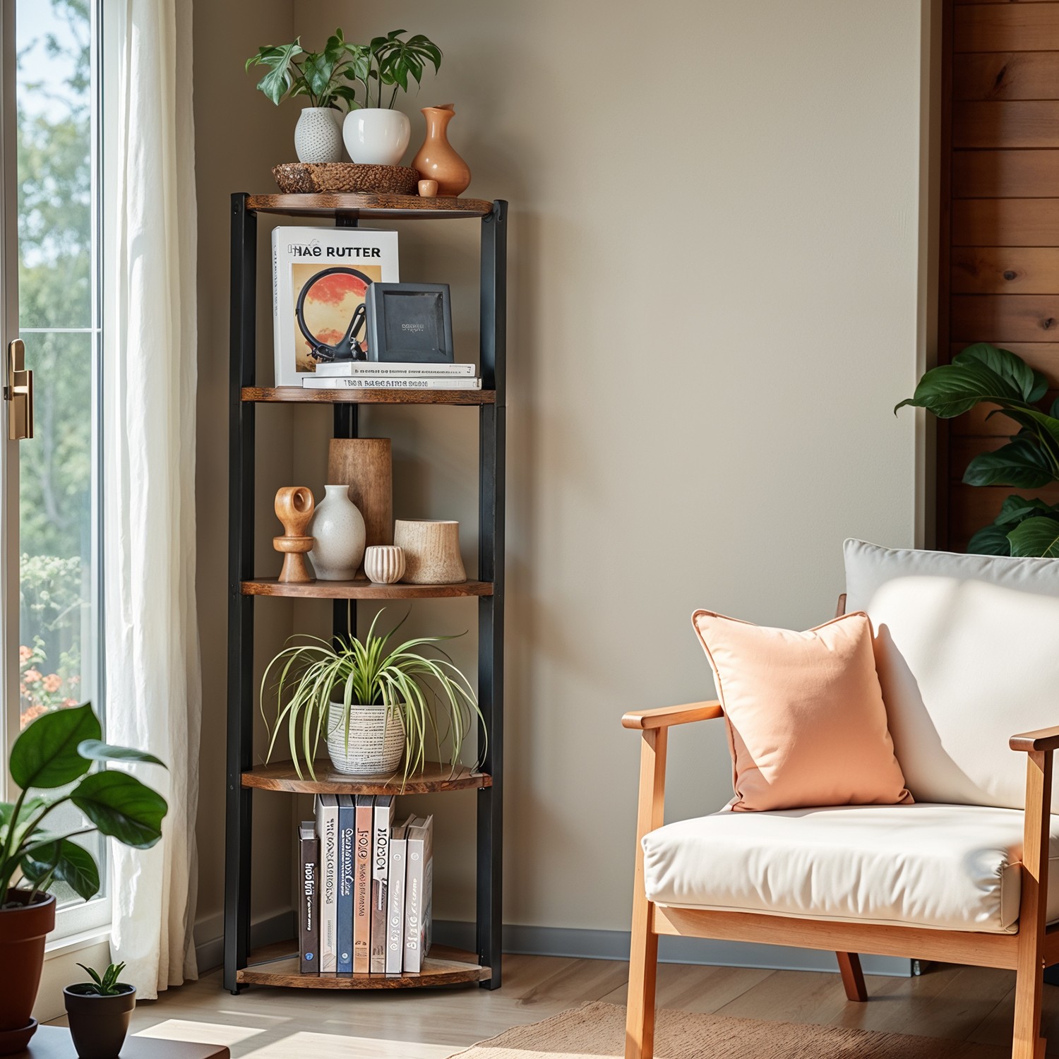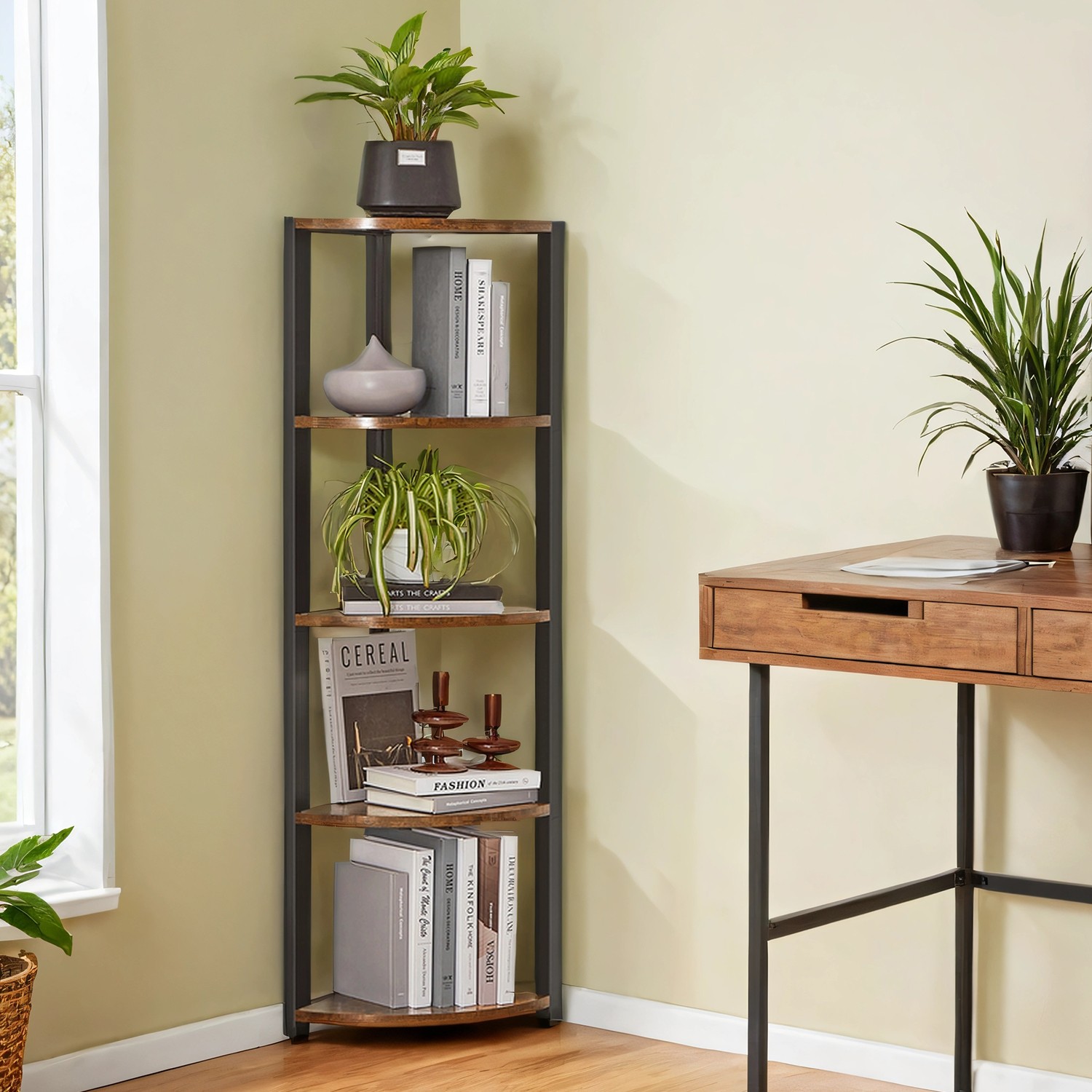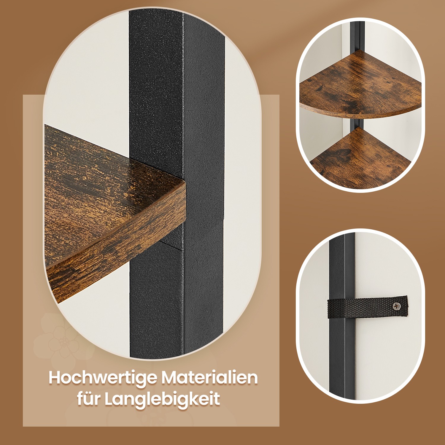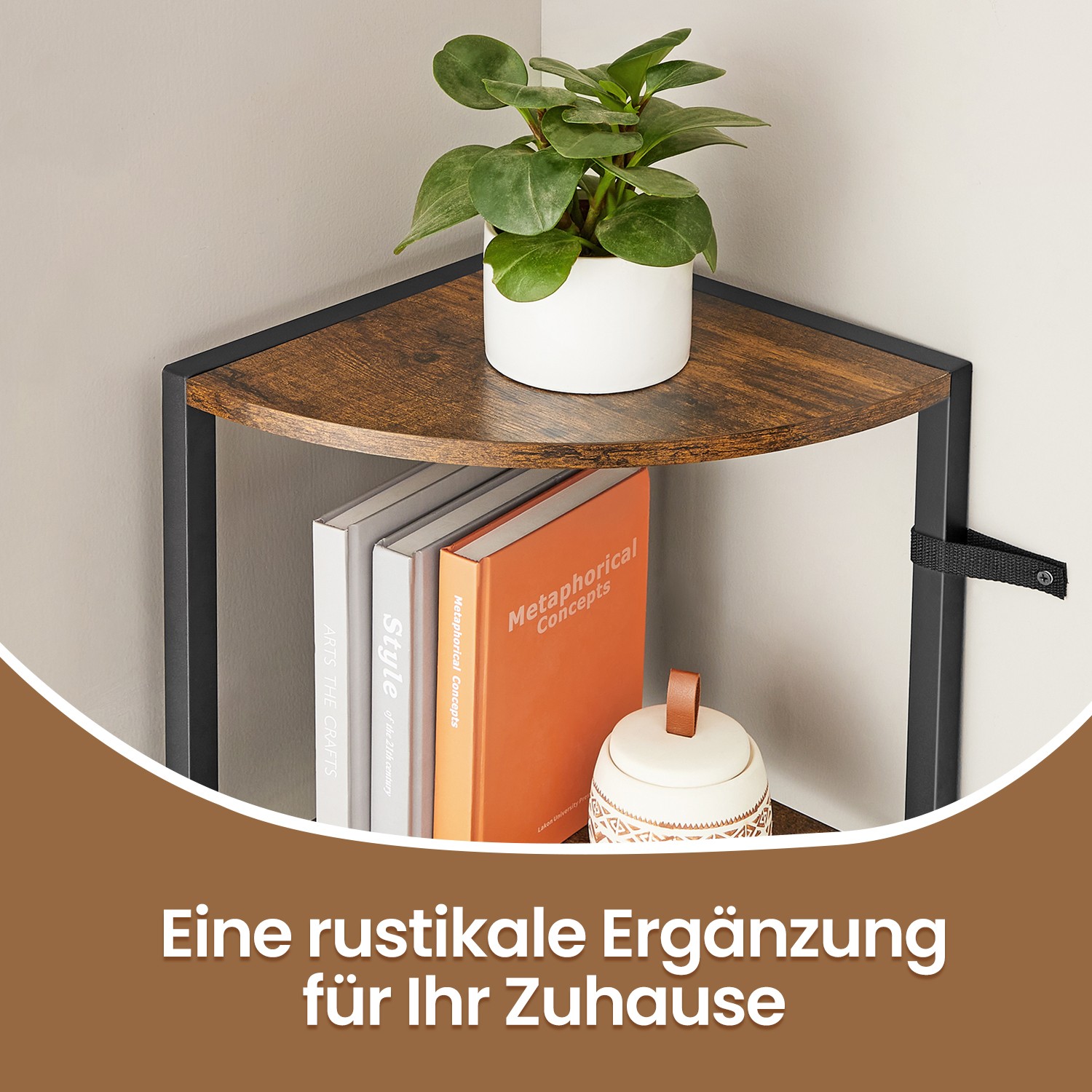Tuotetiedot: – Väri: vintage-ruskea-musta – Materiaali: lastulevy, teräs – Koko: 30 x 30 x 129,5 cm (P x L x K) – Paino: 6 kg – Maks. staattinen kantavuus hyllytasoa kohti: 5 kg Toimitus sisältää:- 1 x kulmahylly – 1 x lisävarustepaketti – 2 x kaatumissuoja – 1 x ohjeet VASAGLE Huomautukset: – Kiinnitä tämä tuote seinään mukana toimitetulla kaatumissuojalla. – Turvallisuussyistä lapset eivät saa kiivetä tuotteelle tai leikkiä sillä.