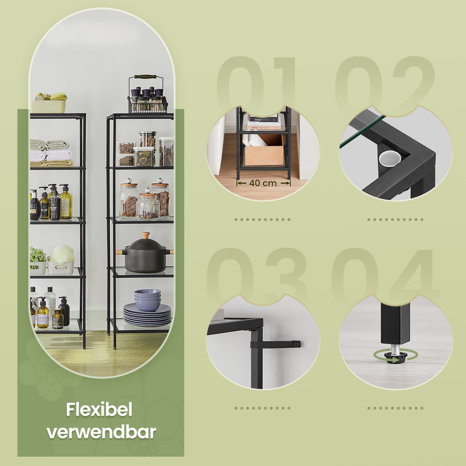 VASAGLE hyllykkö, kirjahylly, kylpyhuonehylly, 5 tasoa, keittiöhylly, kapea, hylly, kylpyhuonehylly, olohuoneeseen, makuuhuoneeseen, työhuoneeseen, karkaistu lasi, teräsrunko, kullanvärinen LGT029A01