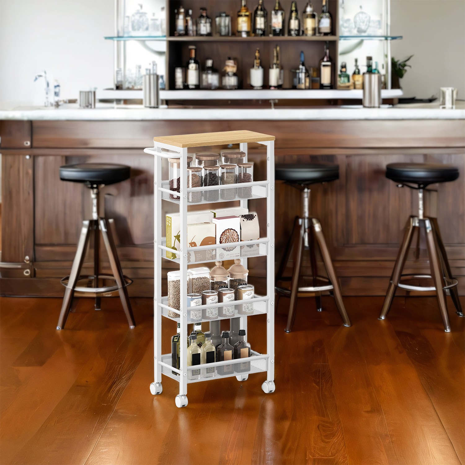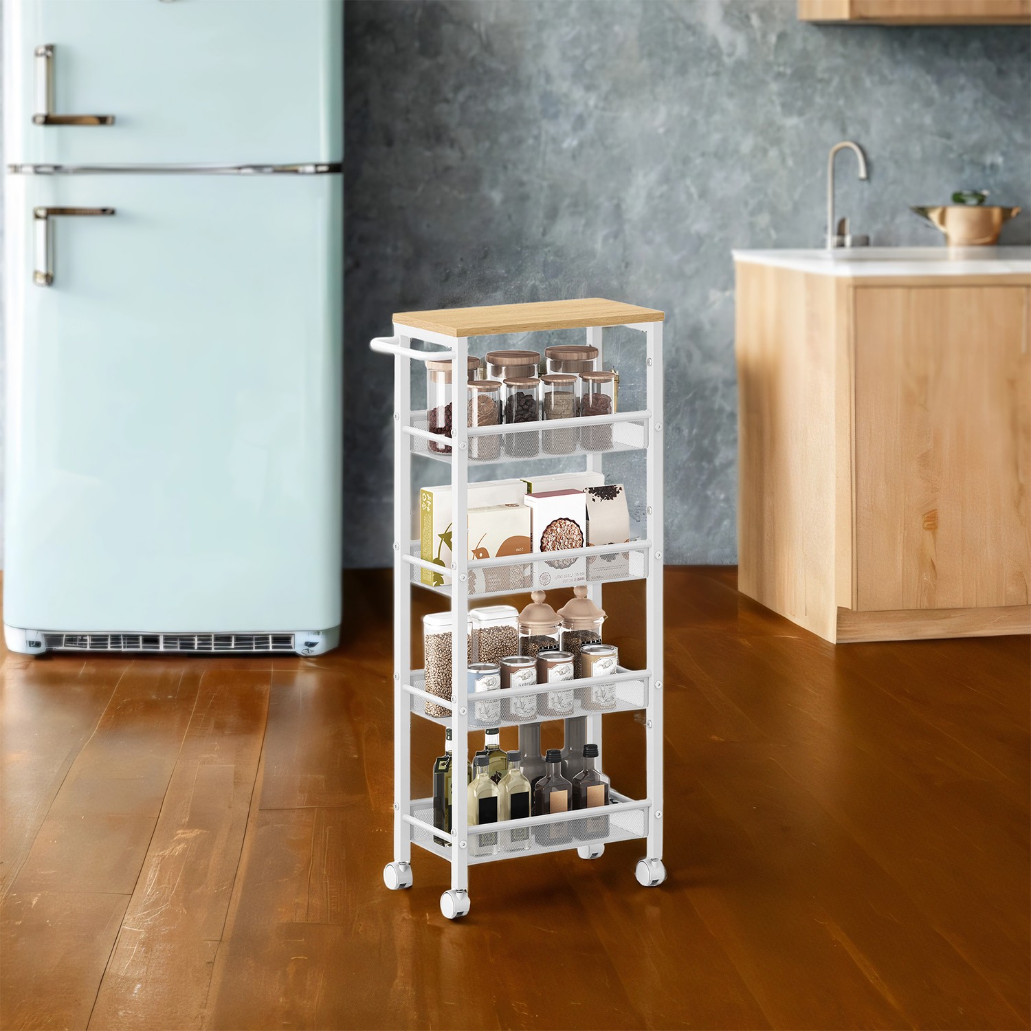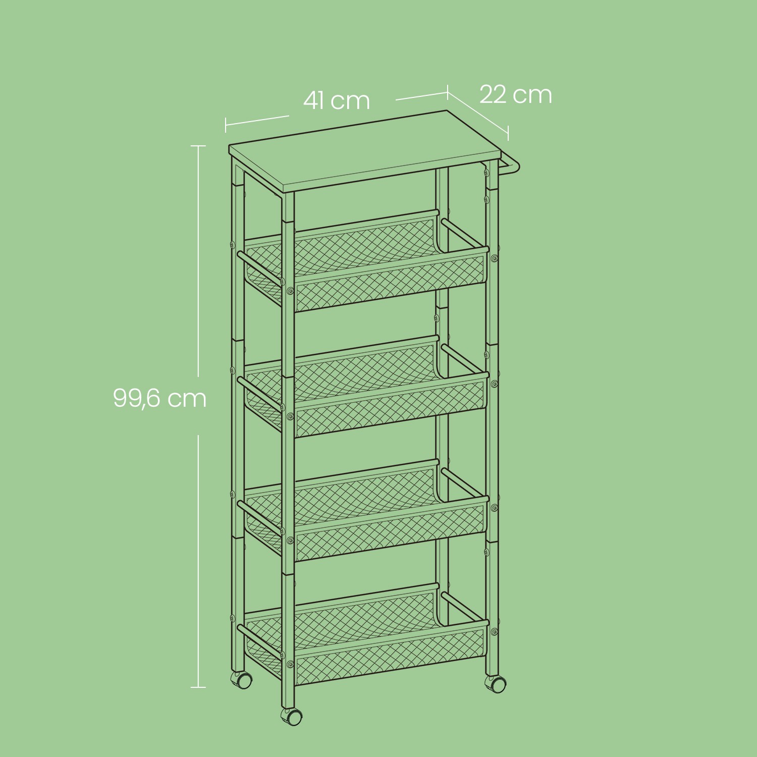 VASAGLE 5-tasoinen rullavaunu, kapea keittiövaunu, rullilla varustettu kapea hylly, teräs, kahva, pienet tilat, 22 x 45,4 x 99,6 cm, keittiö, kylpyhuone, olohuone, työhuone