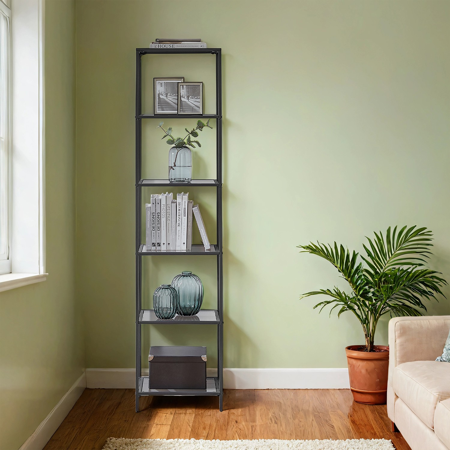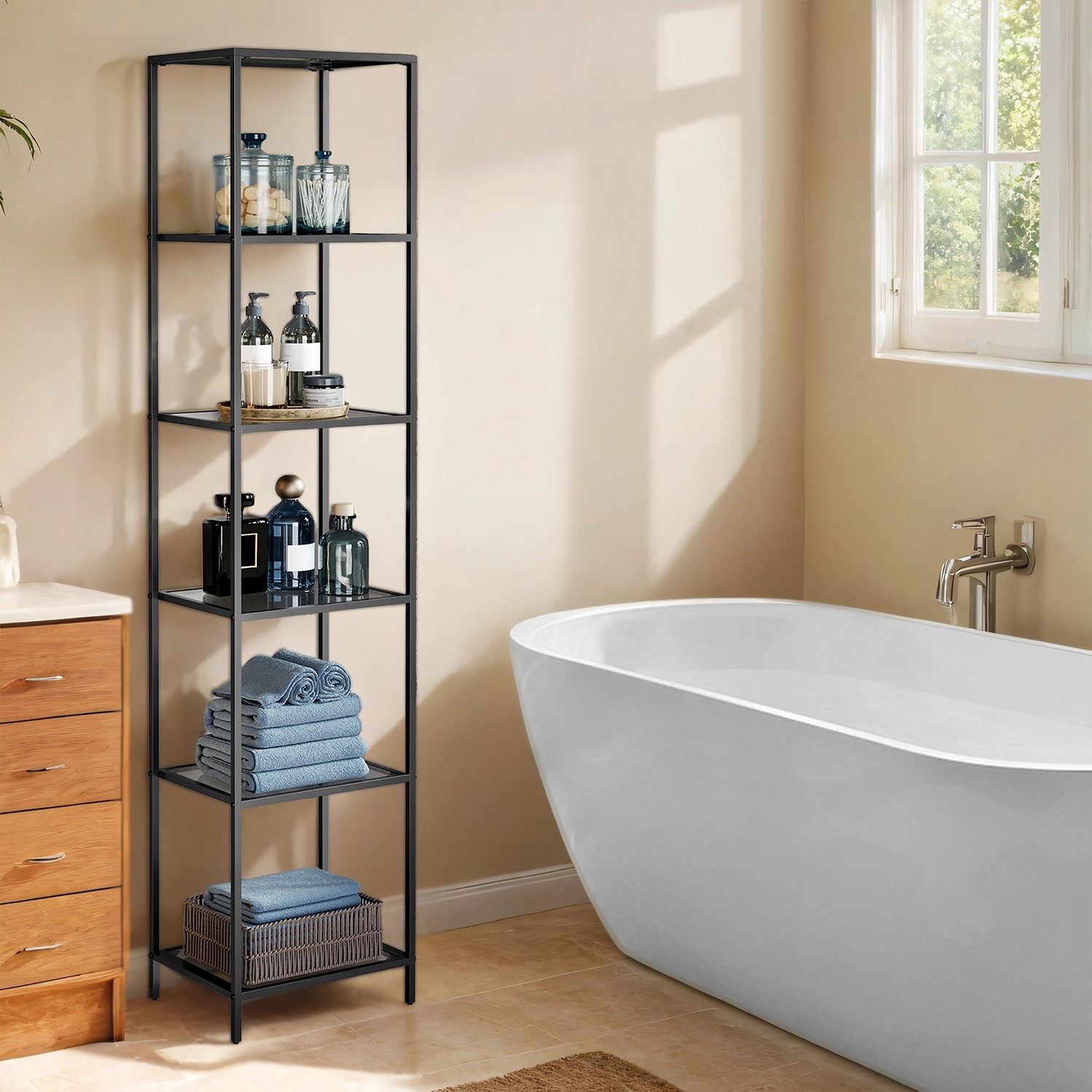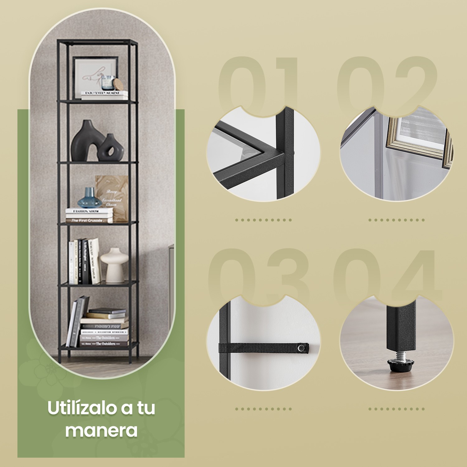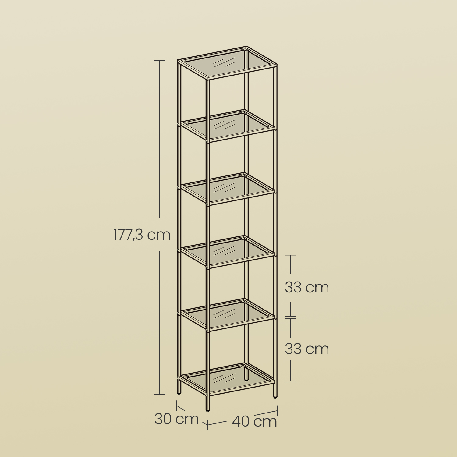 VASAGLE hyllykkö, kirjahylly, kylpyhuonehylly, 5 tasoa, keittiöhylly, kapea, hylly, kylpyhuonehylly, olohuoneeseen, makuuhuoneeseen, työhuoneeseen, karkaistu lasi, teräsrunko, kullanvärinen LGT029A01