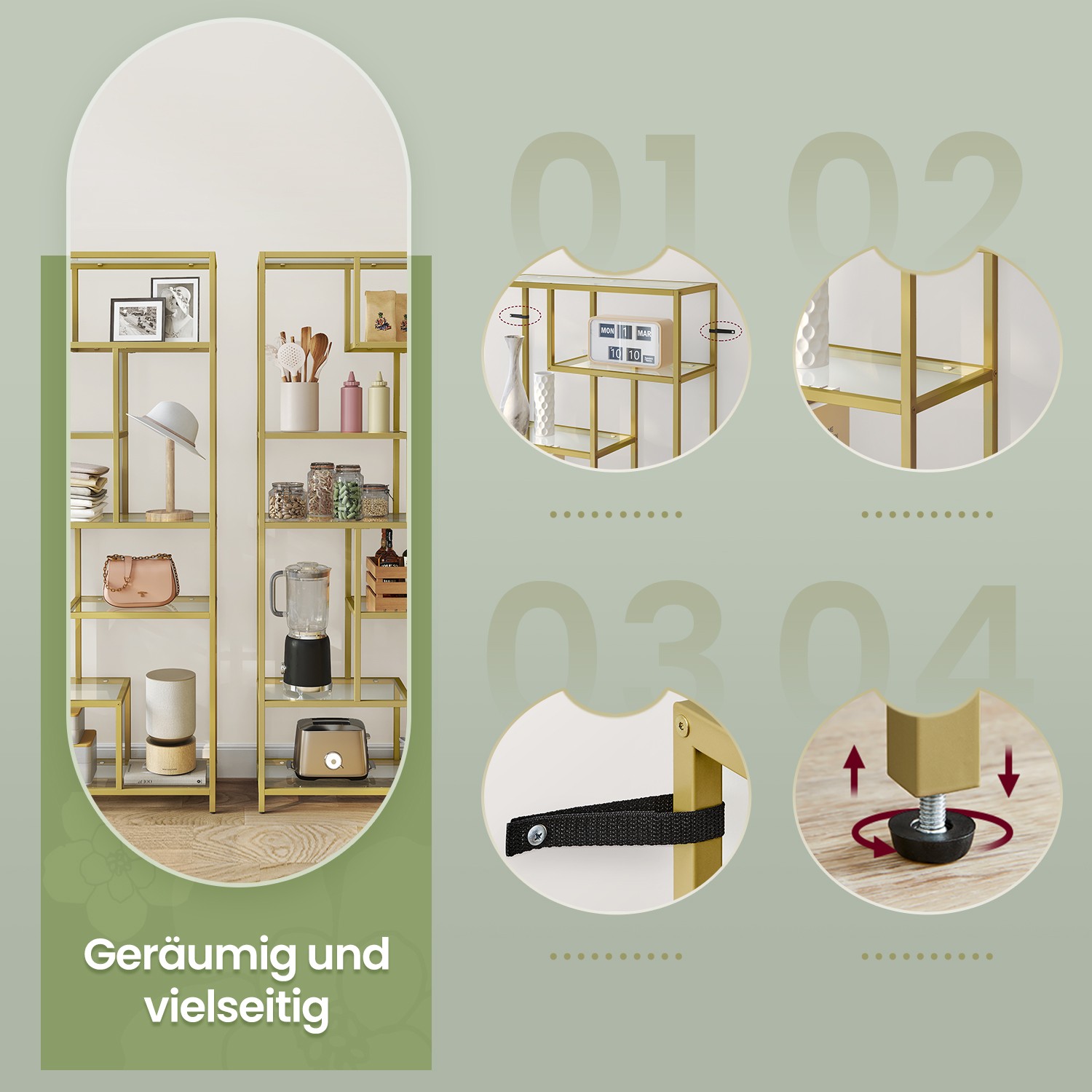 VASAGLE kirjahylly, hylly 6 hyllyllä, lattialla seisova hylly, karkaistusta lasista valmistetut hyllyt, 30 x 80 x 180 cm, työhuoneeseen, toimistoon, olohuoneeseen, makuuhuoneeseen, keittiöönKirjahylly