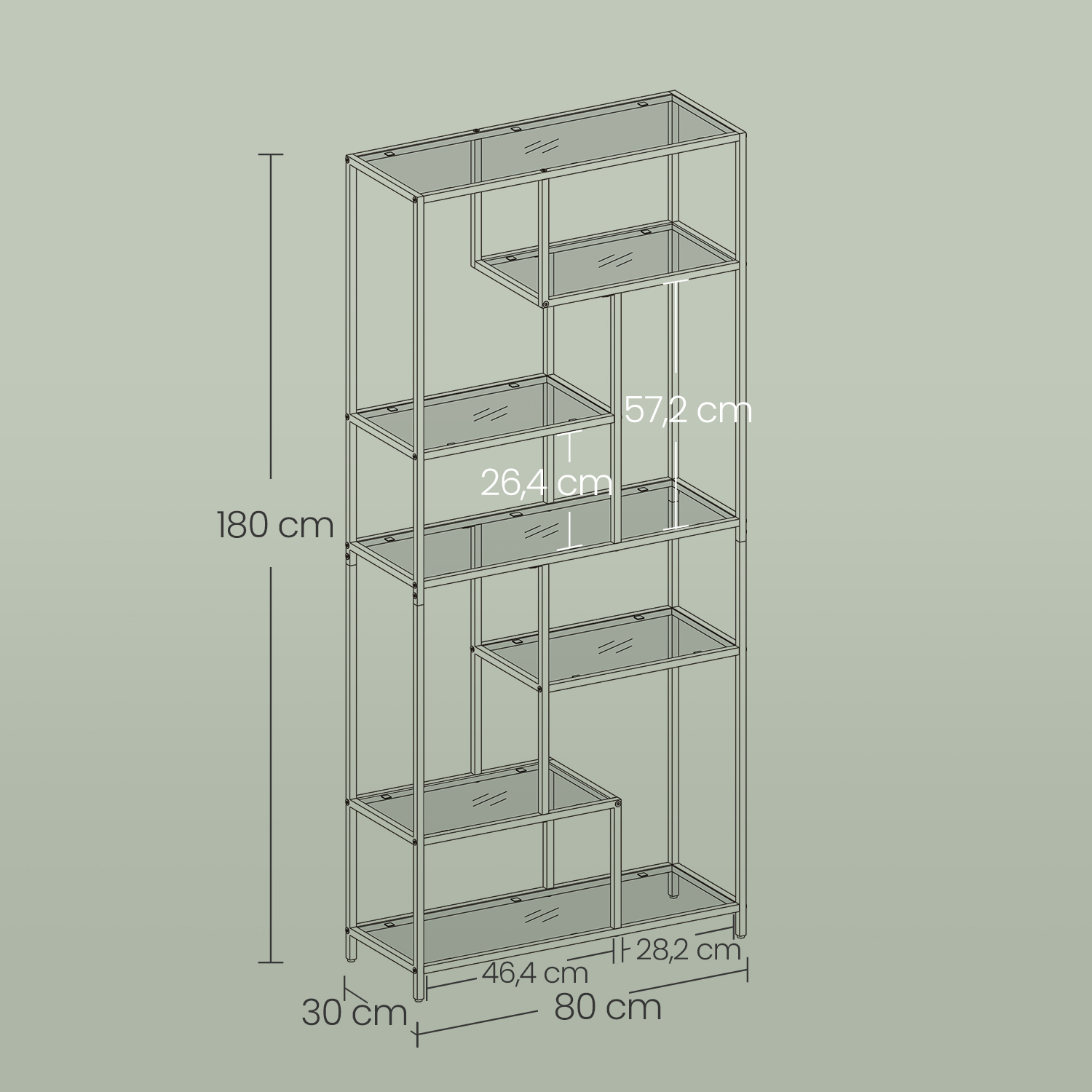 – Mitat: 30 x 80 x 180 cm (S x L x K)