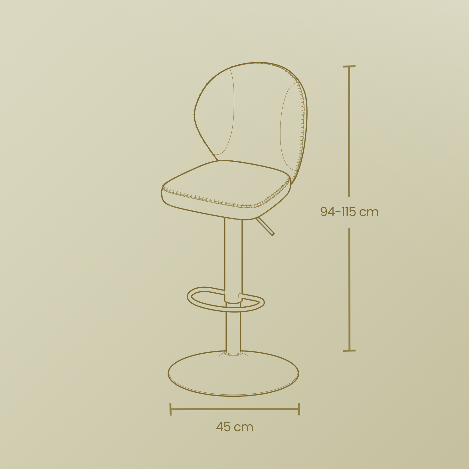 Koko per jakkara: 42 x 49 x (94-115) cm (S x L x K)