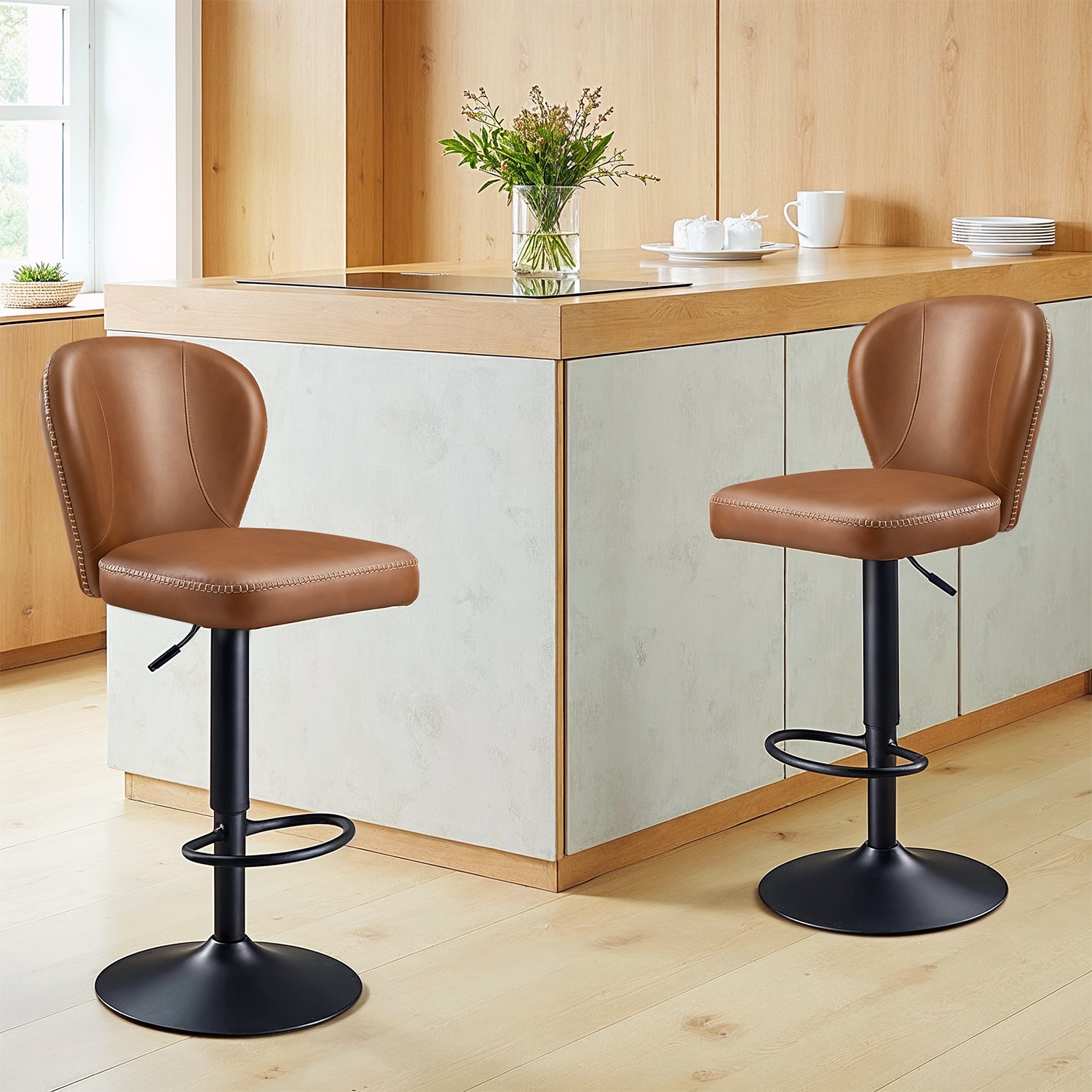 VASAGLE EKHO -kokoelma – 360° kääntyvä baarituoli, 2 kpl, korkeussäädettävä baarituoli selkänojalla, keinonahka, ompeleet, mid-century-modern-tyyli, keittiö, kotibaari, helppo asennus, musta