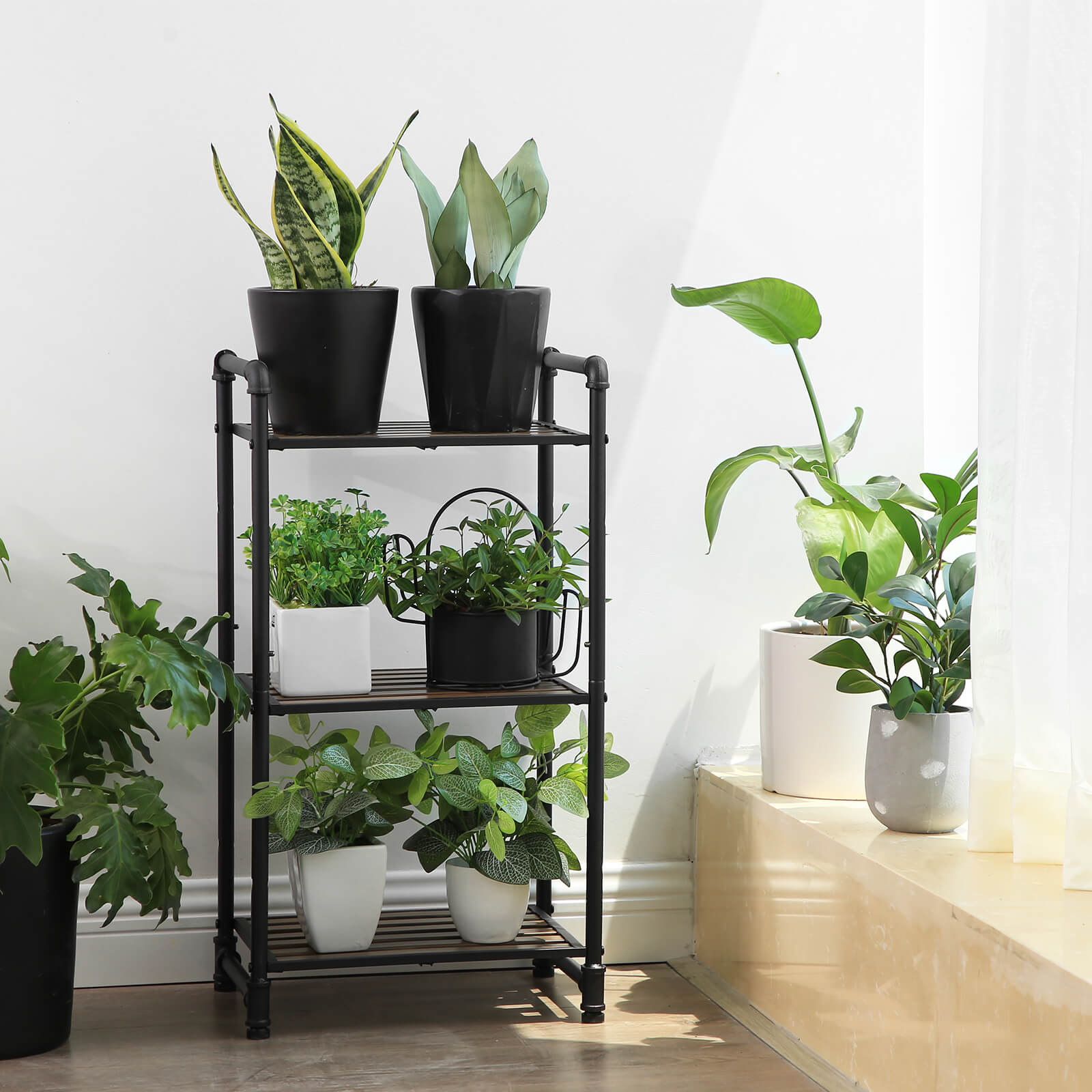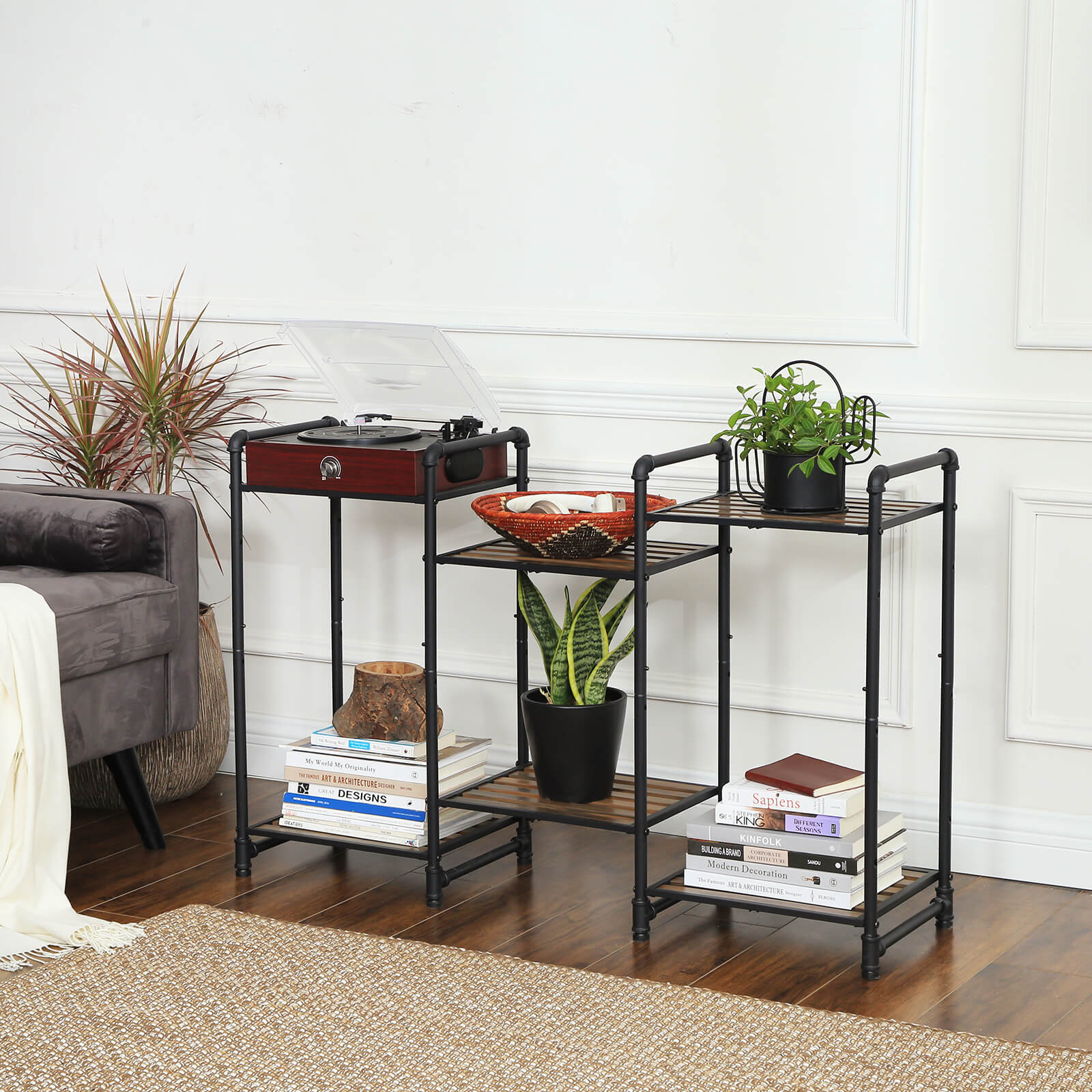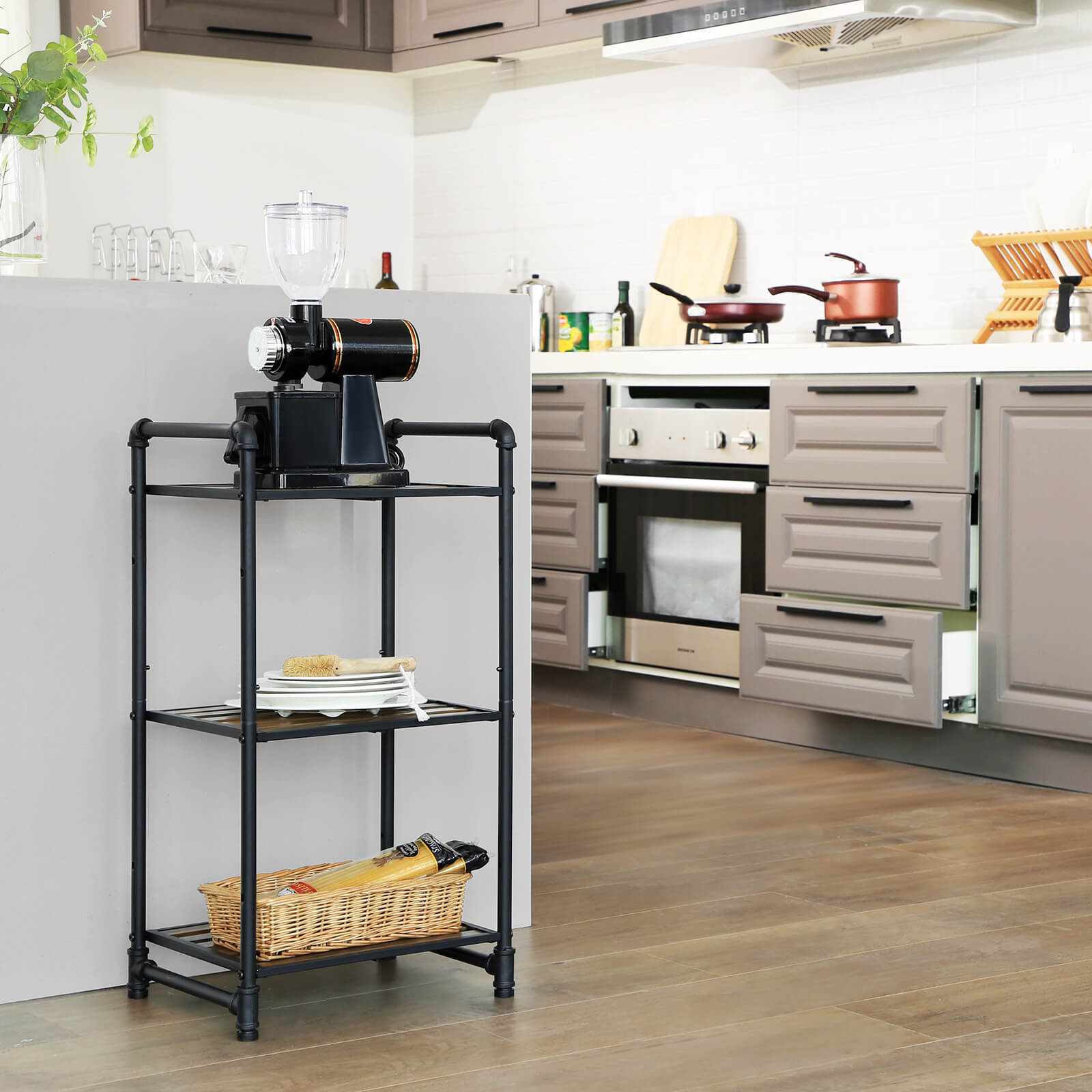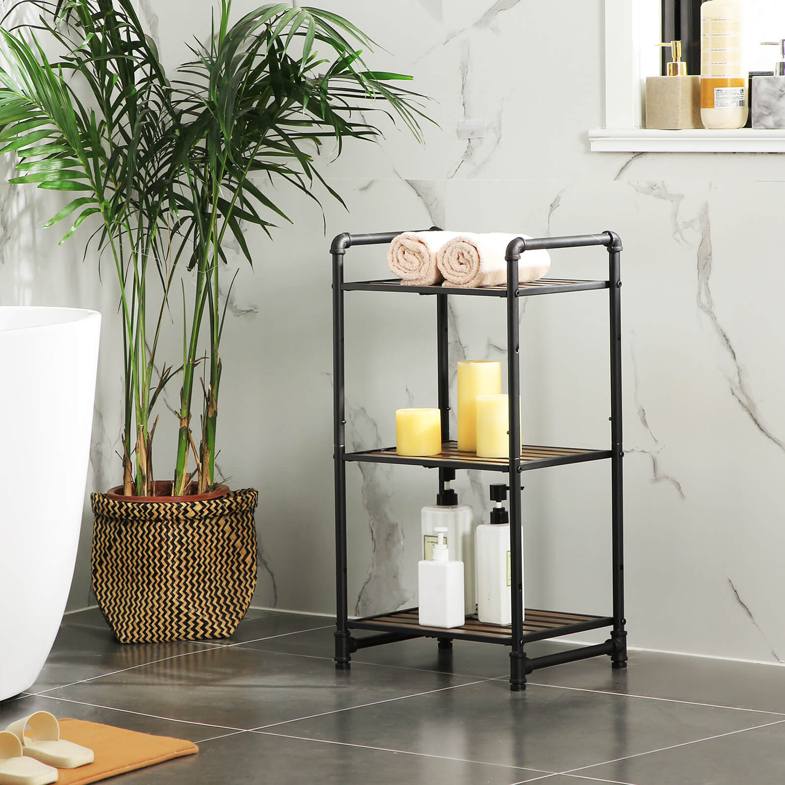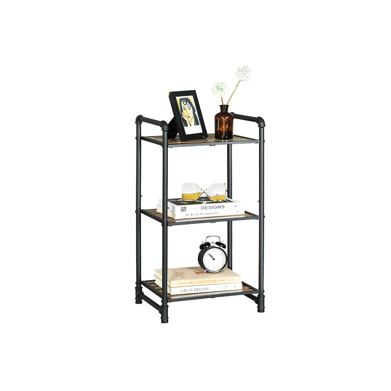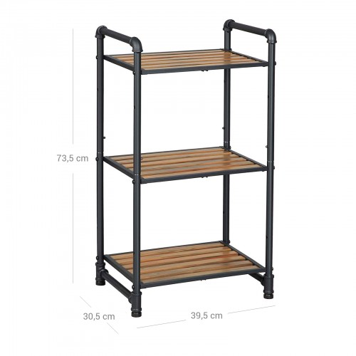 Tuotetiedot: Väri: putket mustat, vintage-hyllyt tummanruskeat Materiaali: rauta, synteettiset hyllylattiat Koko: 39,5 x 30,5 x 73,5 cm (P x L x K)Hyllyn koko: 35 x 28,5 cm Paino: 3,8 kg Maks. staattinen kantavuus per taso: 25 kg Toimitus sisältää: 1 x hylly 1 x lisävarustepussi 1 x ohjeet (DE, EN, FR, ES, IT) VASAGLE Huomautukset: Hyllyn maksimikantavuus on 25 kg. Älä ylitä tätä maksimipainoa.