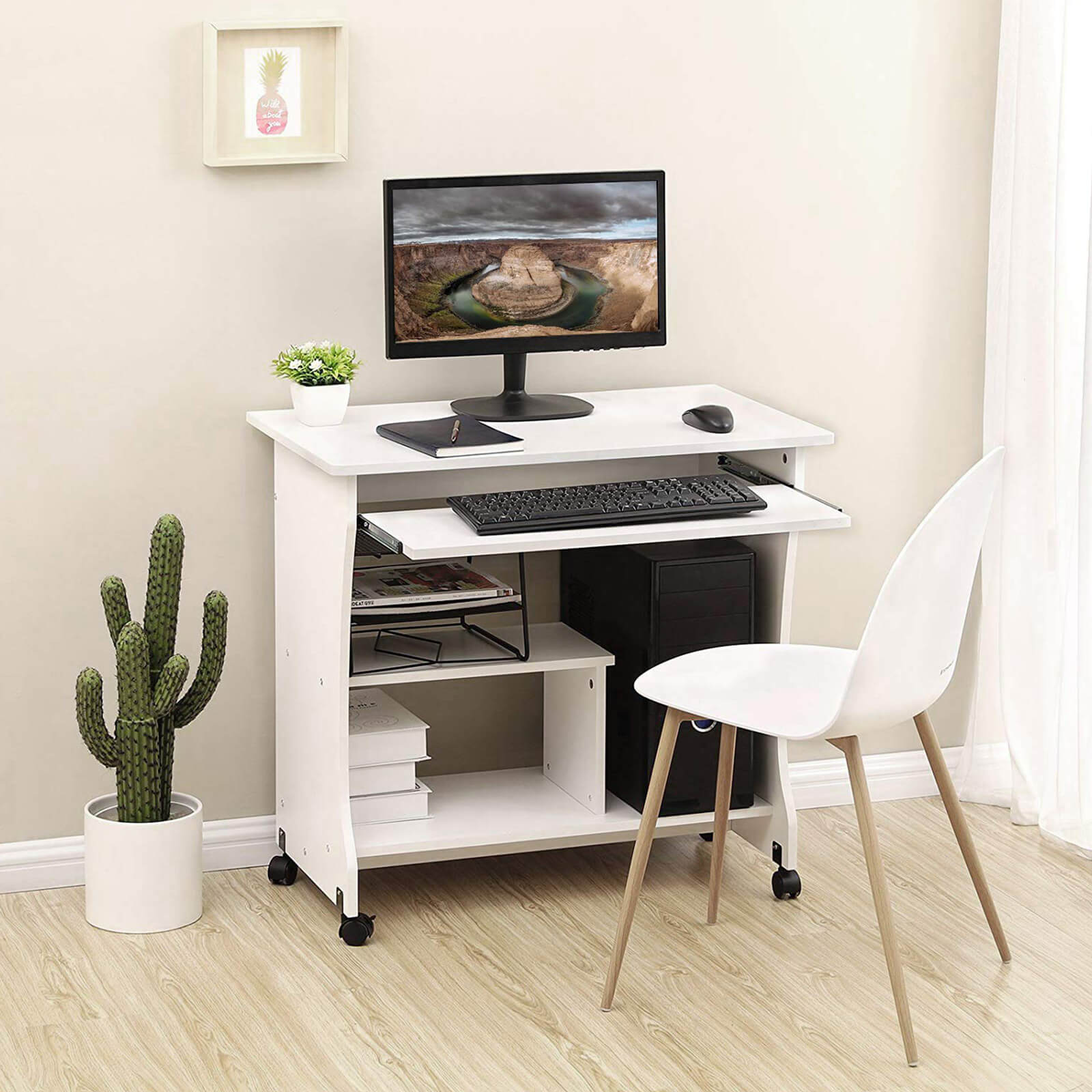 VASAGLE-kirjoituspöytä pyörillä, valkoinen