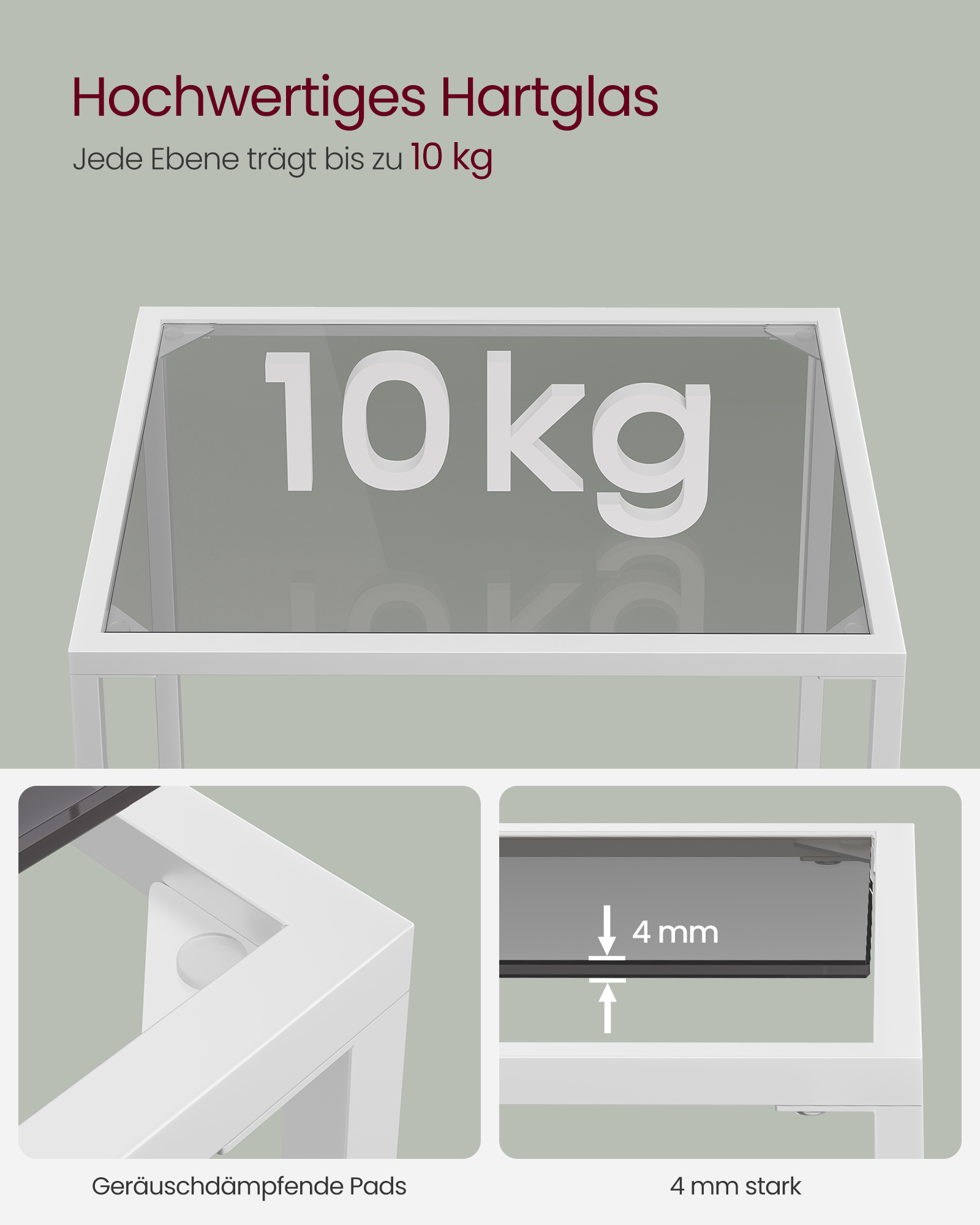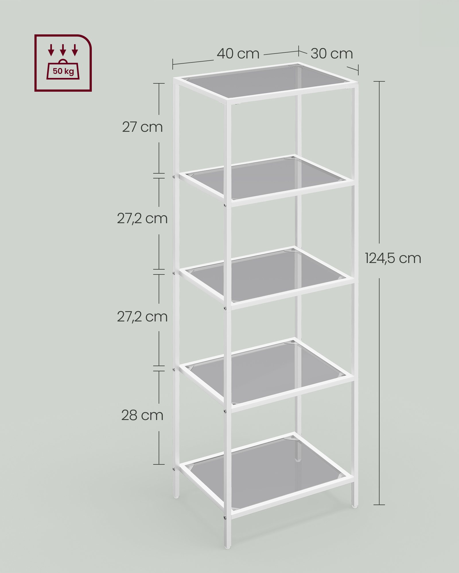 Maks. staattinen kantavuus hyllyä kohti: 10 kg