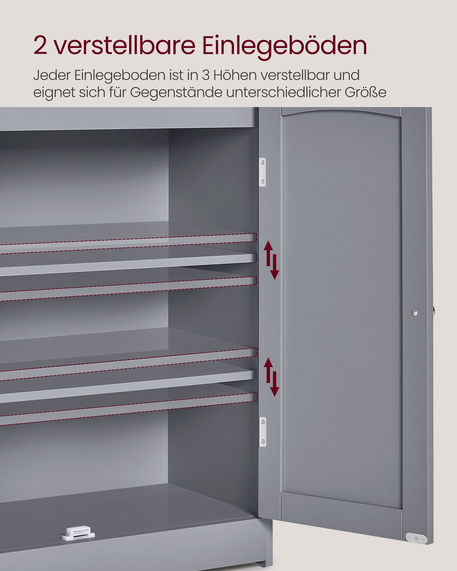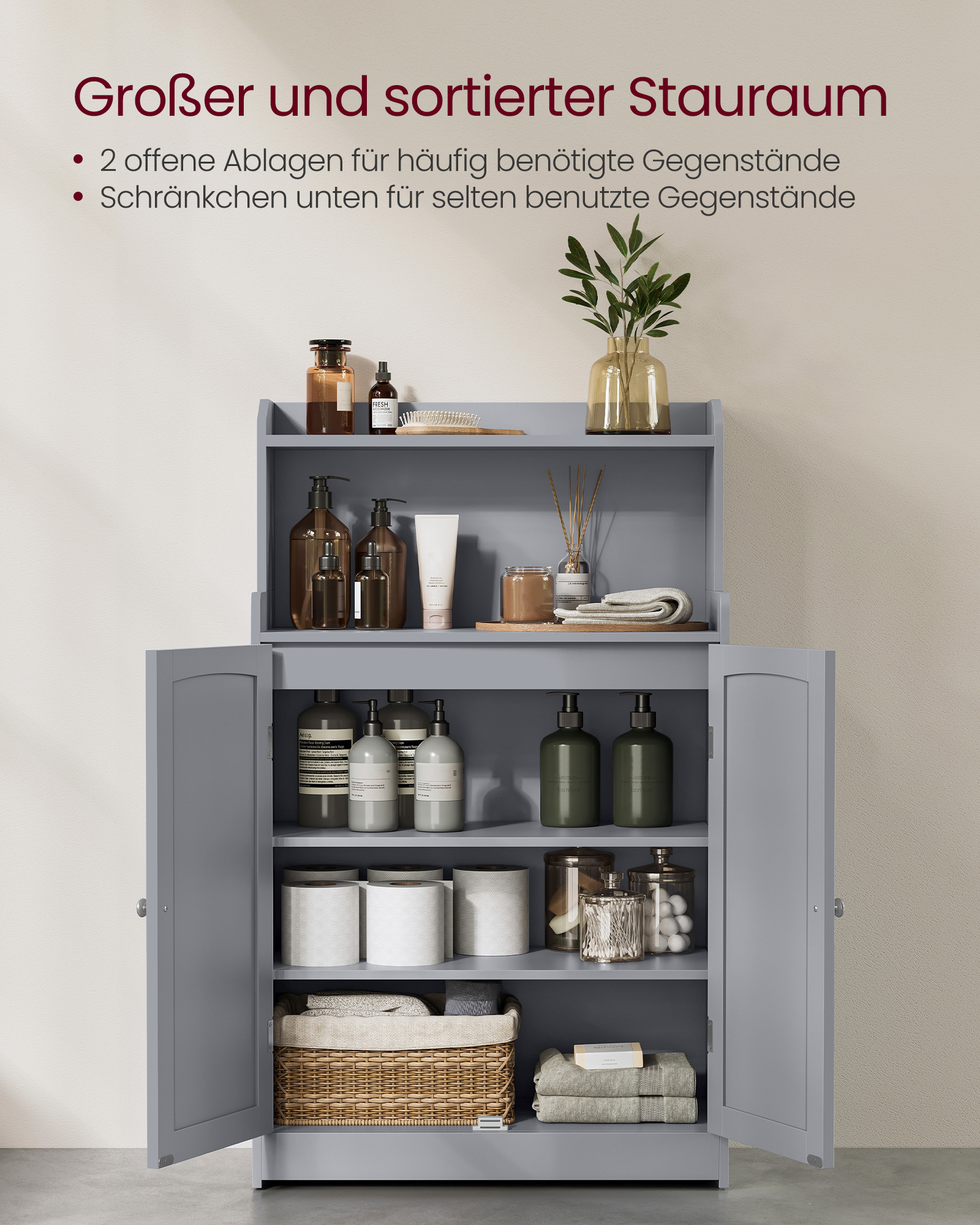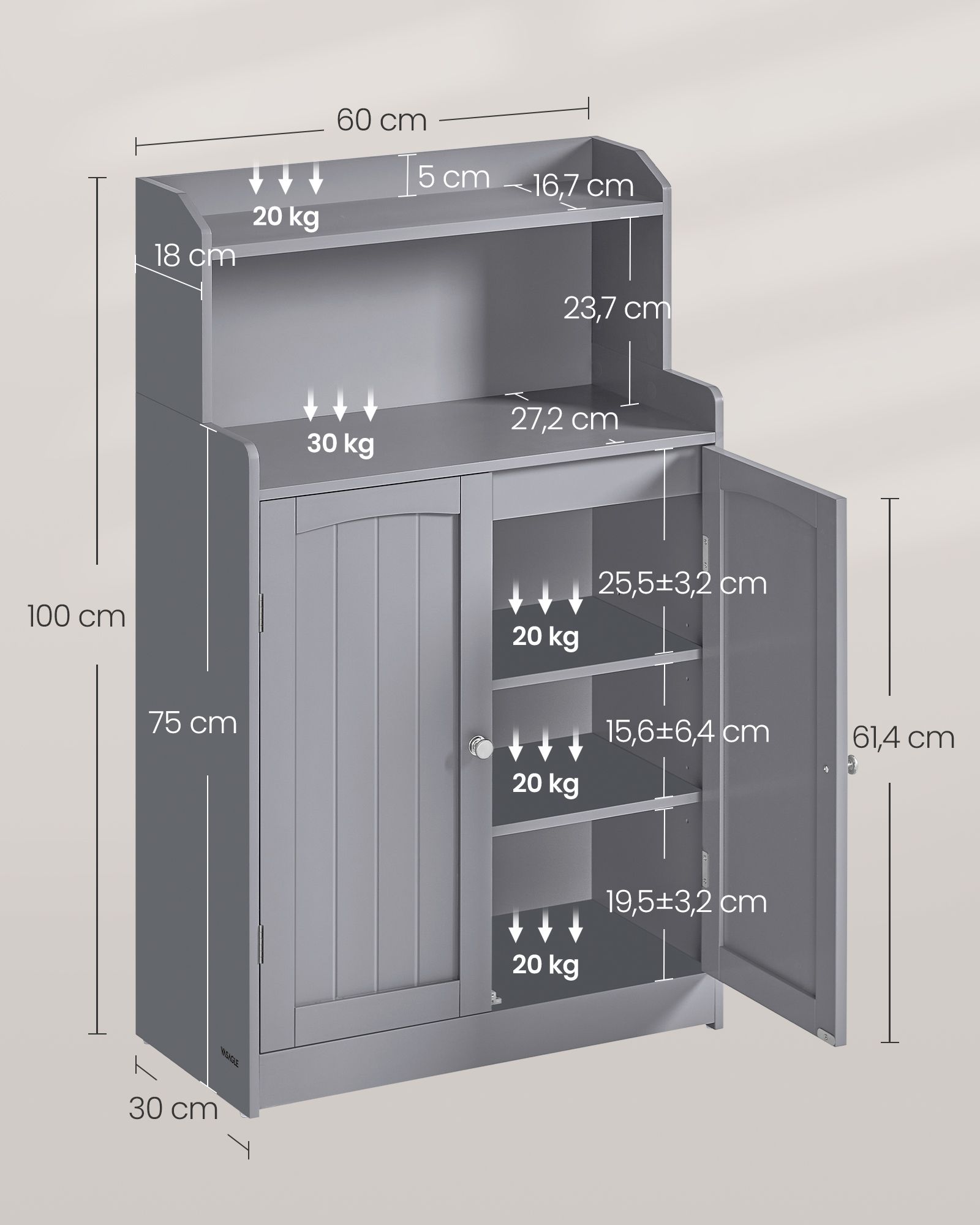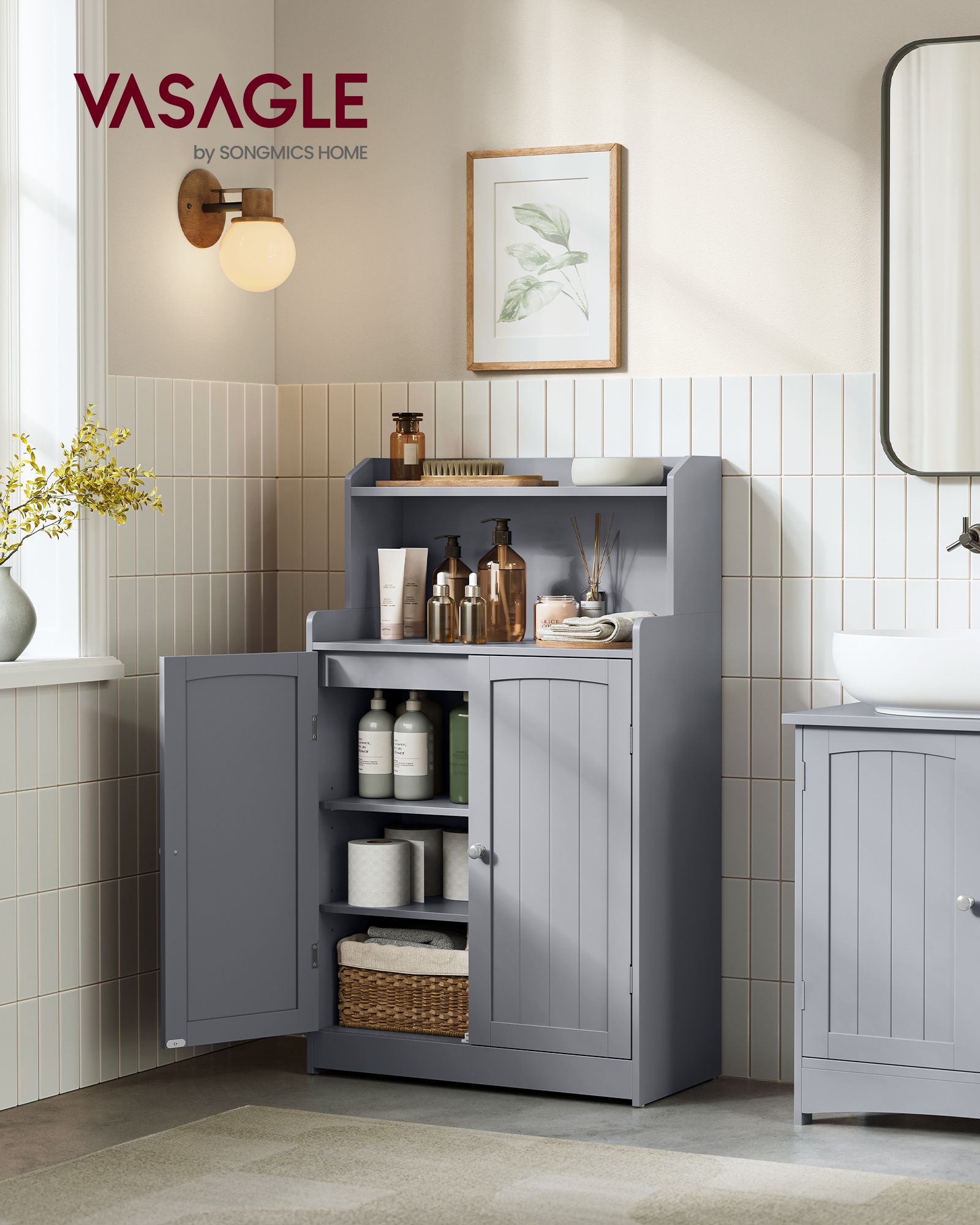 VASAGLE kylpyhuonekaappi, 2 ovea ja hyllyjä, kyyhkynharmaa