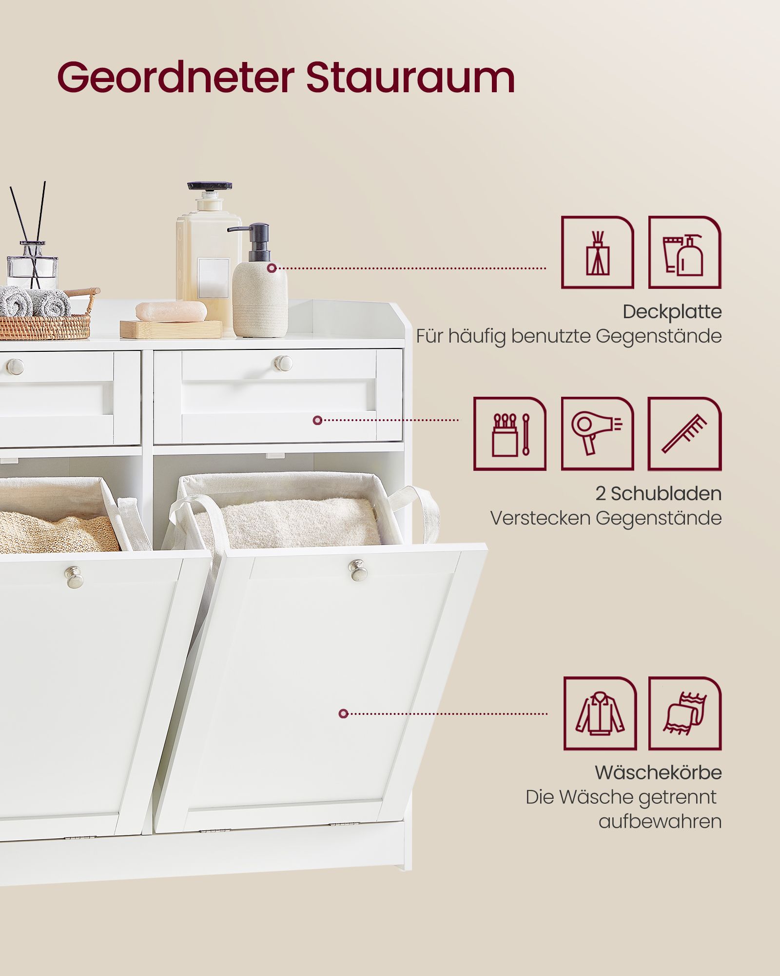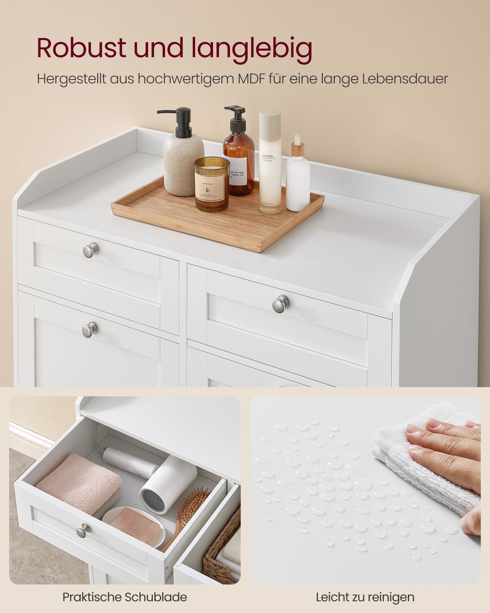 VASAGLE kylpyhuonekaappi pyykkikorilla, pyykkikaappi, kylpyhuonekaappi 1 laatikolla ja 1 pyykkilaatikolla, irrotettava sisätasku kahvoilla, 40 x 40 x 80,2 cm, pilvinen valkoinen BBC741W01