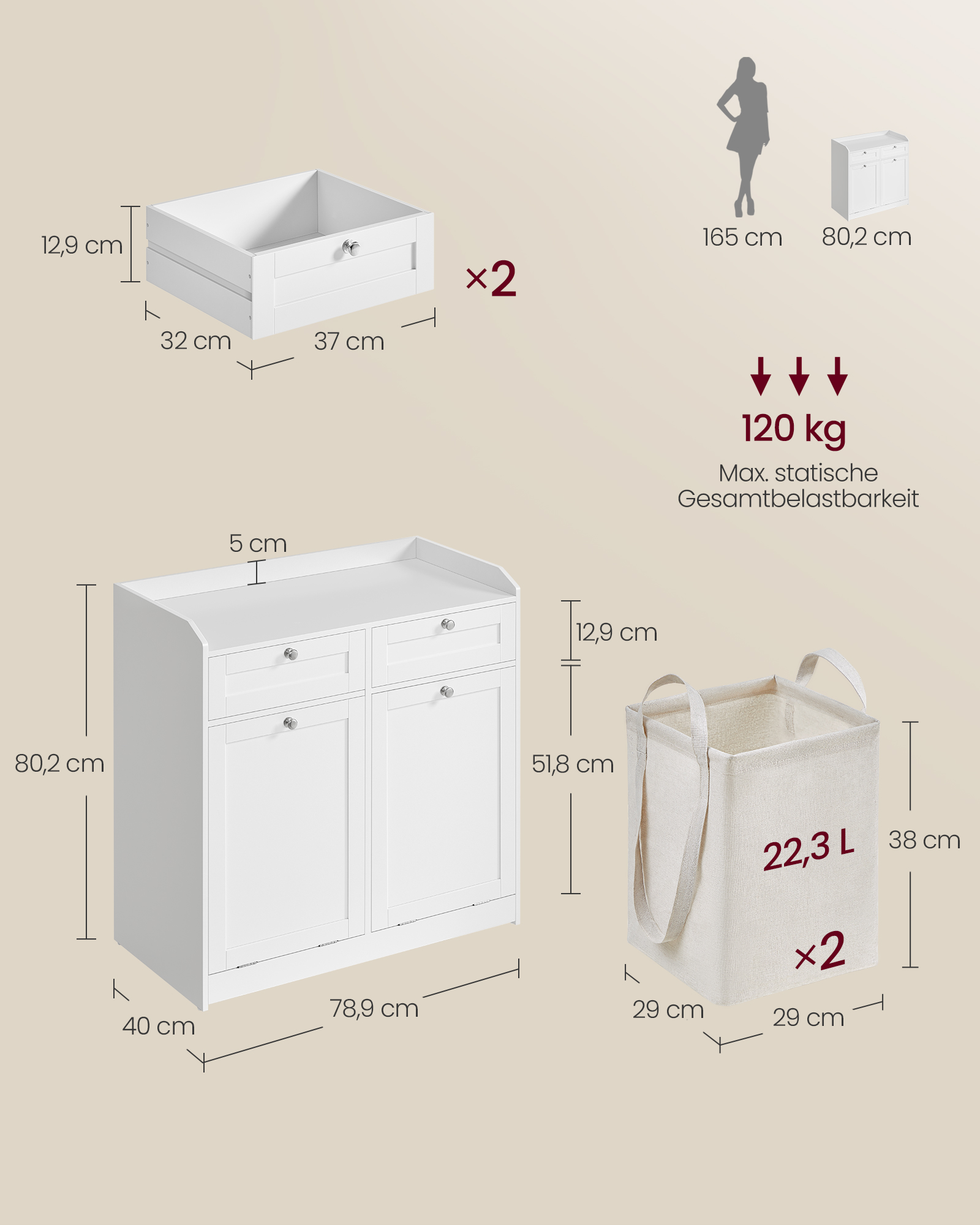 – Pesukorin maks. staattinen kantavuus: 20 kg