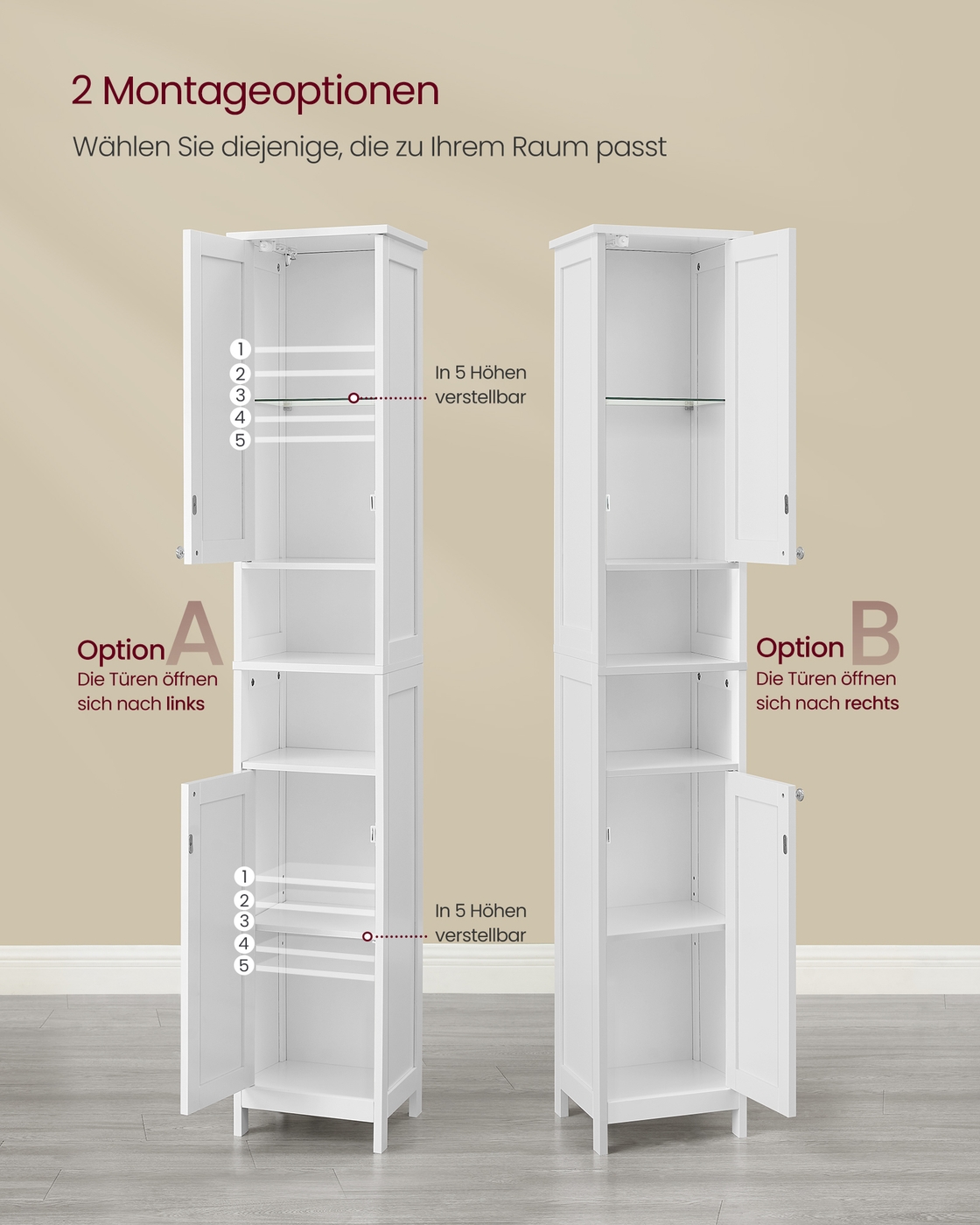 VASAGLE kylpyhuonekaappi valaistuksella, korkea, kapea kylpyhuonekaappi, säilytyskaappi säädettävillä hyllyillä, avoimet lokerot, pieniin tiloihin