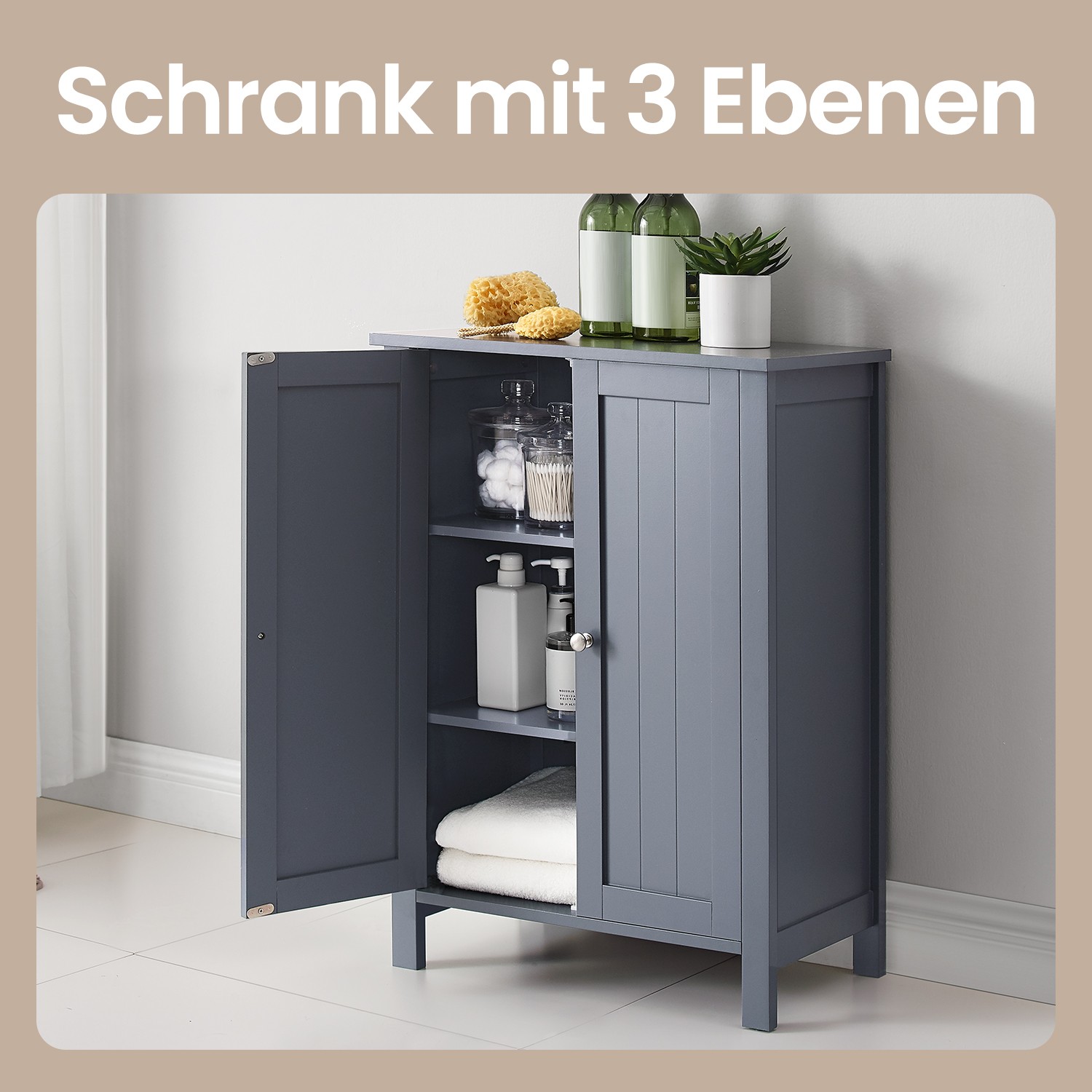 Kuinka saat rauhaa olohuoneeseesi? Tällä pienellä kaapilla! Harmaa väri tuo valoa ja puhtautta olohuoneeseesi. Tämä skandinaavistyylinen kaappi huokuu keveyttä ja herkkyyttä ja luo 100 % virkistävän ilmapiirin. Kuinka pitää kylpyhuone siistinä? Myös tällä kaapilla! Oletko kyllästynyt kammasi piilotteluun? Kompastutko jatkuvasti lattialle pudonneisiin suihkugeelipulloihin? Säilytä kaikki tarvikkeet siististi tässä 2 hyllyllä varustetussa kylpyhuonekaapissa (3 korkeudelle säädettävissä) ja pidä kylpyhuoneesi aina valmiina. Täydellistä! Tuotetiedot: – Väri: harmaa – Materiaali: MDF (keskitiheä kuitulevy) – Koko: 60 x 30 x 80 cm (P x L x K) – Paino: 13 kg Toimitus sisältää:- 1 x kylpyhuonekaappi – 1 x kaatumissuoja – 1 x lisävarustepaketti – 1 x ohjeet (DE, EN, FR, ES, IT) VASAGLE-huomautukset: – Turvallisuussyistä lapset eivät saa kiivetä tuotteen päälle tai leikkiä sillä. – Kiinnitä tämä tuote seinään mukana toimitetulla kaatumissuojalla turvallisen käytön varmistamiseksi.