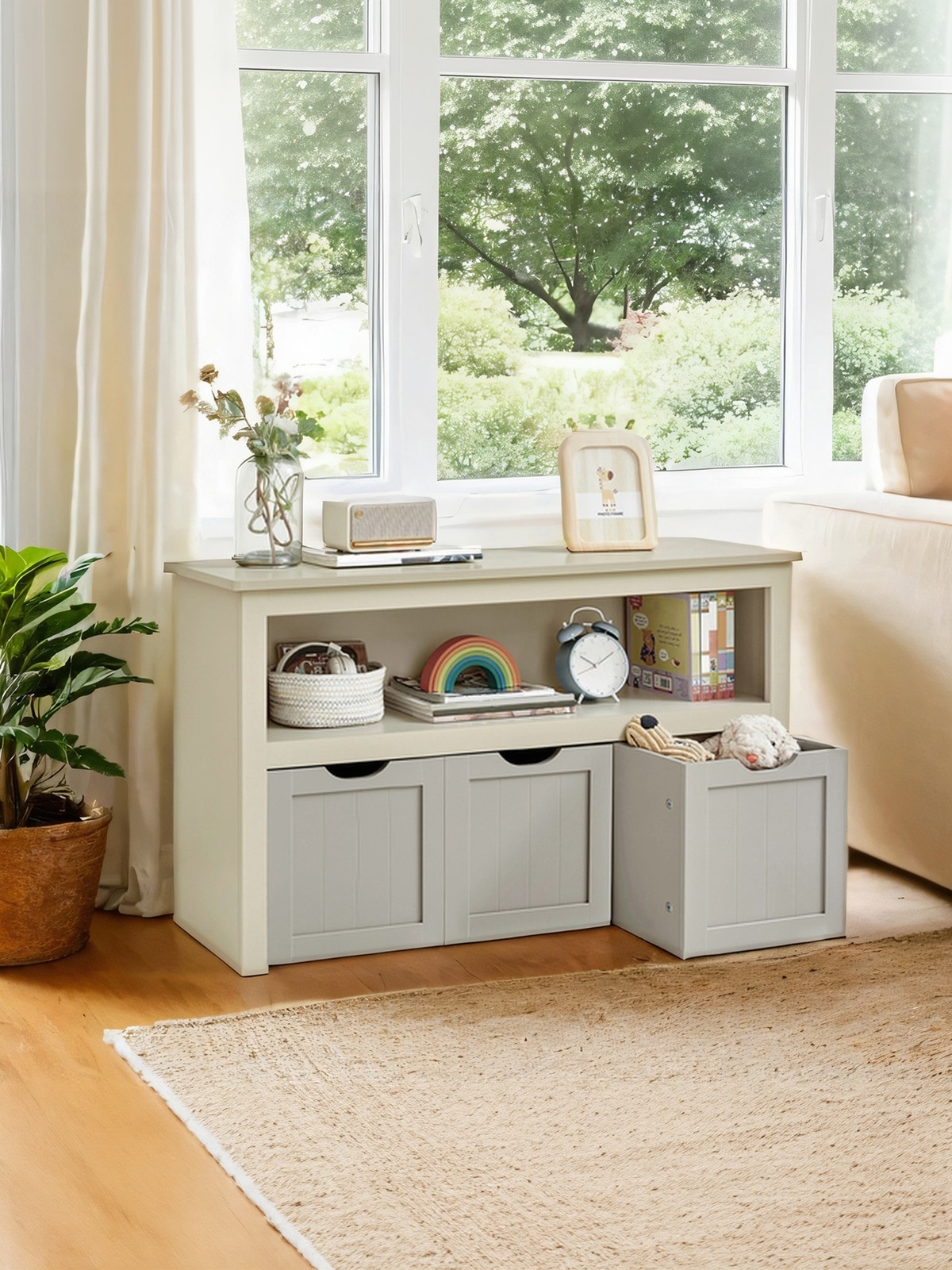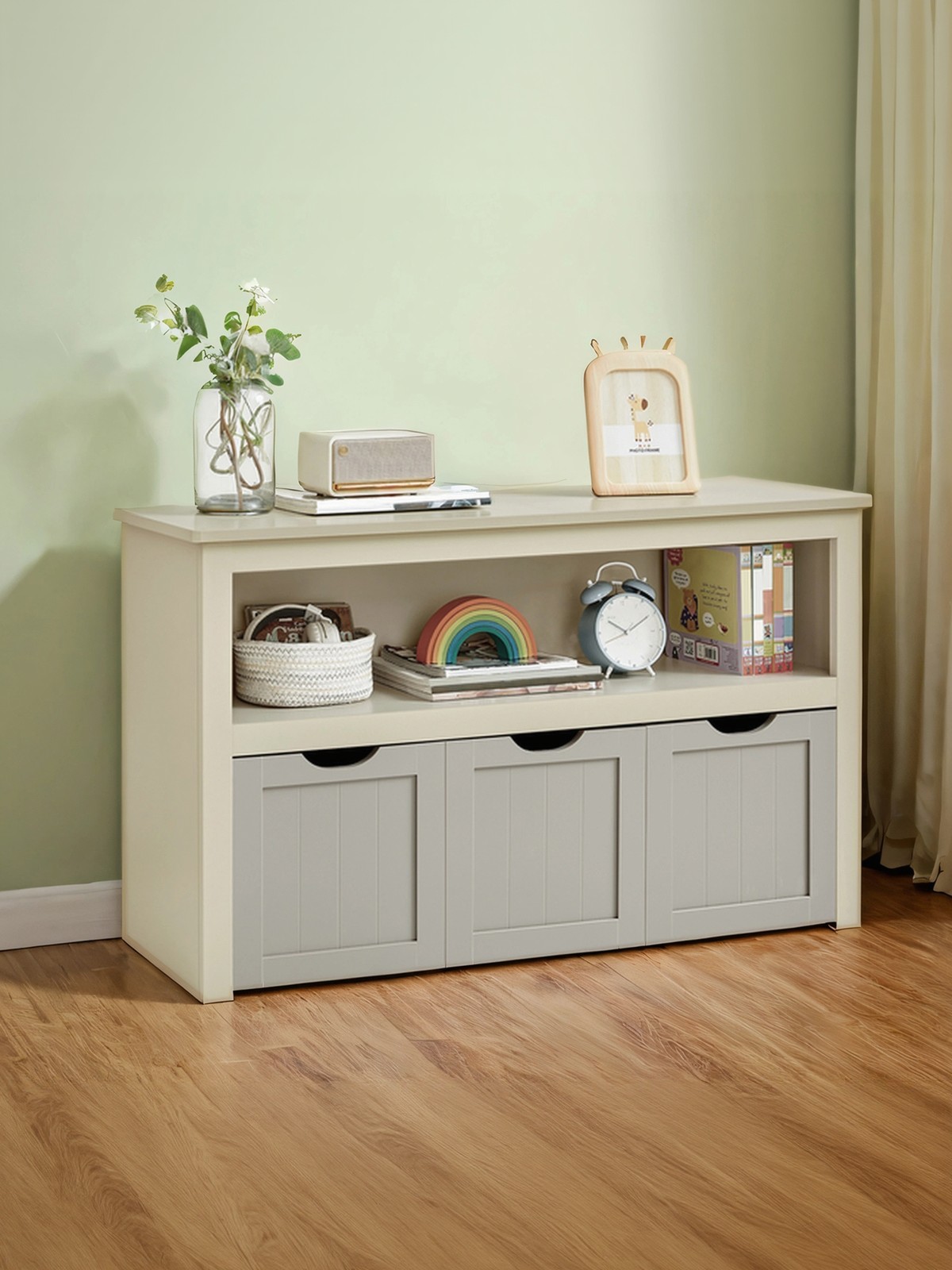 VASAGLE Lasten hylly, lelujen säilytys lastenhuoneeseen, säilytyskaappi, lelukaappi, säilytyslaatikko pyörillä, leluhylly, lastenhuoneeseen, 102 x 30 x 60 cm, valkoinen LHS380W01