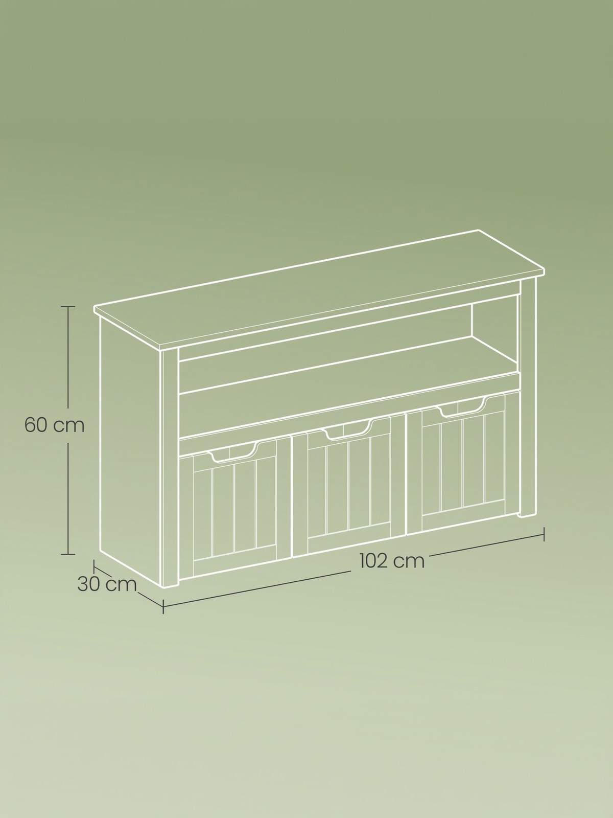 – Mitat: 30 x 102 x 60 cm (S x L x K)