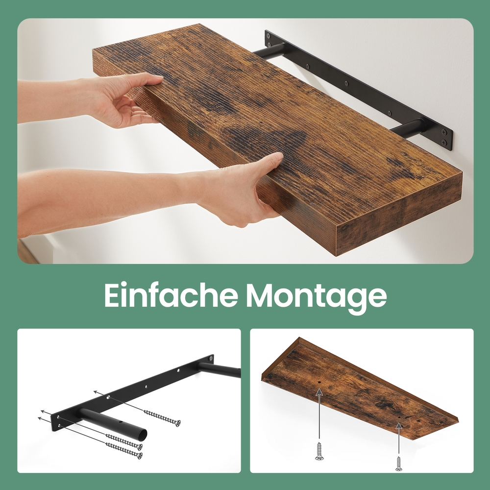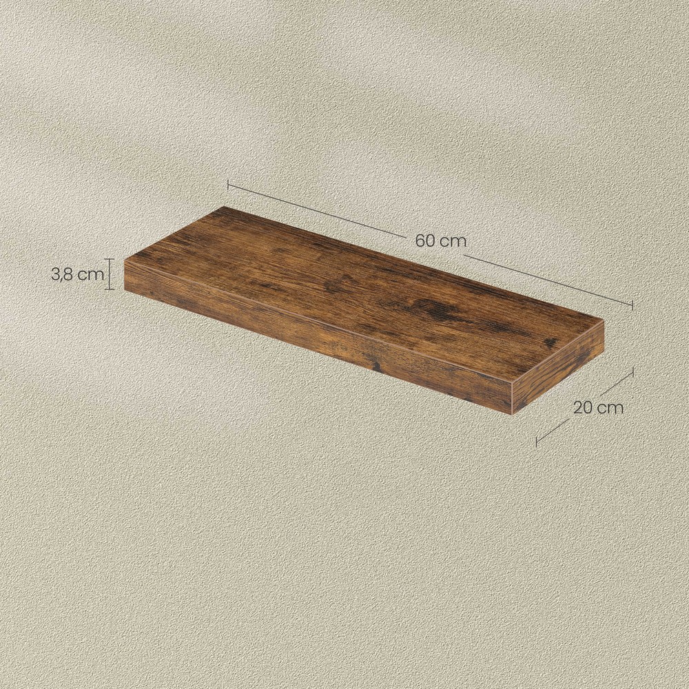 Puuttuuko lattialla säilytystilaa? Katso sitten ylöspäin! Eikö lattialla ole tarpeeksi tilaa kapean hyllyn asettamiseksi? Mihin sitten laitat koriste-esineesi, valokuvakehyksesi, kokoelmasi tai mausteesi? Katso seinille! Käytä rustiikkista ruskeaa hyllyä (60 x 20 x 3,8 cm P/L/K) olohuoneessa perhevalokuvien esillepanoon, kylpyhuoneessa saippuan ja muiden kylpytuotteiden säilytykseen tai keittiössä mausteiden säilytykseen. Kaksi erilaista seinäkiinnikettä Etkö halua ajaa autolla rautakauppaan vain ostamaan muutamia ruuveja, tulppia jne.? Ei hätää, toimitamme mukana erilaisia seinäkiinnikkeitä massiiviseiniin ja kipsilevyseiniin. Näin voit aloittaa tämän seinähyllyn asennuksen heti, kun olet purkanut osat pakkauksesta. Tuotetiedot: – Väri: ruskea – Materiaali: MDF-levyt (E1-luokka), rauta – Mitat: 60 x 20 x 3,8 cm (P x L x K) – Paino: 1,9 kg – Maks. kantavuus (asennettaessa kipsilevyseinään): 10 kg – Maks. kuormituskyky (asennettaessa massiiviseinään): 15 kg Toimitus sisältää: – 1 x seinähylly – 1 x lisävarustepussi – 1 x ohjeet (DE, EN, FR, ES, IT) VASAGLE Huomautukset: – Asenna hylly tarkasti ohjeiden mukaisesti. – Hylly on suositeltavaa asentaa massiiviseinään (kantavuus enintään 15 kg). Kipsilevyseinään asennettuna sen kantavuus on enintään 10 kg. – Älä aseta liian painavia esineitä hyllylle. – Älä altista tuotetta voimakkaalle auringonvalolle tai sijoita sitä kosteaan ympäristöön.