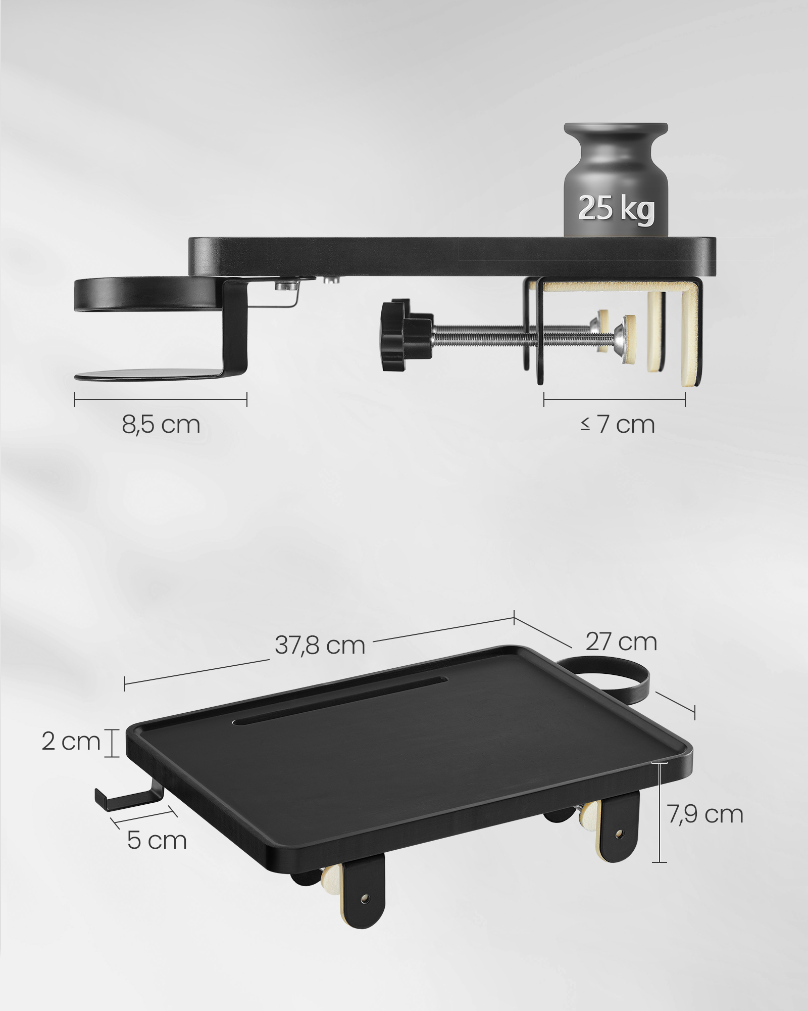 Maks. staattinen kokonaiskuormitus: 25 kg