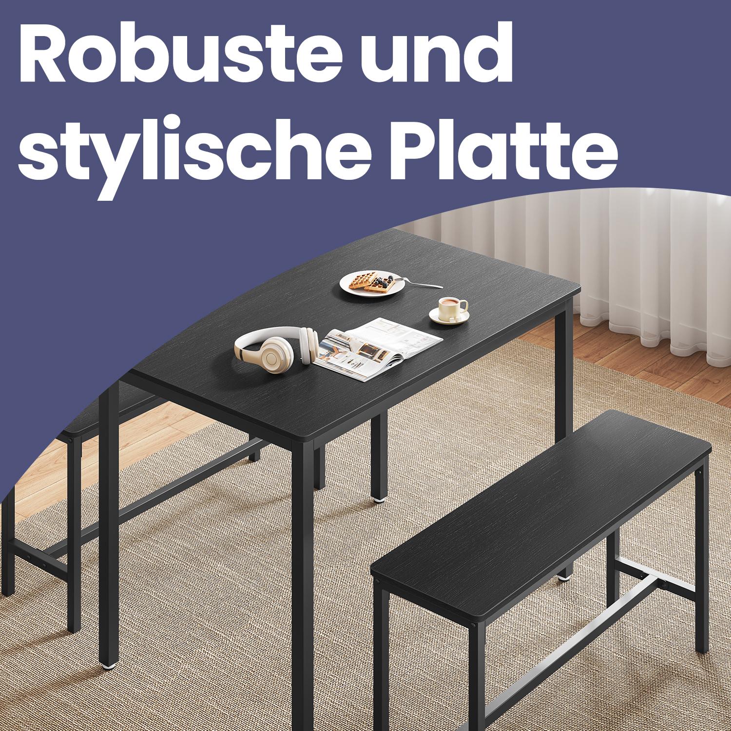 Ruokapöytä 2 penkillä, keittiöpöytä, ruokasalipenkit, teräsrunko, teollinen muotoilu, vintage-ruskea-musta