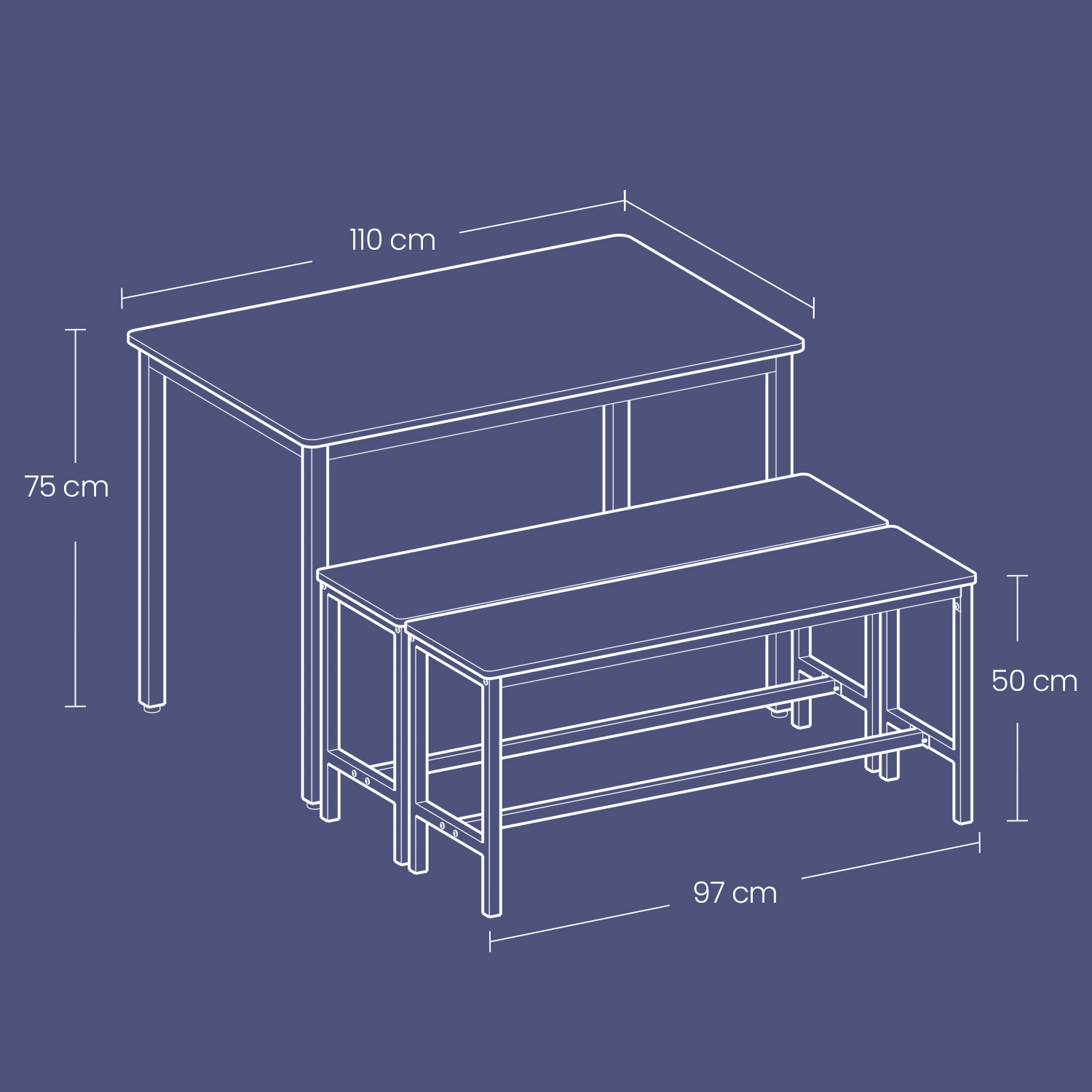 Pöydän koko: 70 x 110 x 75 cm (S x L x K)
