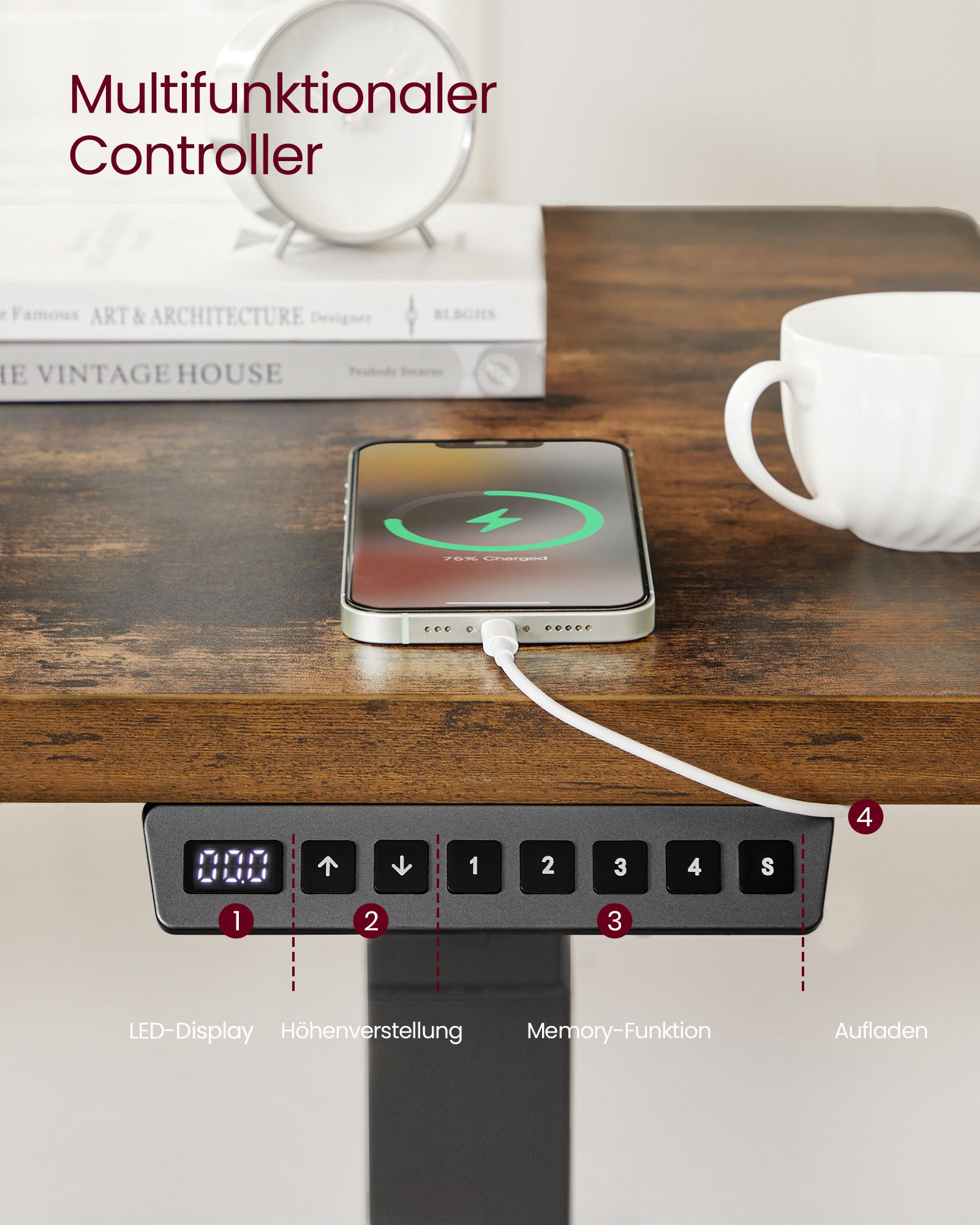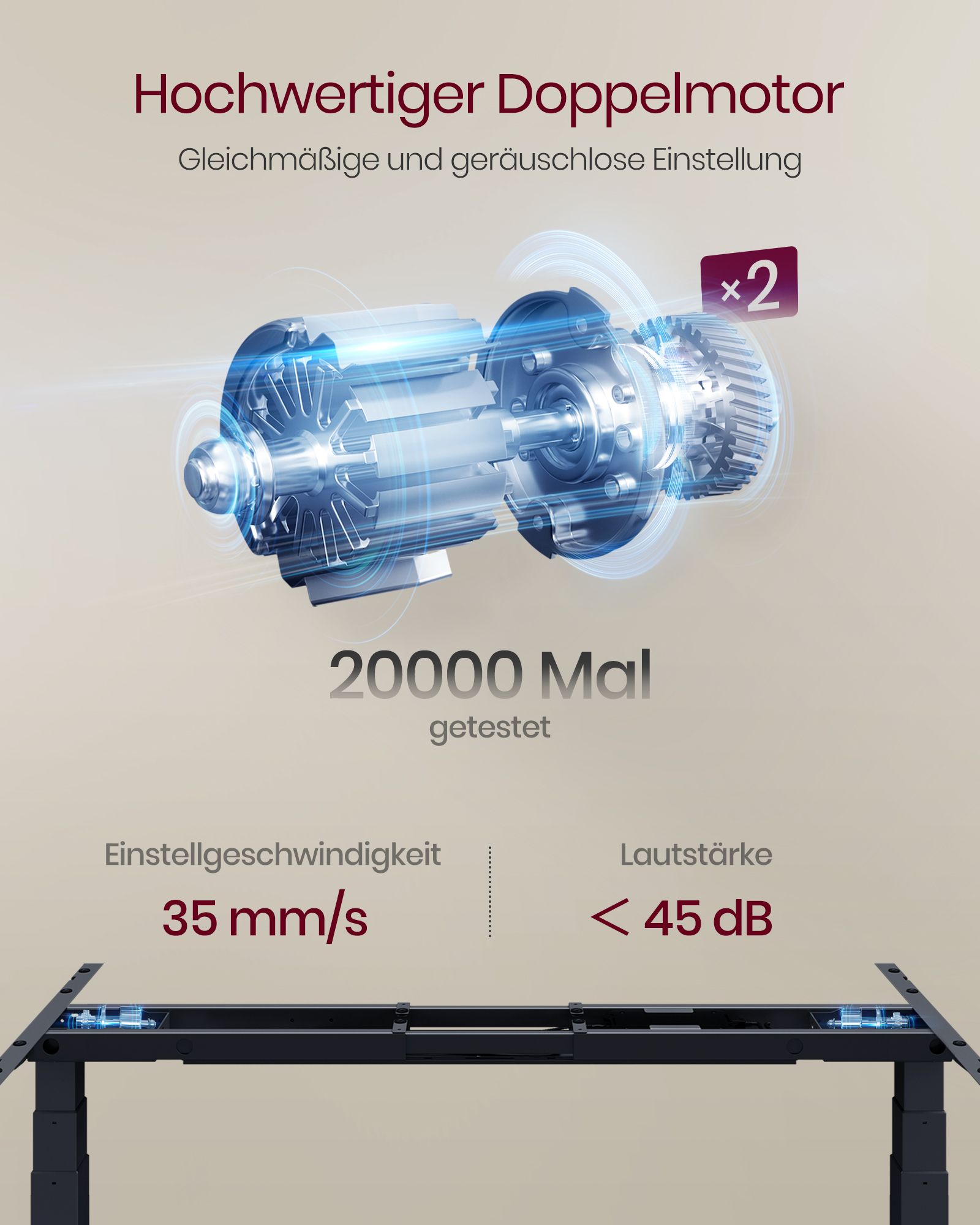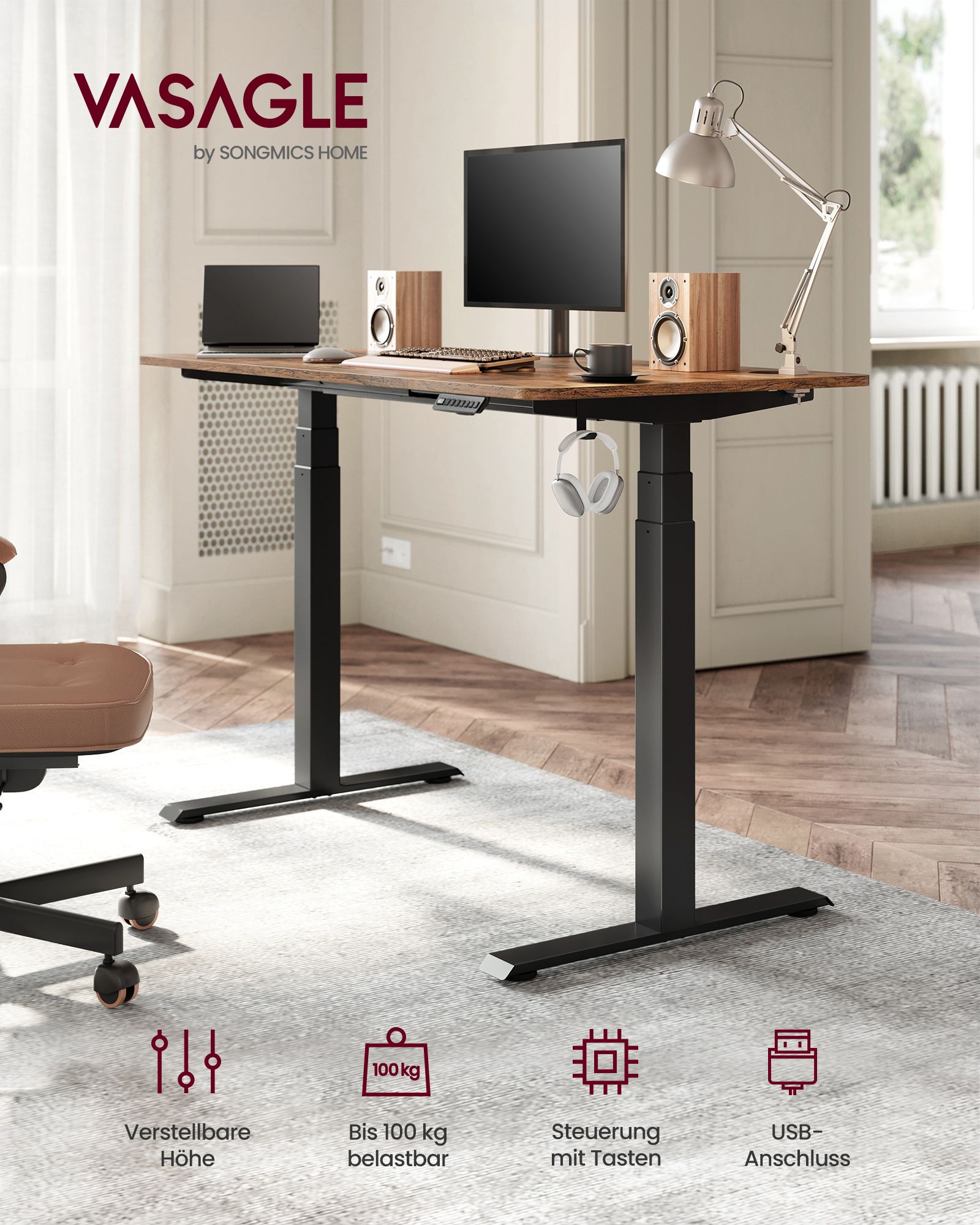 VASAGLE Sähköisesti korkeussäädettävä työpöytä, pöytäjalusta, kaksoismoottori, 3-osaiset teleskooppijalat, muistitoiminto 4 korkeudella, valkoinen LSD020W01