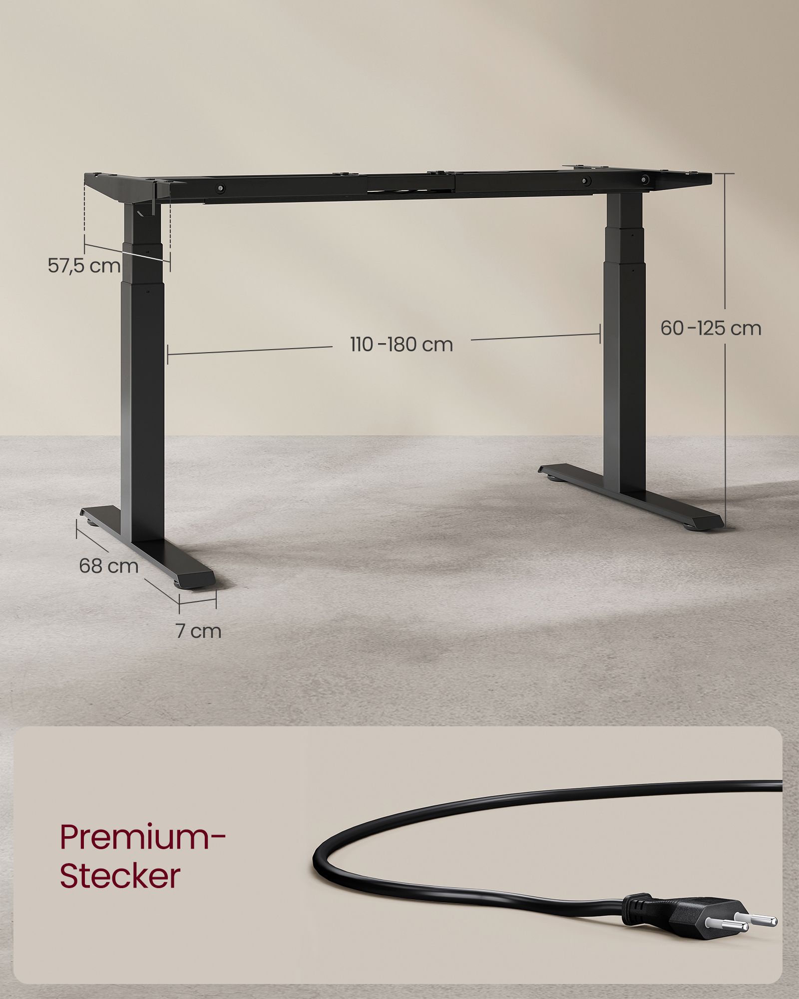 Korkeussäätö (ilman pöytälevyä): 60–125 cm