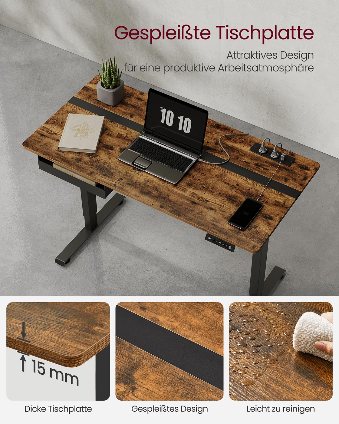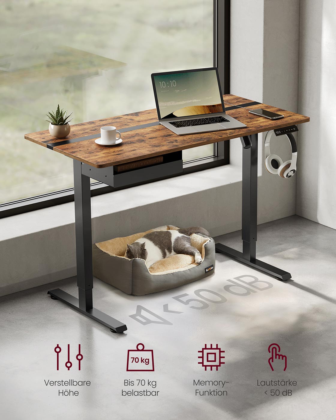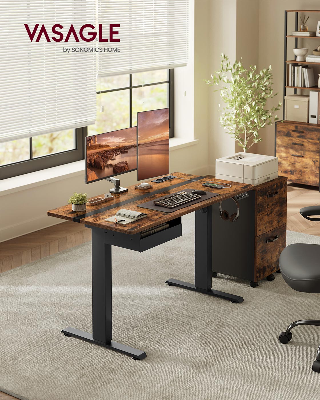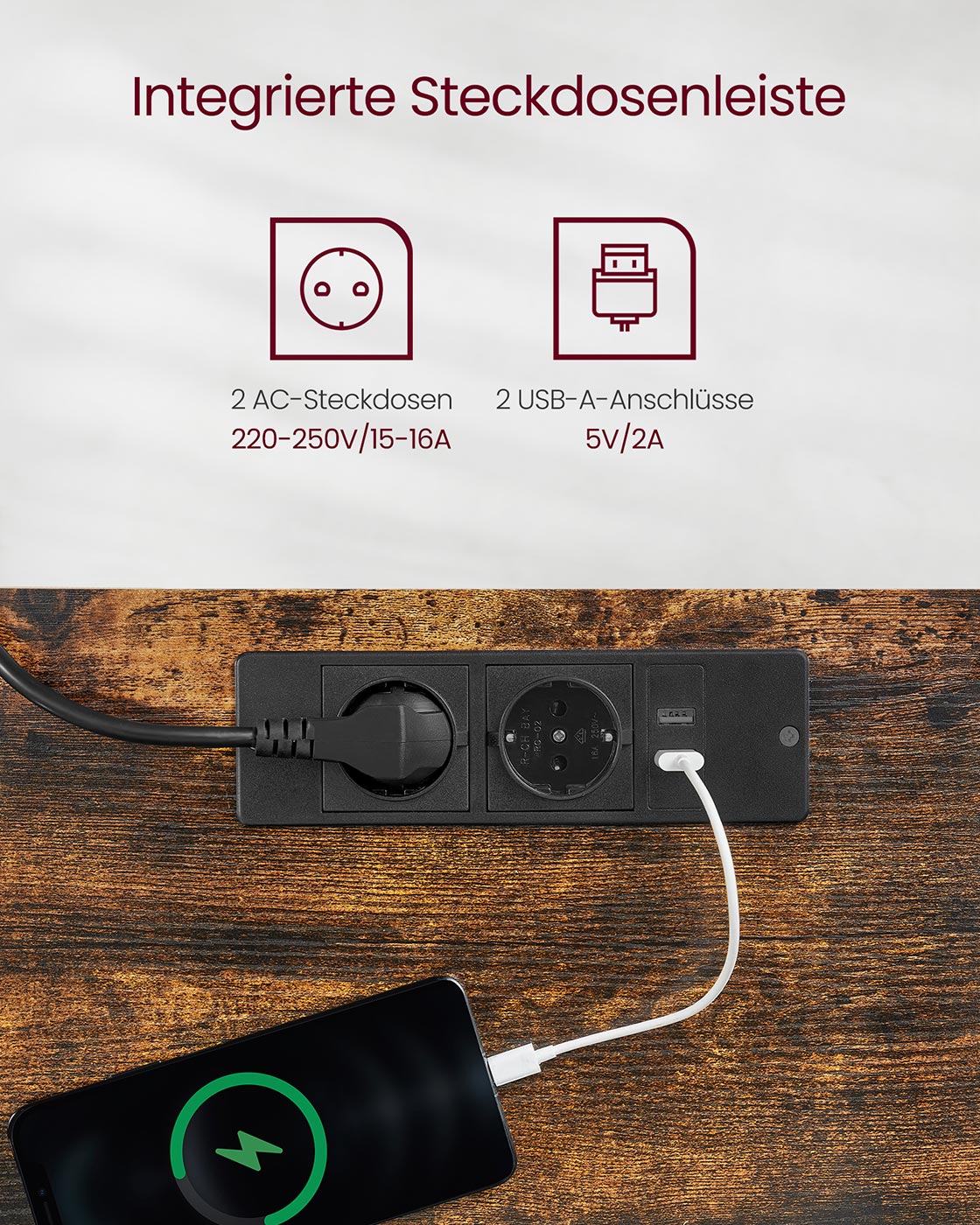 VASAGLE Sähköisesti korkeussäädettävä työpöytä pistorasialla