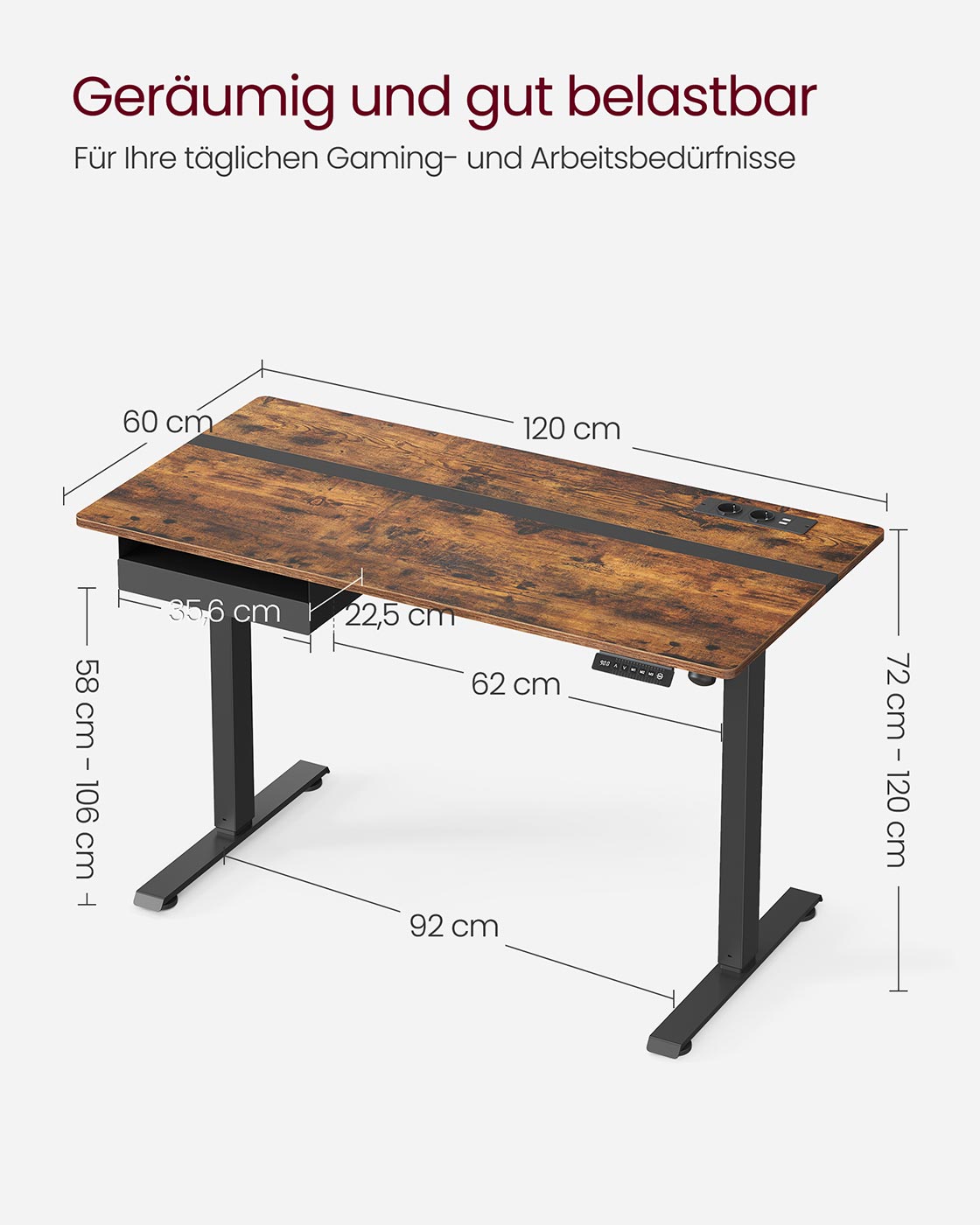 Koko: 60 x 120 x (72-120) cm (S x L x K)
