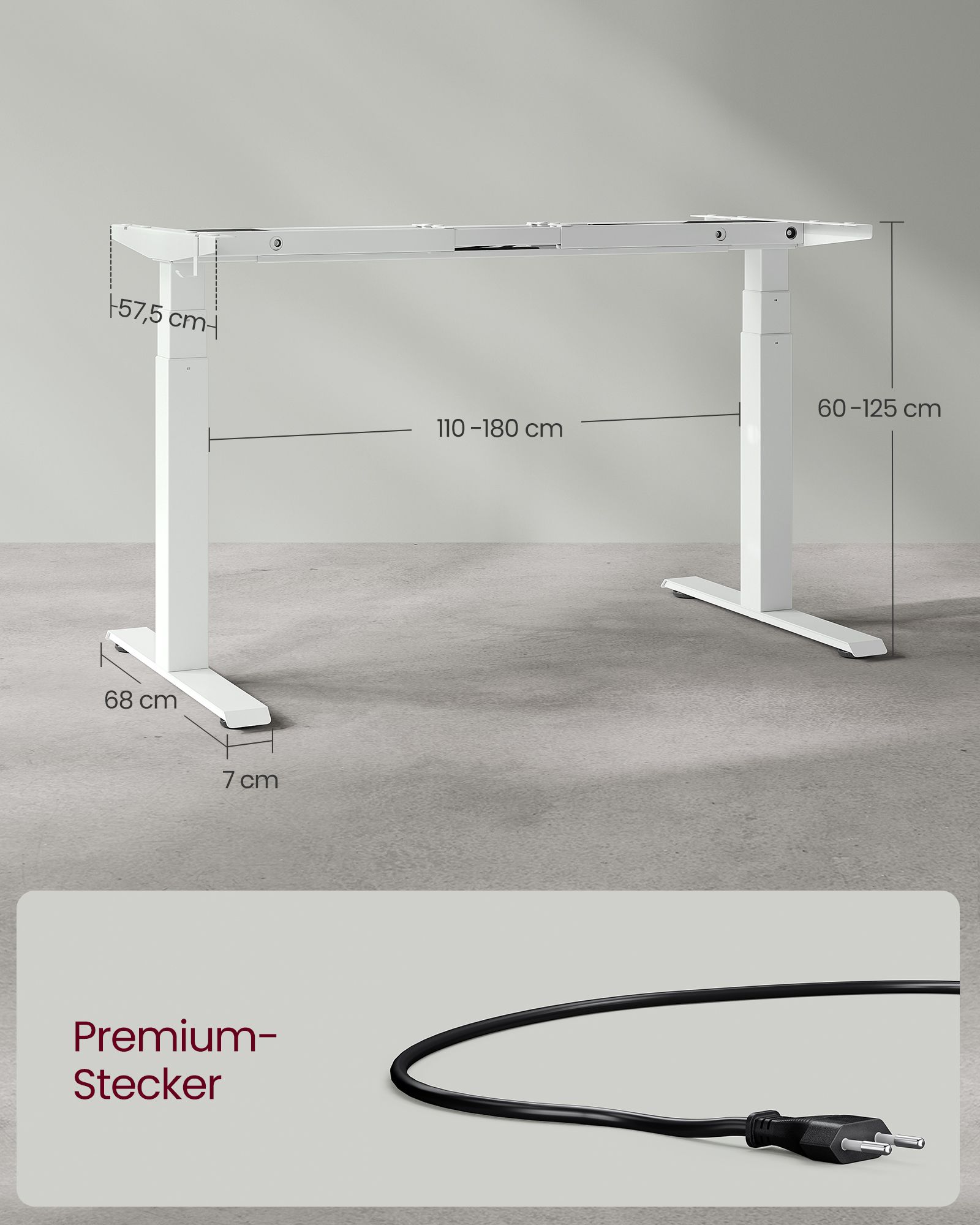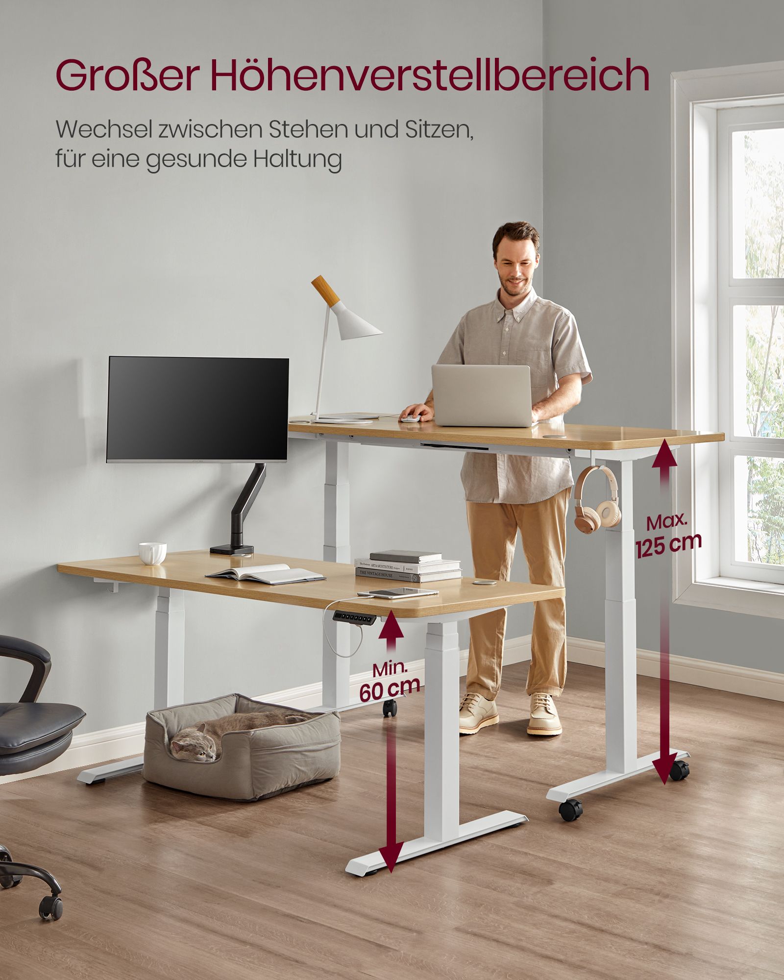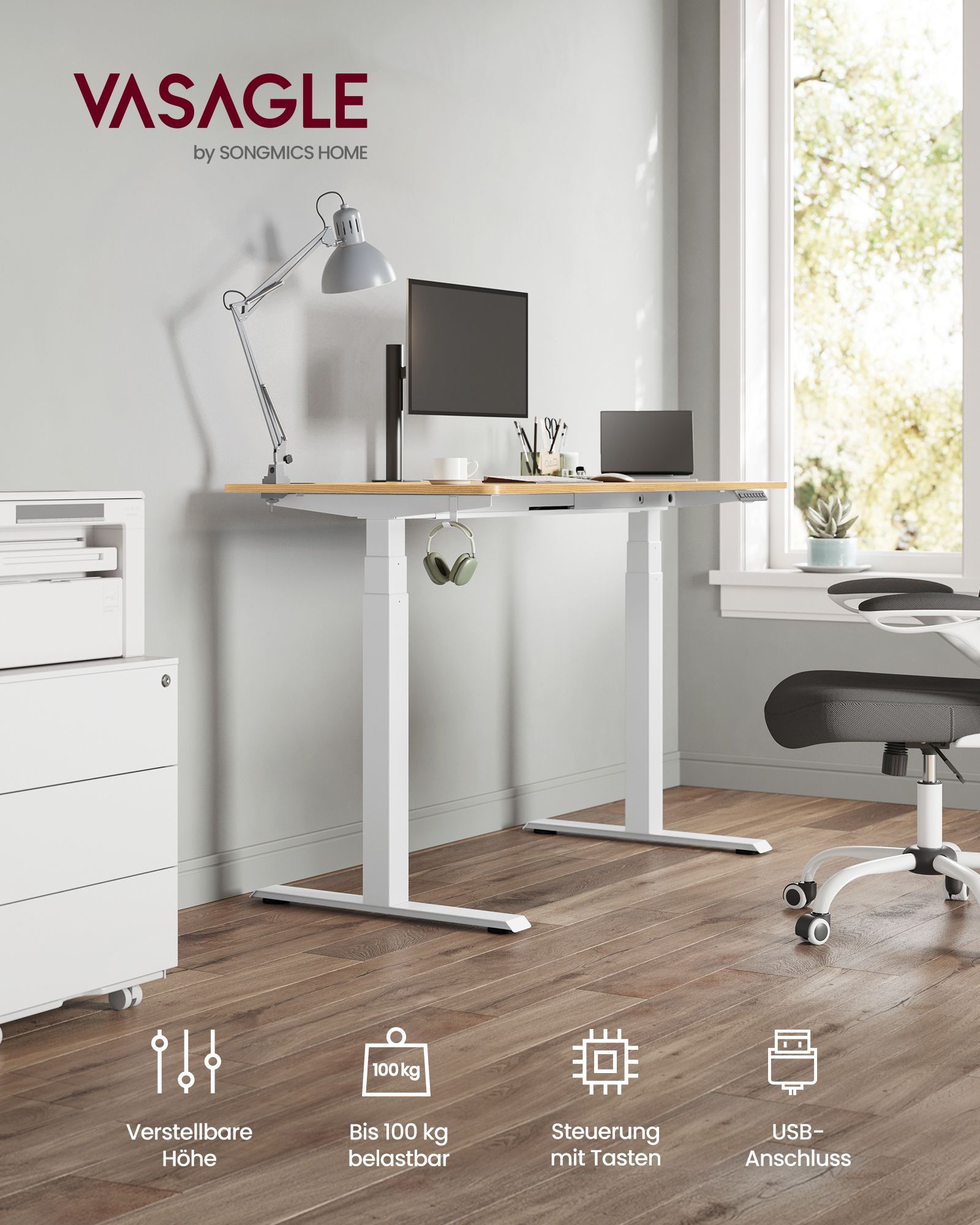 VASAGLE Sähköisesti korkeussäädettävä työpöytä, pöytäjalusta, kaksoismoottori, 3-osaiset teleskooppijalat, muistitoiminto 4 korkeudella, valkoinen LSD020W01