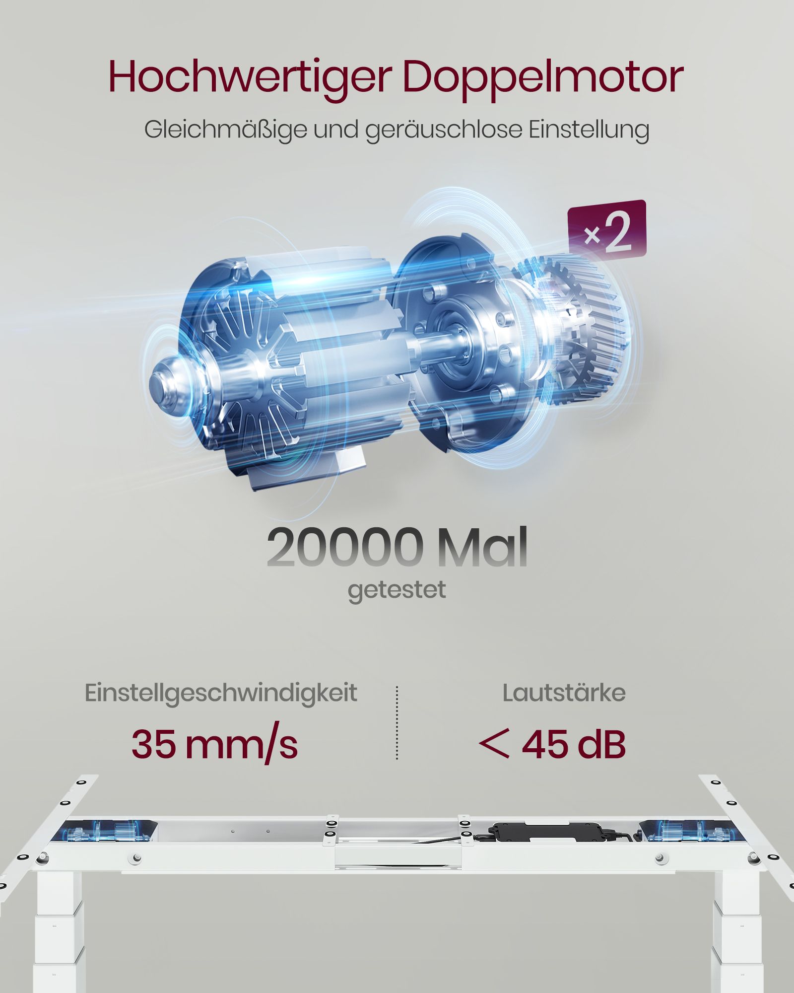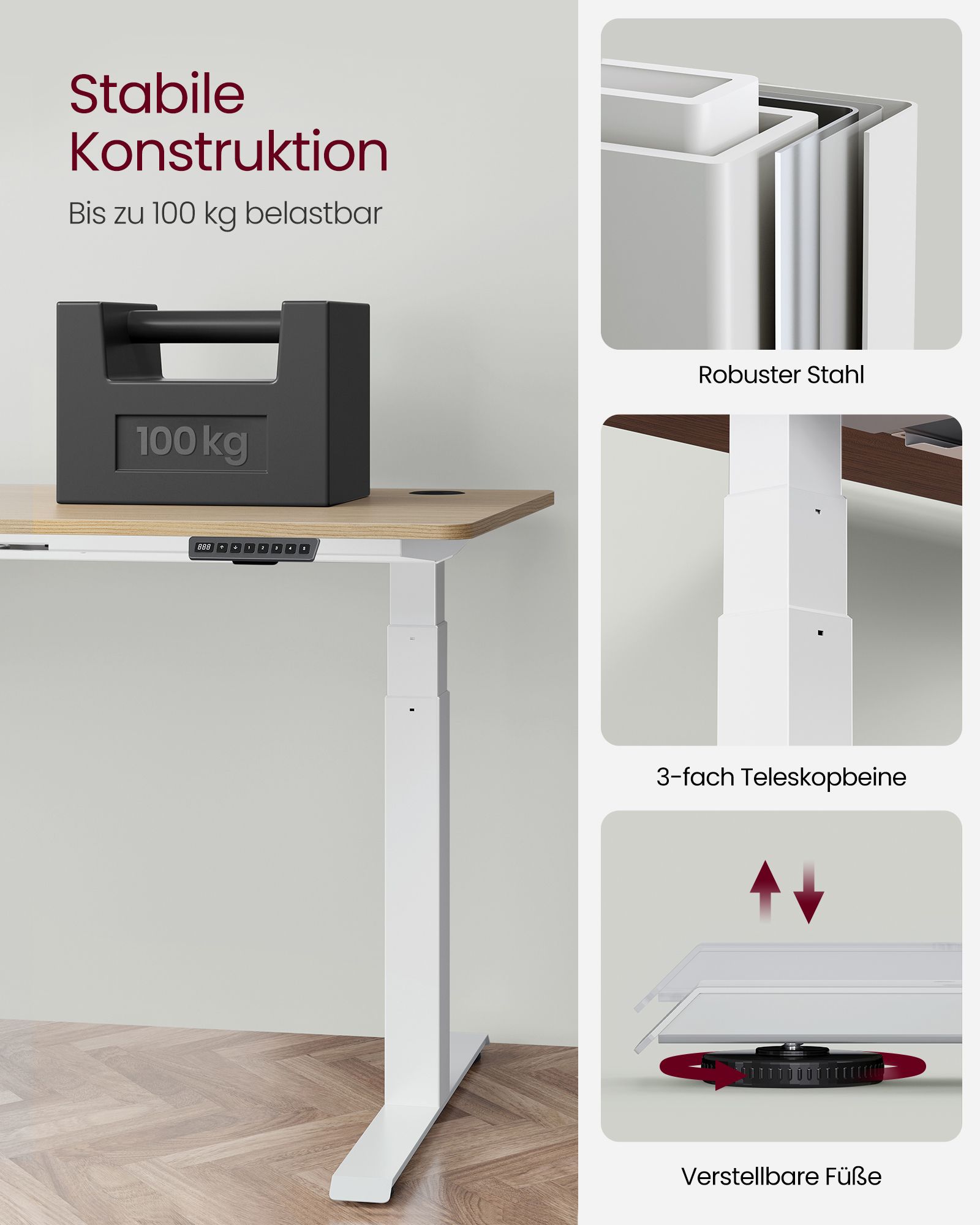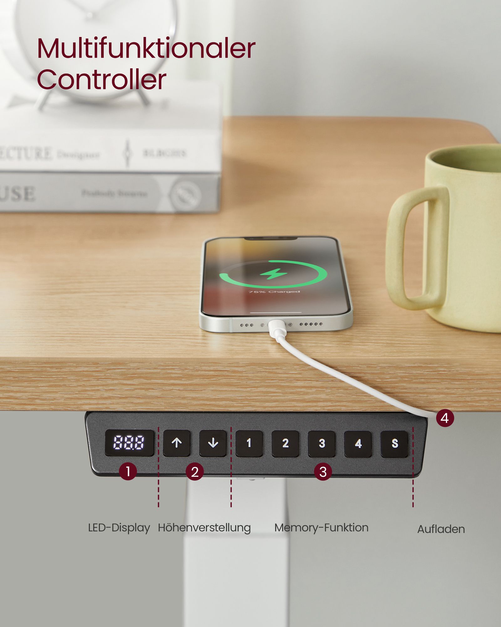VASAGLE Sähköisesti korkeussäädettävä työpöytä, pöytäjalusta, kaksoismoottori, 3-osaiset teleskooppijalat, muistitoiminto 4 korkeudella, valkoinen LSD020W01