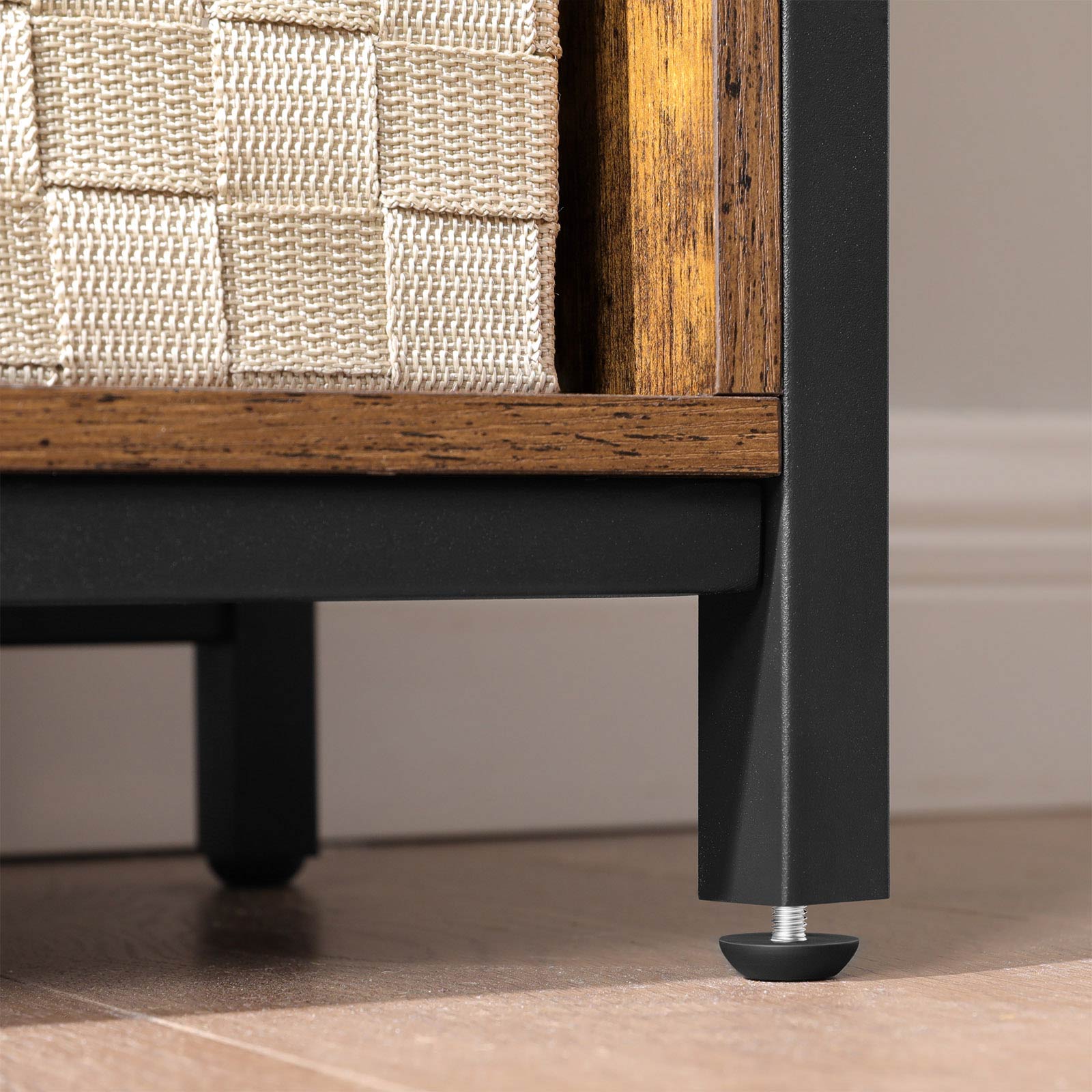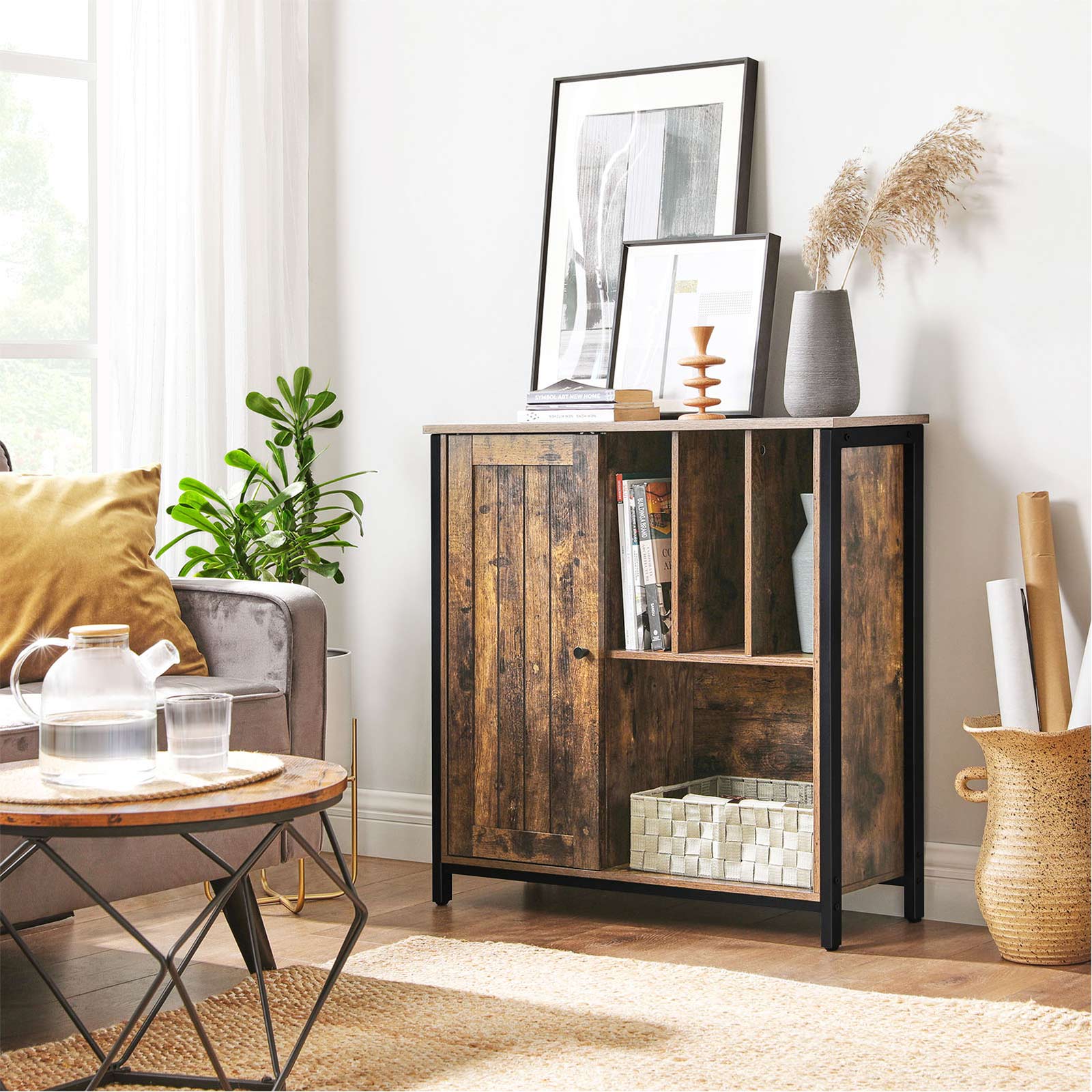 Tuotetiedot: – Väri: vintage-ruskea-musta – Materiaali: lastulevy, teräs – Koko: 80 x 30 x 80,5 cm (P x L x K) – Paino: 20,8 kg – Oven takana olevan hyllytason maks. staattinen kantavuus: 15 kg – Avoimen hyllytason maks. staattinen kantavuus: 20 kg – Pinnan maks. staattinen kantavuus: 30 kg Toimitus sisältää: – 1 x senkki – 1 x lisävarustepaketti – 1 x kaatumissuoja – 1 x ohjeet (DE, EN, ES, FR, IT) VASAGLE Huomautukset: – Turvallisuussyistä lapset eivät saa kiivetä tuotteelle tai leikkiä sillä. – Kiinnitä tämä tuote seinään mukana toimitetulla kaatumissuojalla kaatumisen estämiseksi.