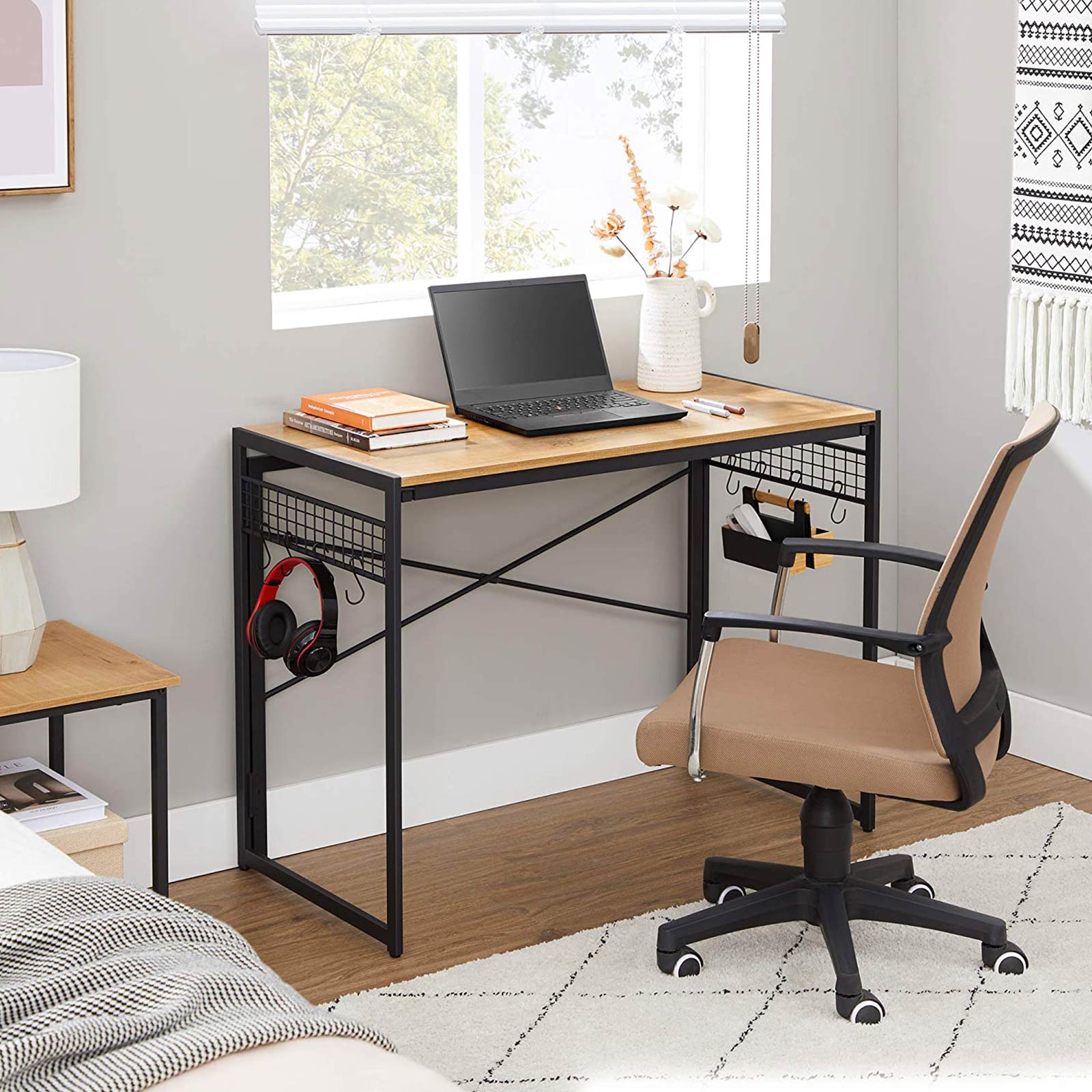 VASAGLE Taitettava kirjoituspöytä, 8 koukkua