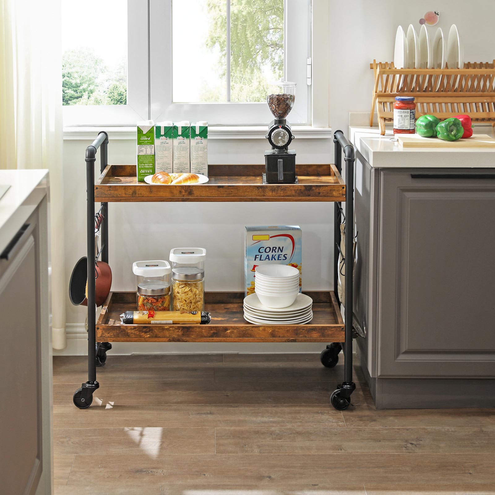 VASAGLE tarjoiluvaunu 2 hyllyä vintage-ruskea