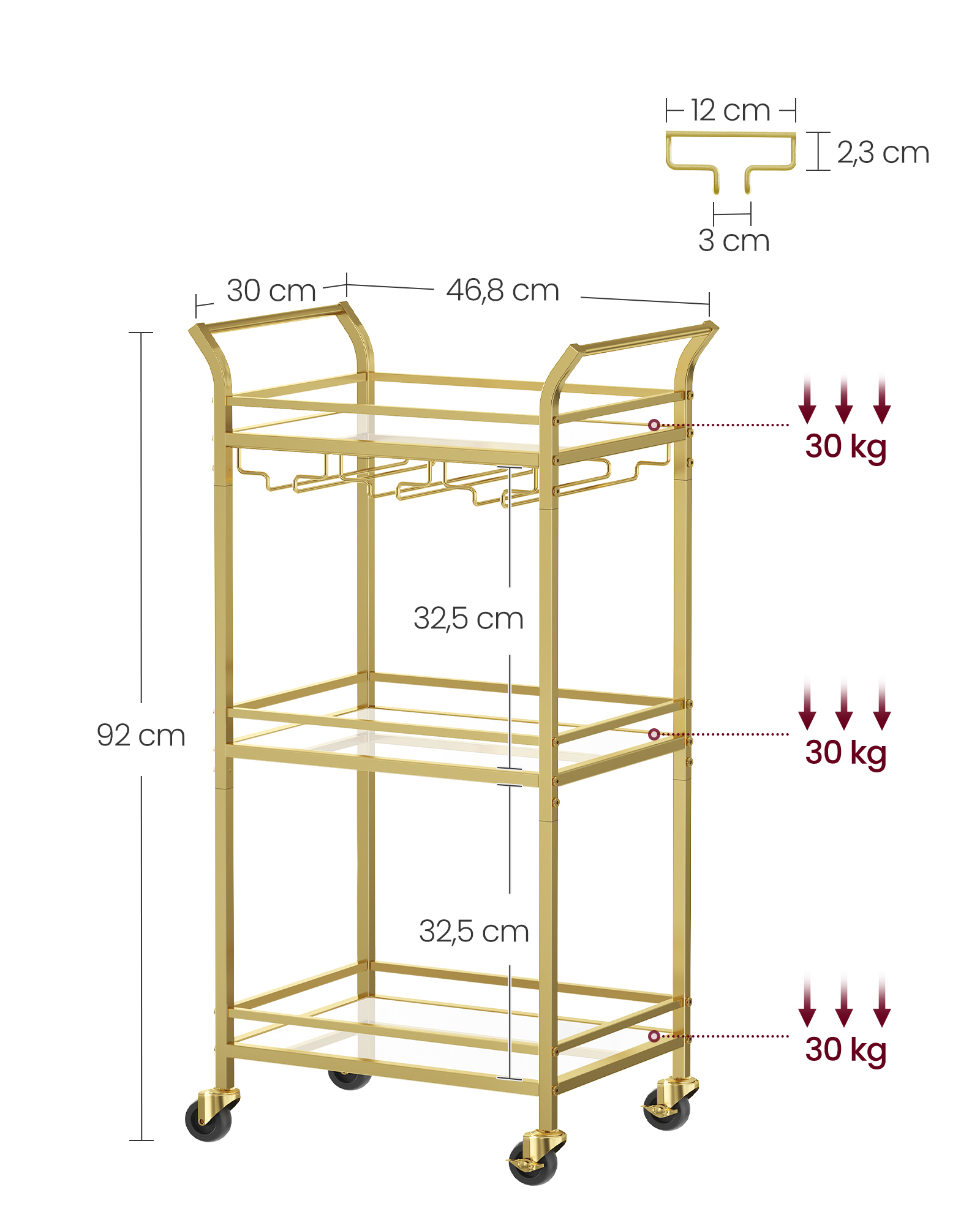 Koko: 30 x 46,8 x 92 cm (S x L x K)