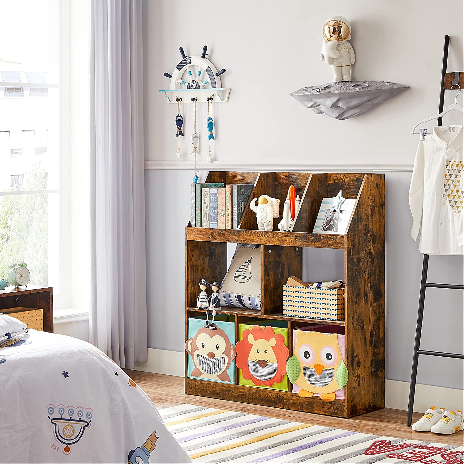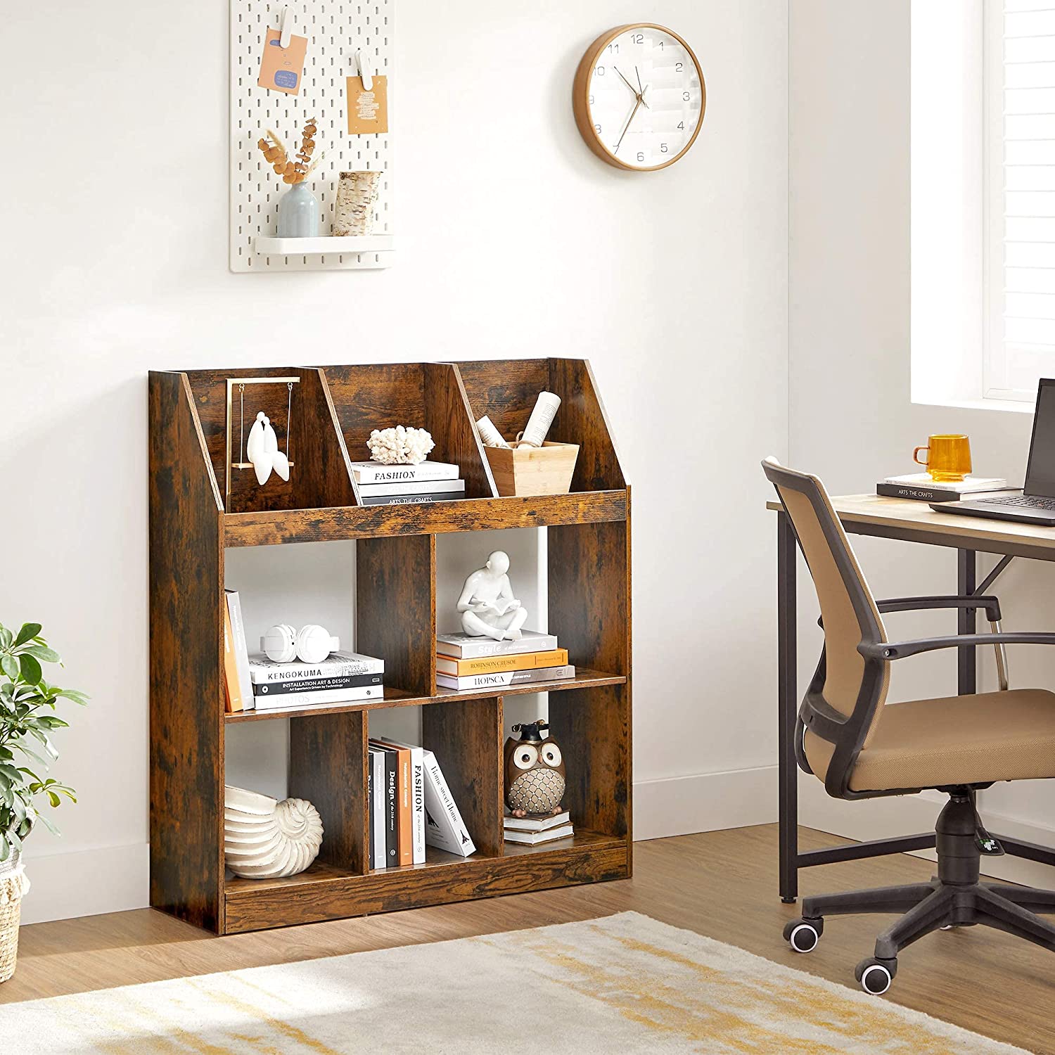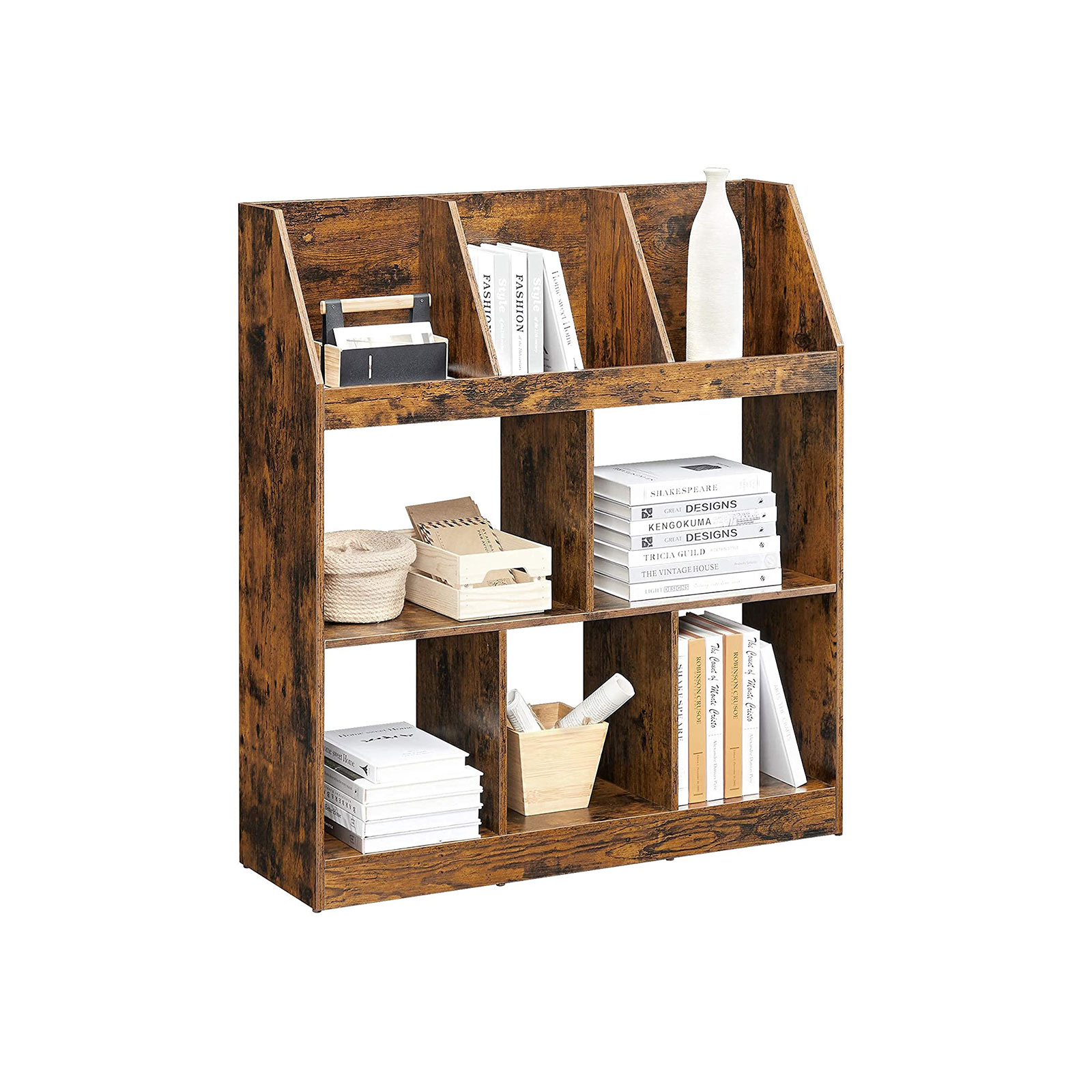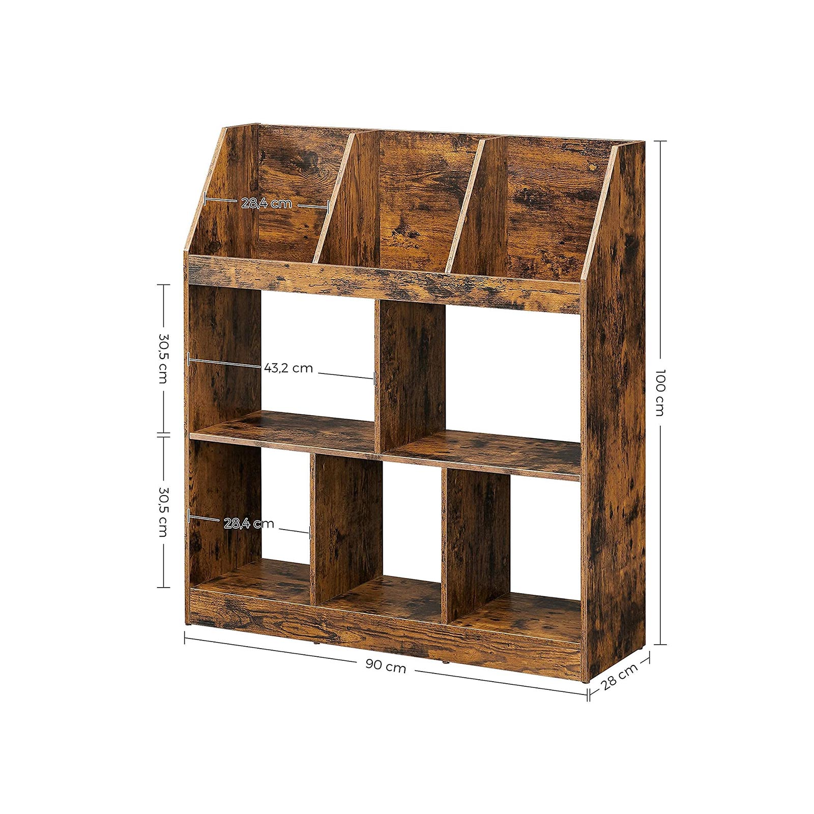 Tuotetiedot: – Väri: vintage-ruskea – Materiaali: lastulevy – Koko: 90 x 28 x 100 cm (P x L x K) – Paino: 17 kg – Maks. staattinen kokonaiskuormitus: 40 kg Toimitus sisältää:- 1 x kirjahylly – 1 x lisävarustepaketti – 1 x ohjeet (DE, FR, EN, ES, IT) VASAGLE Huomautukset: – Turvallisuussyistä lapset eivät saa kiivetä tuotteelle tai leikkiä sillä. – Kiinnitä tämä tuote seinään mukana toimitetulla kaatumissuojalla turvallisen käytön varmistamiseksi.