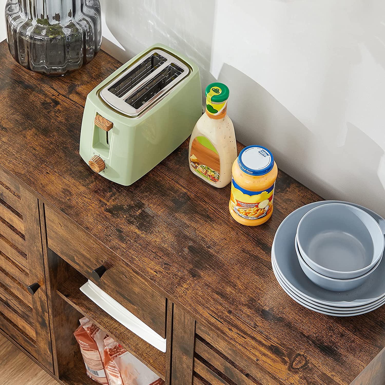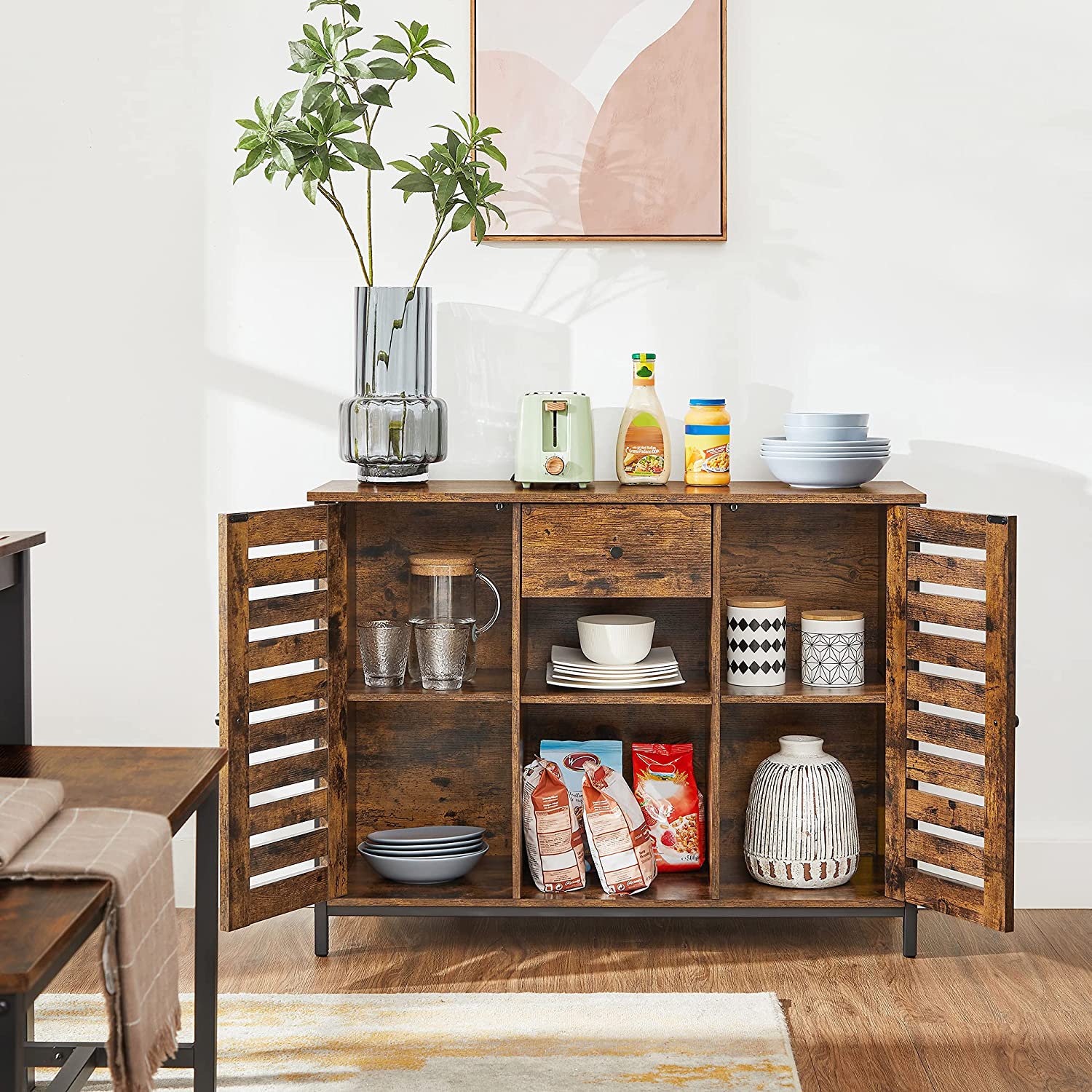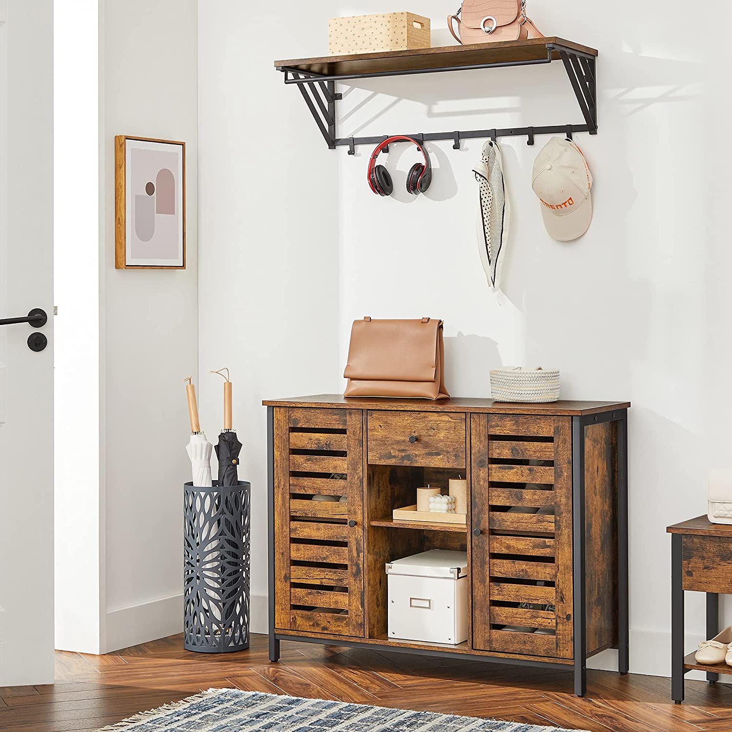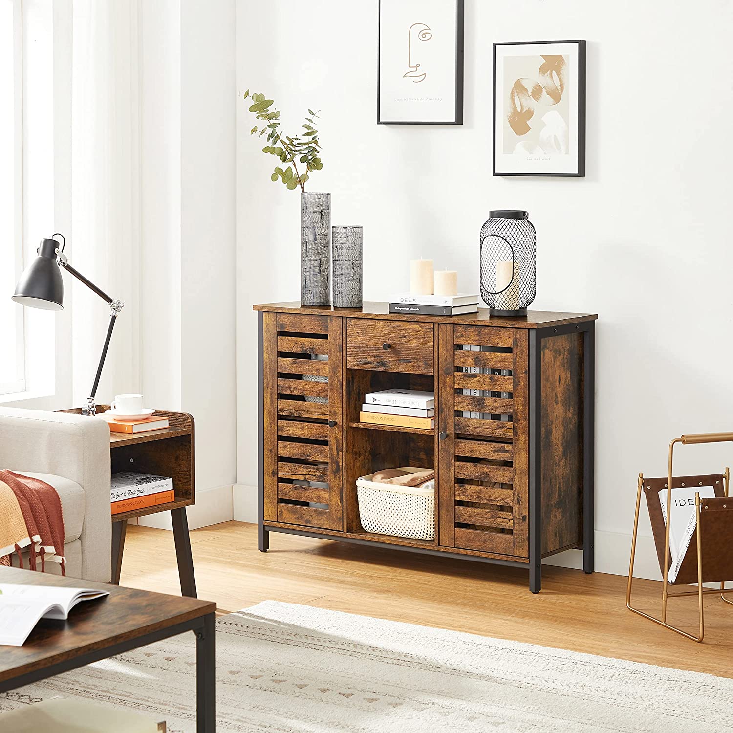 Tuotetiedot: – Väri: vintage-ruskea-musta – Materiaali: lastulevy, teräs – Koko: 100 x 35 x 75 cm (P x L x K) – Paino: 27,1 kg – Pinnan maks. staattinen kantavuus: 30 kg – Laatikon maks. staattinen kantavuus: 5 kg – Hyllyn maks. staattinen kantavuus: 10 kg Toimitus sisältää: – 1 x sivupöytä – 1 x lisävarustepaketti – 1 x ohjeet VASAGLE Huomautukset:- Turvallisuussyistä lapset eivät saa kiivetä tuotteen päälle tai leikkiä sillä.