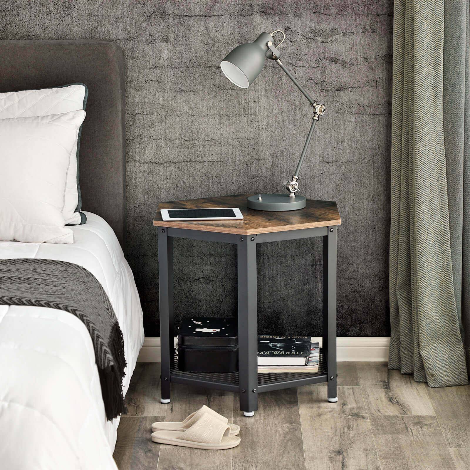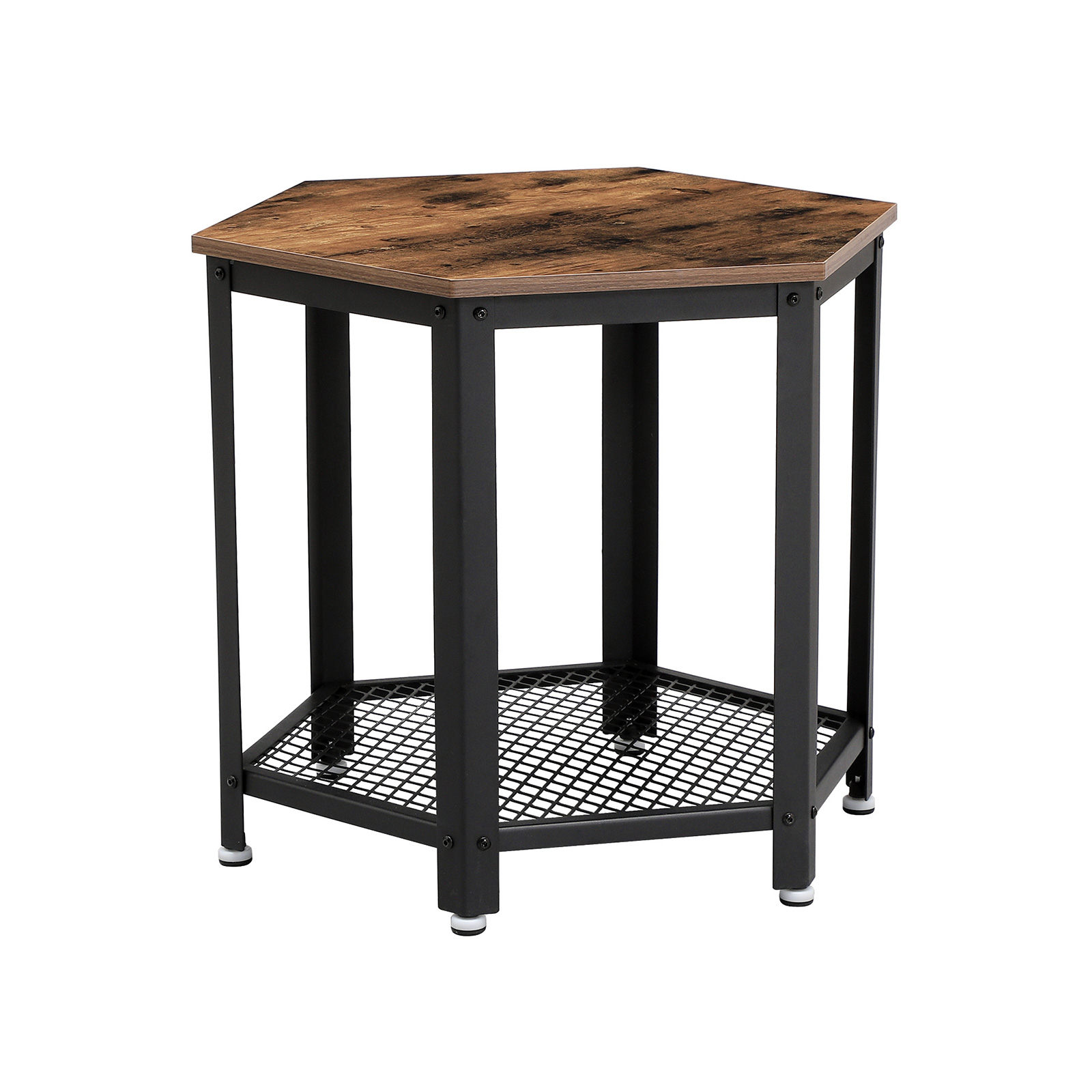 VASAGLE – se on mielikuvituksellinen yhdistelmä toiminnallisuutta, kestävyyttä ja tyylikkäitä vintage-malleja. Jos haluat antaa huoneillesi yksilöllisen ilmeen ja antiikkisen sävyn, tällä huonekalusarjalla voit saavuttaa vaikuttavia tuloksia. Pieni pöytä, suuri vaikutus Tämän sivupöydän tyylikäs vintage-design ja kompaktit mitat 55 x 55 x 55 cm (L x K x S) varmistavat, että huonekalu sopii hyvin mihin tahansa. Käytä puun näköistä pöytätasoa ja rautaisaa ritilähyllyä esimerkiksi sängyn vieressä silmälasien säilyttämiseen, yöpöydän lampun asettamiseen tai nenäliinapakkauksen säilyttämiseen. Tai ehkä pidät siitä, että voit asettaa välipaloja ja juomia sohvapöydälle sohvan viereen ja rentoutua perheen kanssa television ääressä? Riippumatta siitä, mitä suunnitelmia sinulla on, VASAGLE:n vintage-huonekalujen avulla voit toteuttaa sisustussuunnitelmasi helposti! Tuotetiedot: – Väri: vintage – Materiaali: rautakehys, puulevy (paksuus: 15 mm) – Mitat: 55 x 55 x 55 cm (L x K x S) – Paino: 9,4 kg – Pöytälevyn enimmäiskuormitus: 30 kg – Hyllyn enimmäiskuormitus: 10 kg Toimitus sisältää: – 1 x sivupöytä – 1 x lisävarustepussi – 1 x ohjeet Pöytälevyn enimmäiskuormitus: 30 kg – Hyllylevyn enimmäiskuormitus: 10 kg Toimitus sisältää: – 1 x sivupöytä – 1 x lisävarustepussi – 1 x ohjeet (DE, EN, FR, ES, IT) VASAGLE Huomautukset: – Tuote on tarkoitettu vain sisäkäyttöön. Aseta se kuivaan ympäristöön. – Pöytälevyn enimmäiskuormitus on 30 kg, ritilähyllyn 10 kg. Älä aseta sitä raskaampia esineitä pöydälle.