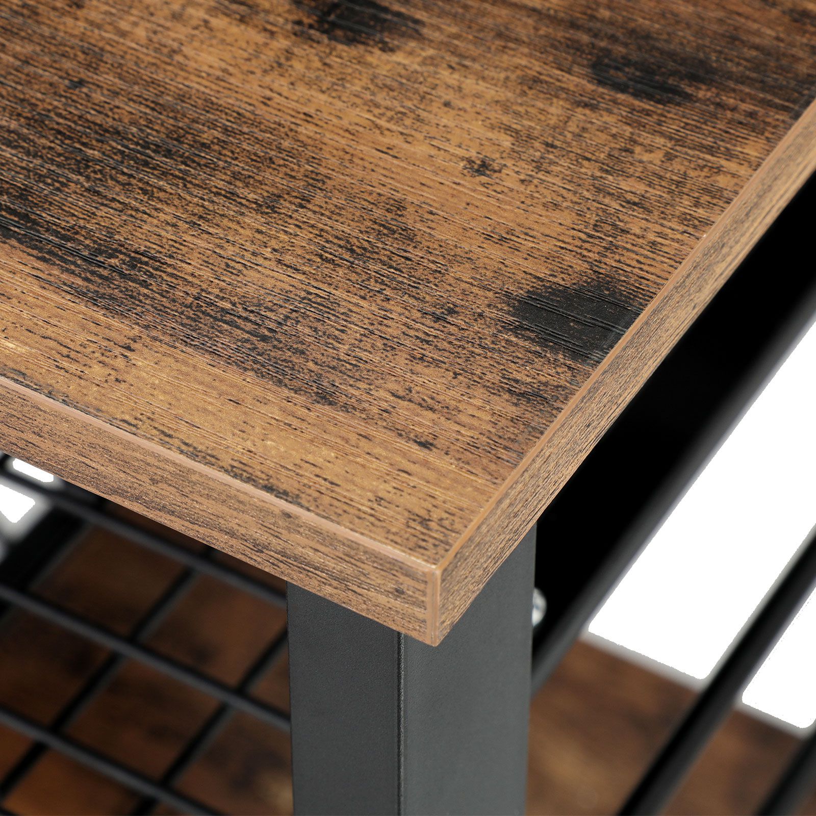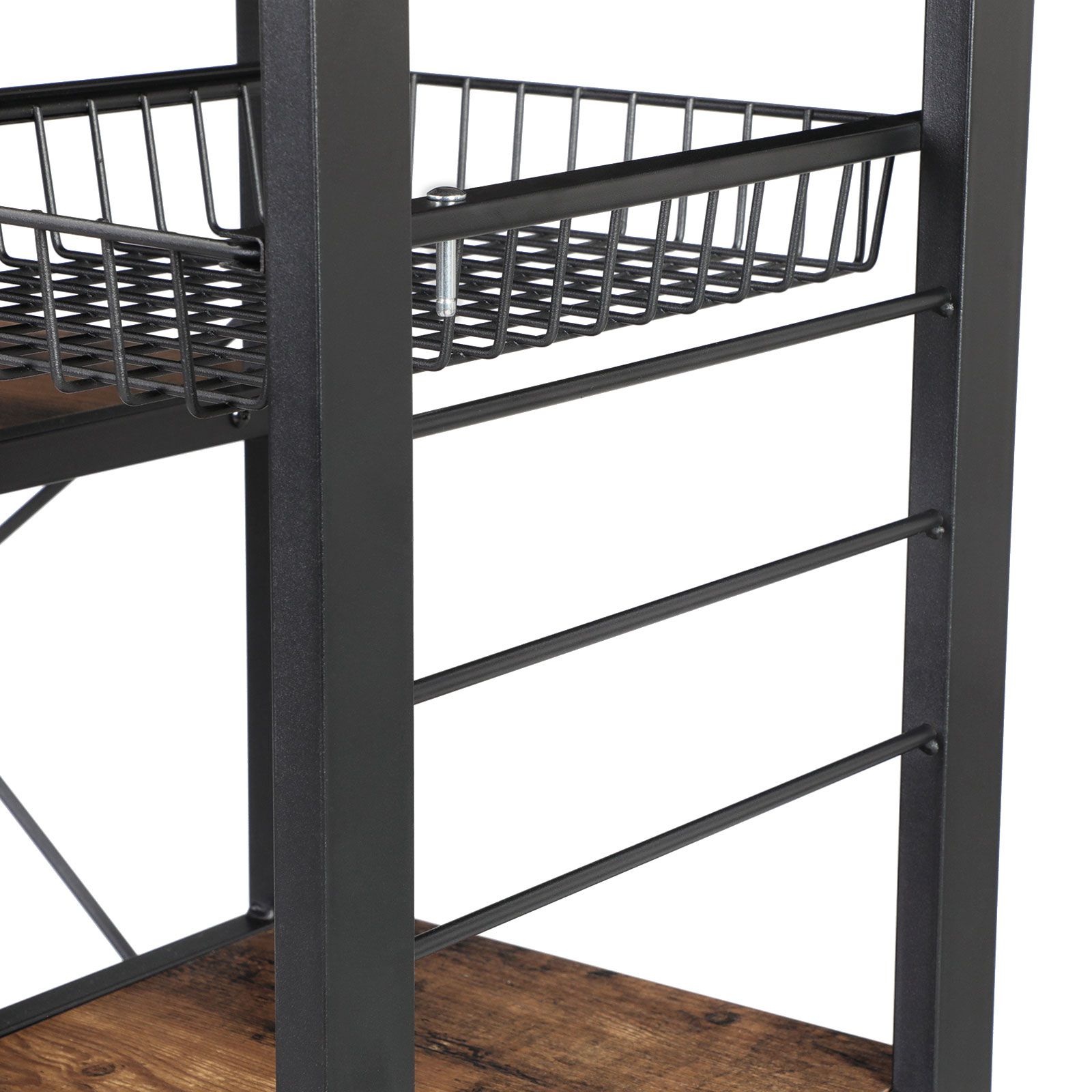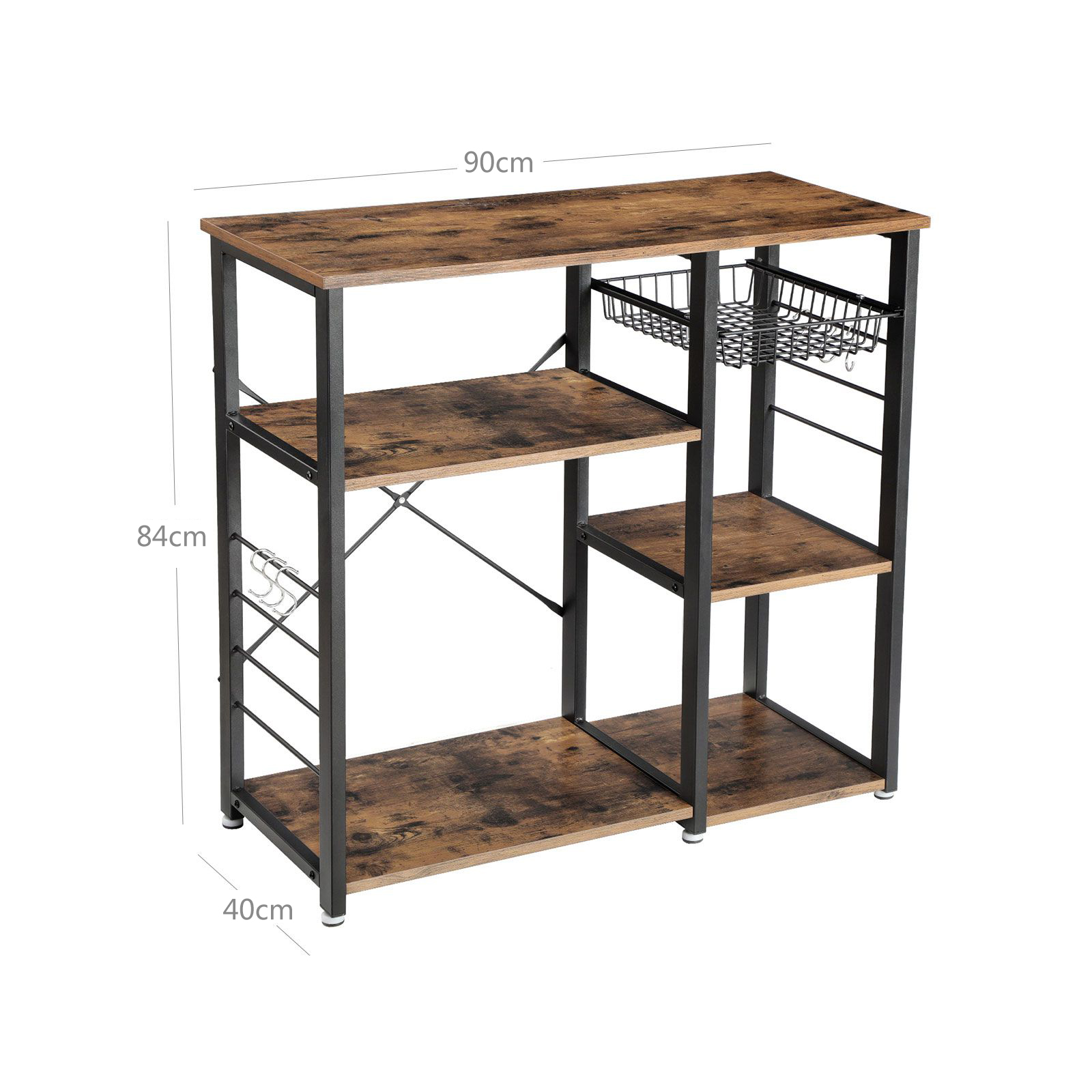 Tuotekuvaus: Uuden VASAGLE-brändimme trendikkään vintage-tyylisen keittiöhyllyn avulla voit luoda juuri sen, mitä suunnittelijat ovat ajatelleet: välimerellisen tunnelman omassa kodissasi. Tehokas keittiöapulainen Tämän keittiöhyllyn tyylikäs ulkonäkö saattaa hämätä siitä, että se kestää uskomatonta kyllä jopa 80 kg:n painon. Eri hyllyille mahtuu siis myös keittokirjoja, raskaampia keittiökoneita, kuten mikroaaltouuni, tai pinoja kattiloita ja pannuja. Mikroaaltouuni, miniuuni, mausteet Viidelle eri korkeudelle sijoitellulle hyllylle, ulosvedettävään metallikoriin ja kuudelle S-muotoiselle koukulle mahtuu erilaisia keittiökoneita, reseptejä, mausteita, pastapakkauksia tai kuivausliinoja. Kompakti huonekalu on siis todellinen monitaituri – se ei vain osaa vielä lentää. Tuotetiedot: – Väri: vintage-ruskea-musta – Materiaali: lastulevy, teräs – Koko: 90 x 40 x 84 cm (P x L x K) – Paino: 19,22 kg – Maks. staattinen kokonaiskuormitus: 80 kg Toimitus sisältää: – 1 x keittiöhylly – 1 x lisävarustepussi – 1 x ohjeet (DE, EN, FR, ES, IT) SONGMICS Huomautukset: – Hygieniasyistä vältä elintarvikkeiden suoraa kosketusta metallikorin kanssa.