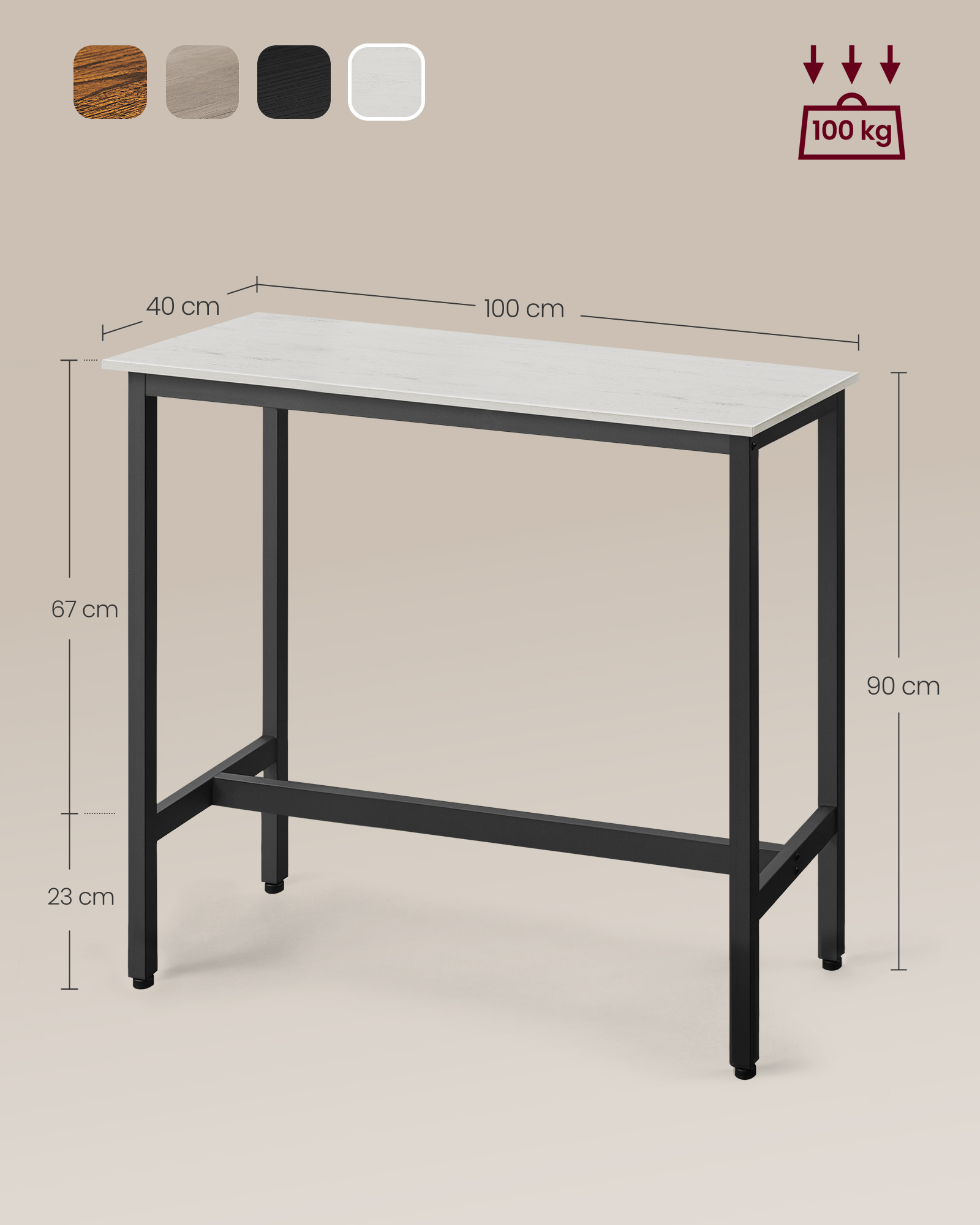VASAGLE Teollinen muotoilu, suorakulmainen seisomapöytä, valkoinen