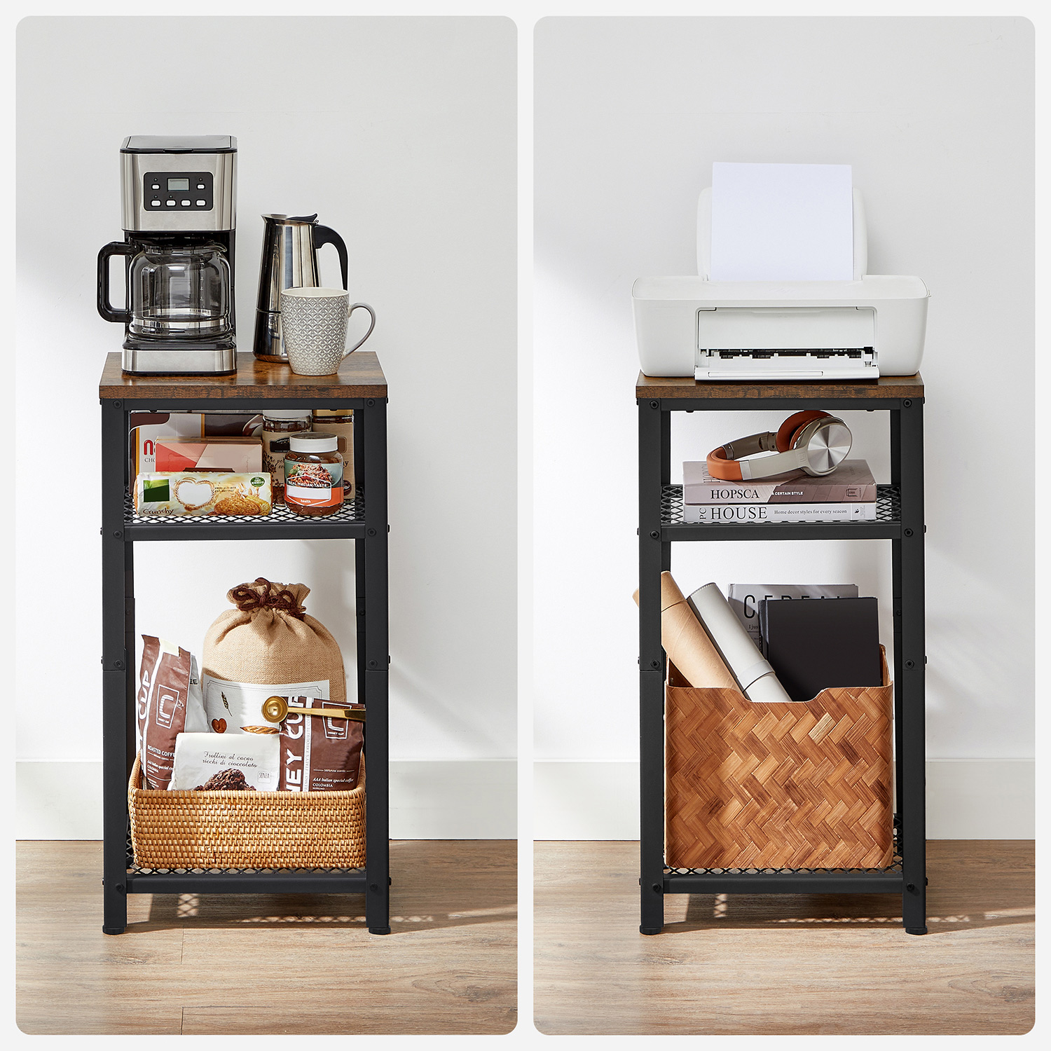 VASAGLE – se on mielikuvituksellinen yhdistelmä toiminnallisuutta, kestävyyttä ja tyylikkäitä vintage-malleja. Jos haluat antaa huoneillesi yksilöllisen ilmeen ja antiikkisen sävyn, tällä huonekalusarjalla voit saavuttaa vaikuttavia tuloksia. Onko sinulla vielä lankapuhelin? Tämän puhelintason tyylikäs vintage-design ja kompaktit mitat 45 x 75 x 35 cm (L x K x S) varmistavat, että huonekalu sopii hyvin jokaiseen eteiseen. Käytä puun näköistä pöytätasoa puhelimesi asettamiseen ja kahta hyllyä esimerkiksi osoitekirjan säilyttämiseen tai koristeiden asettamiseen. Eikö sinulla ole enää lankapuhelinta, vaan vain matkapuhelin? Ei hätää! Tämä joustava huonekalu voidaan muuttaa kätevästi olohuoneesi sohvapöydäksi tai makuuhuoneesi käytännölliseksi yöpöydäksi. Riippumatta siitä, mitä suunnitelmia sinulla on, VASAGLE:n vintage-huonekalujen avulla voit toteuttaa sisustussuunnitelmasi helposti! Tuotetiedot: – Väri: vintage-ruskea-musta – Materiaali: lastulevy (paksuus: 15 mm) – Mitat: 45 x 75 x 35 cm (L x K x S) – Paino: 6,5 kg – Maks. kantavuus hyllyä kohti: 10 kg Toimitus sisältää: – 1 x puhelintaso – 1 x tarvikepussi – 1 x ohjeet (DE, EN, FR, ES, IT) VASAGLE-ohjeet: – Tuote on tarkoitettu käytettäväksi vain sisätiloissa. Aseta se kuivaan ympäristöön. – Tämän huonekalun enimmäiskuormitus on 10 kg hyllyä kohti. Älä aseta sitä päälle painavampia esineitä.